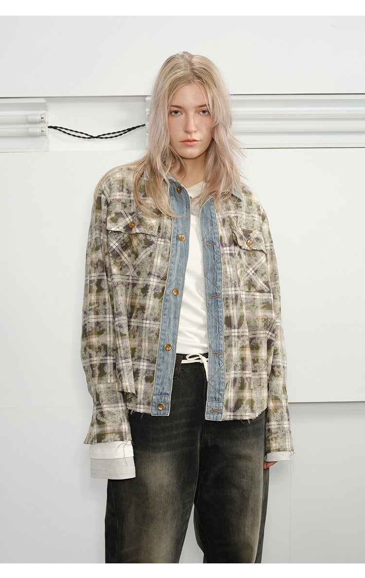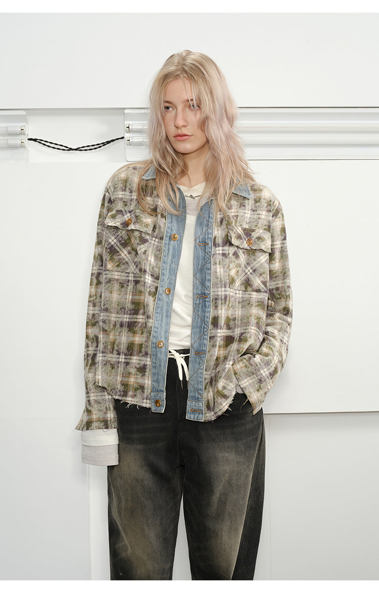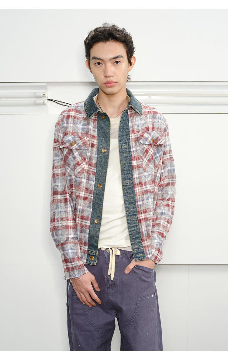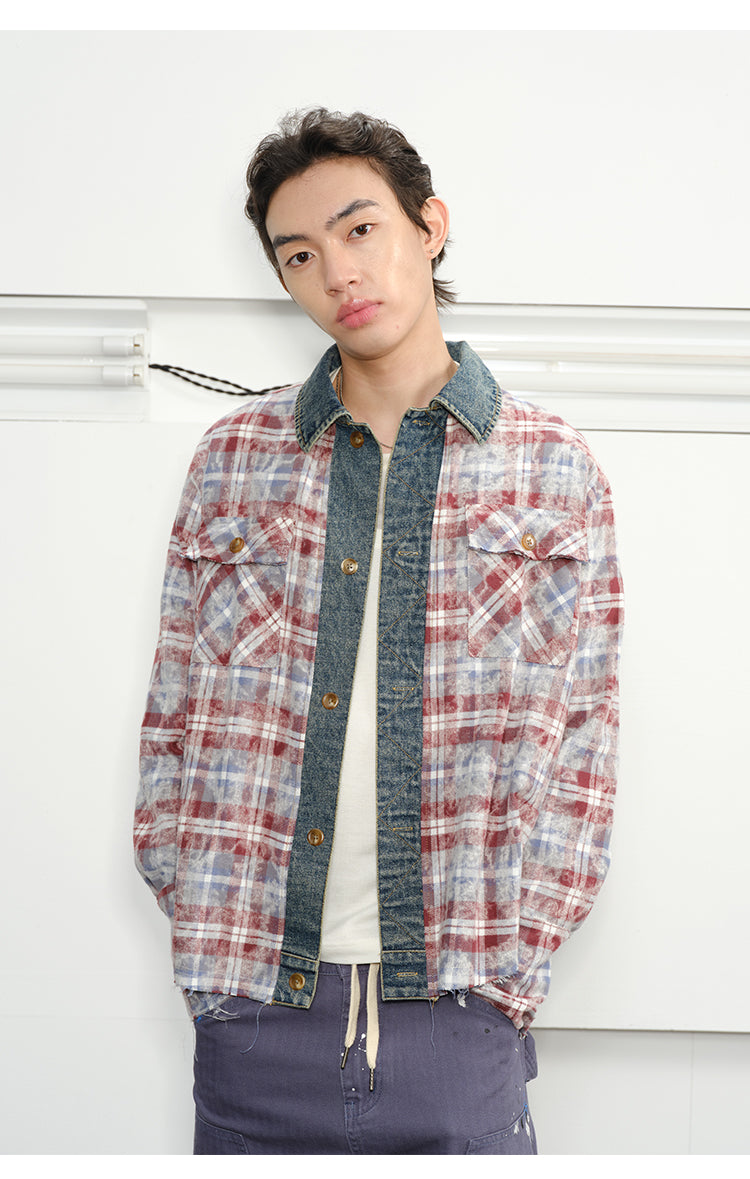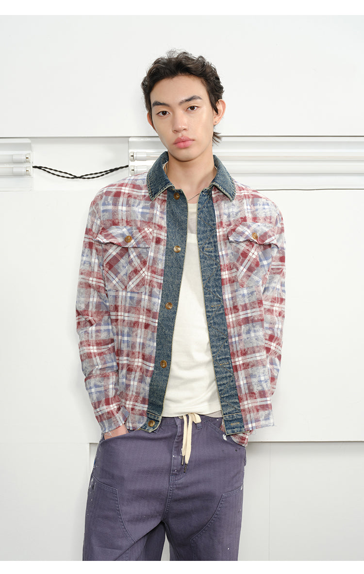 Checked Stitched Placket Denim Shirt