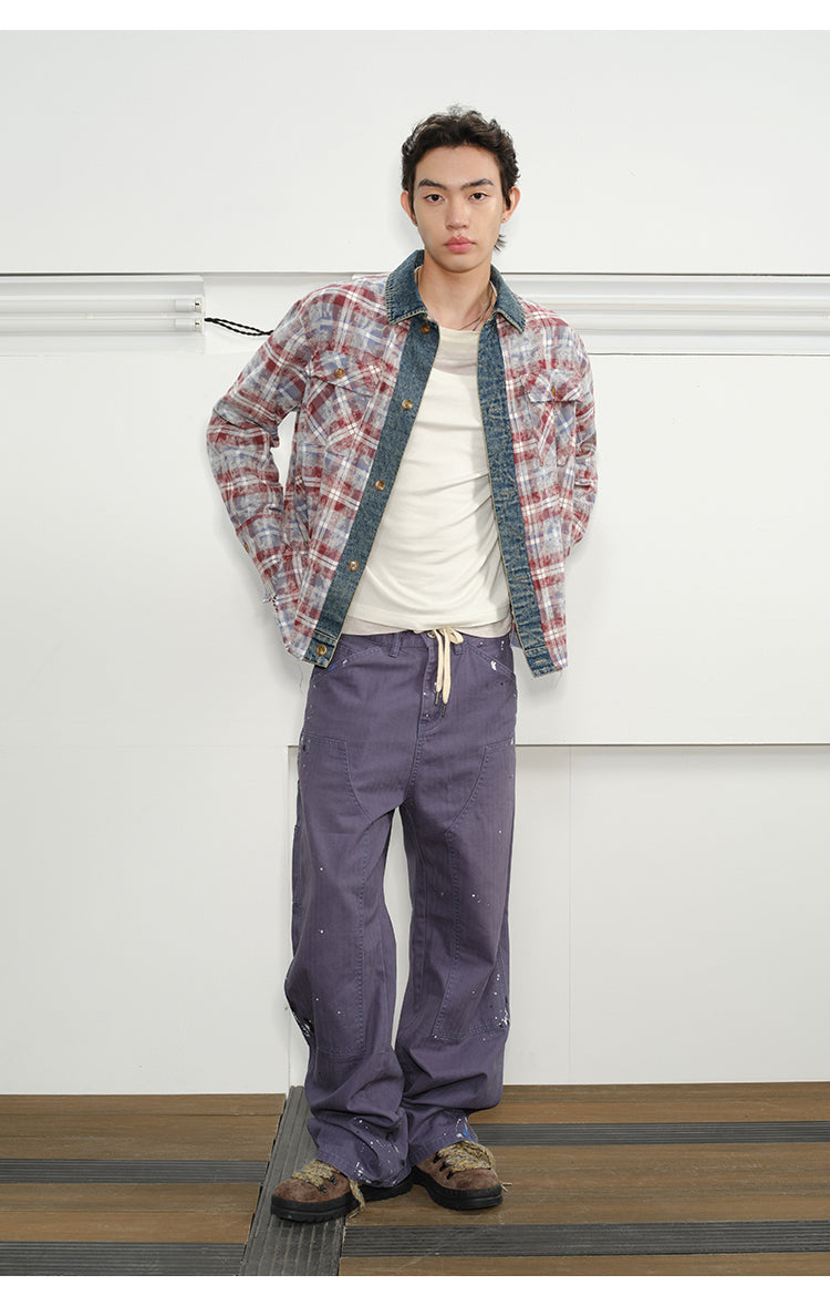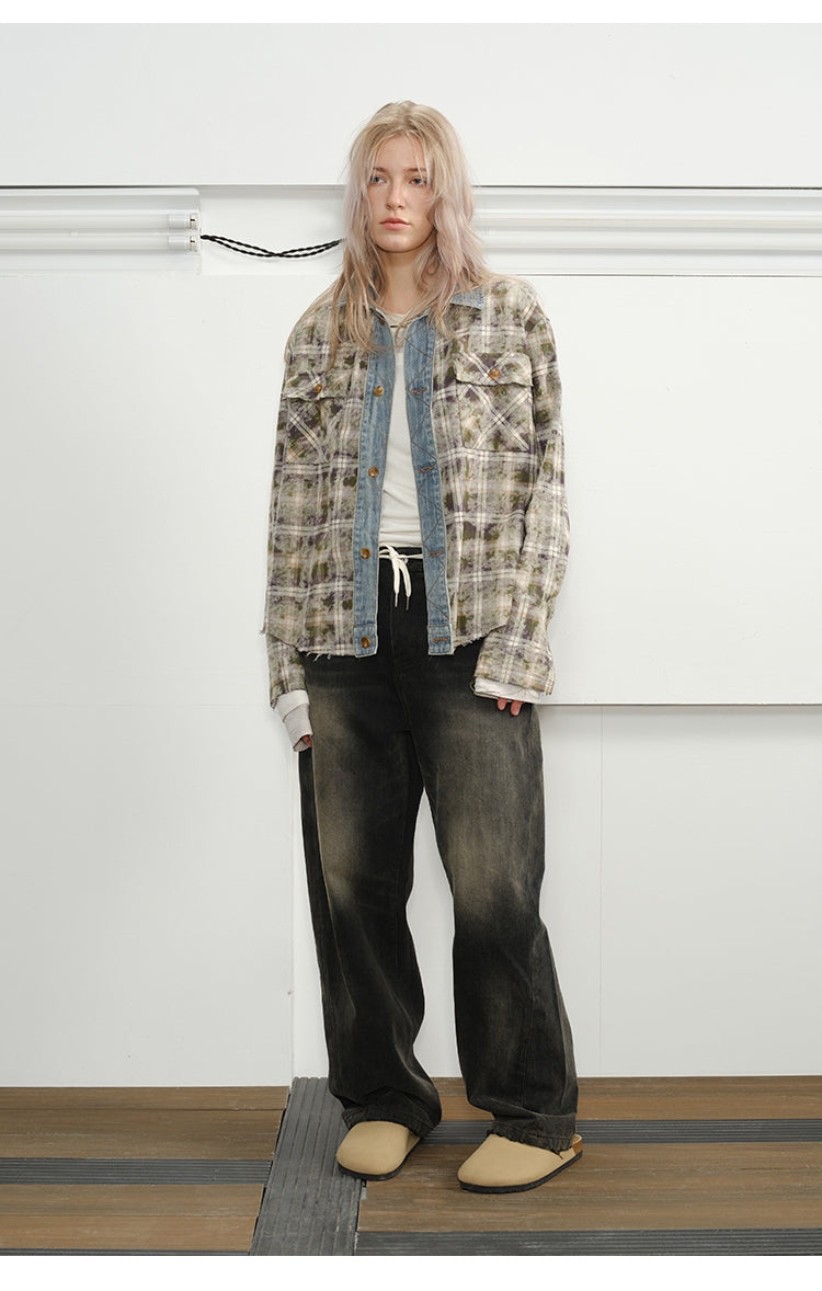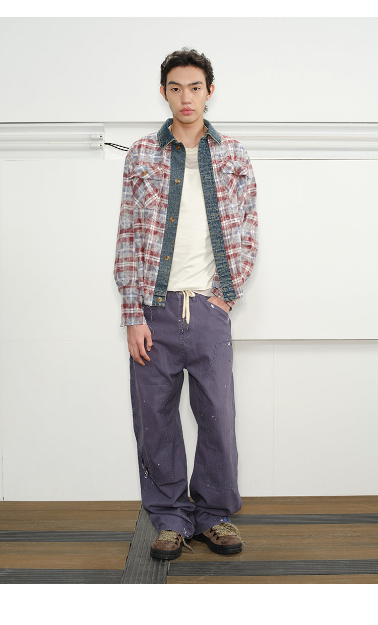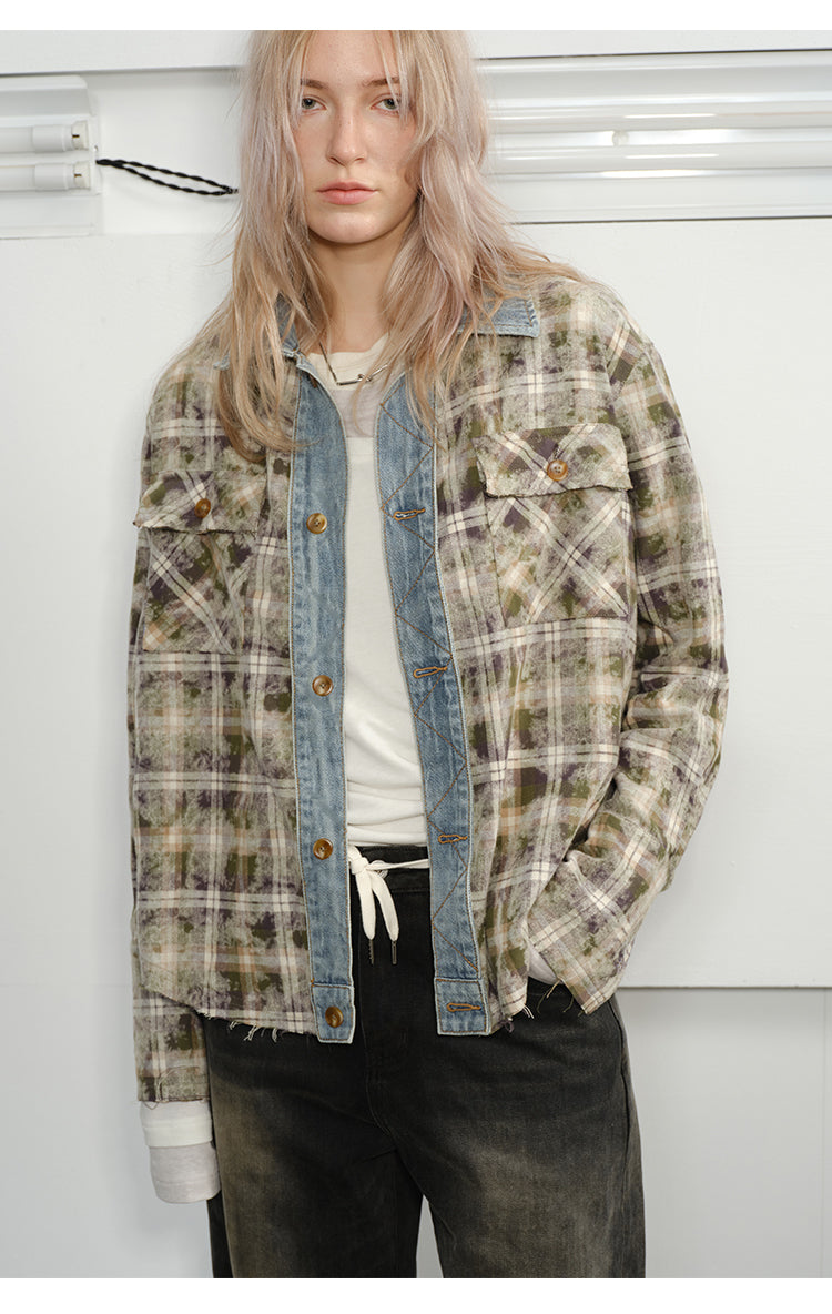 Checked Stitched Placket Denim Shirt
