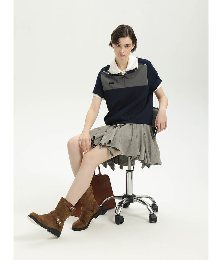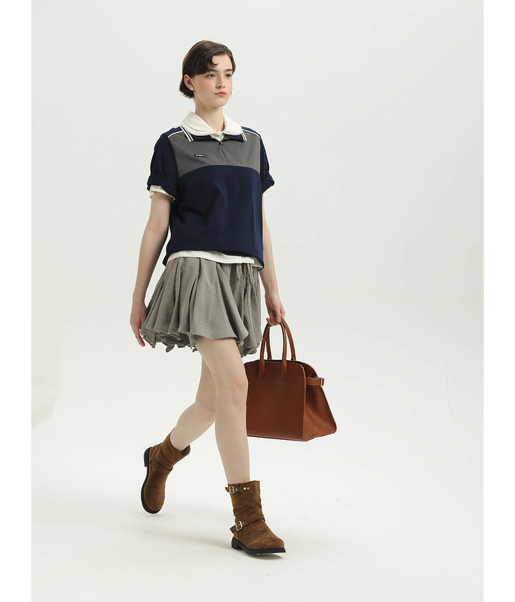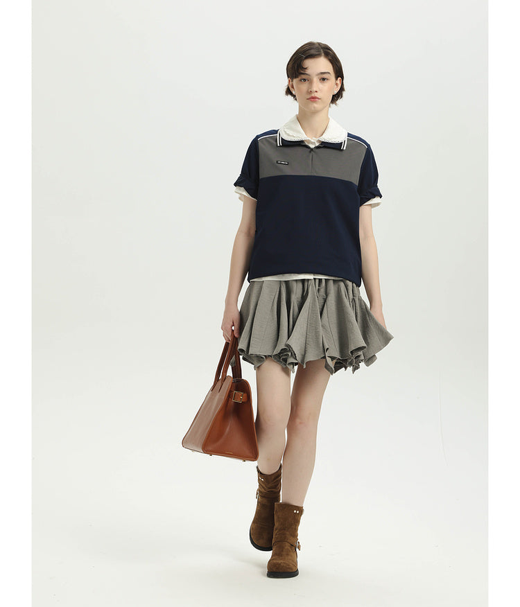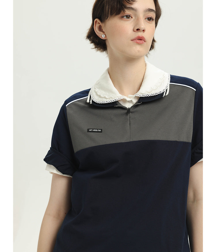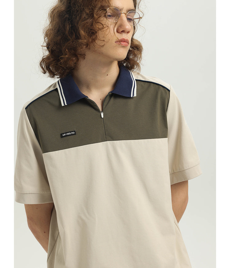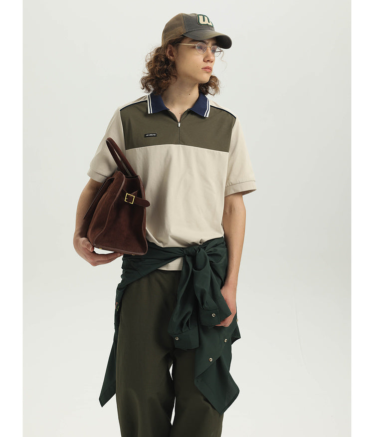 College contrast color stitch polo shirt