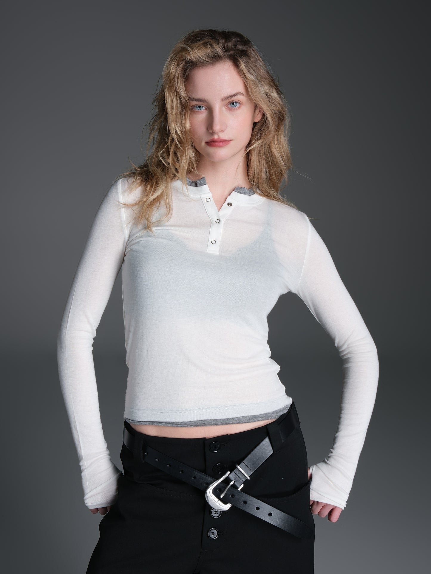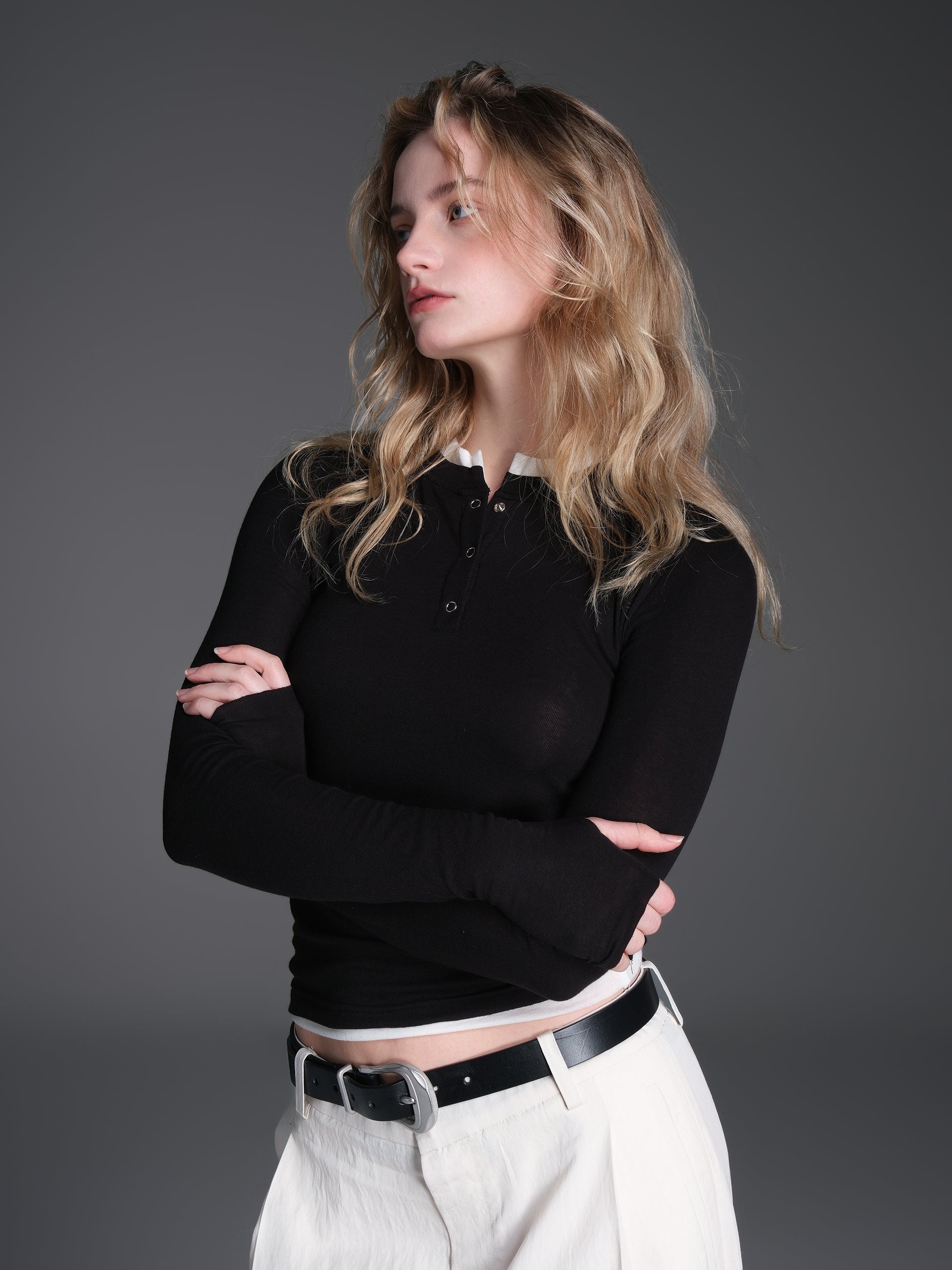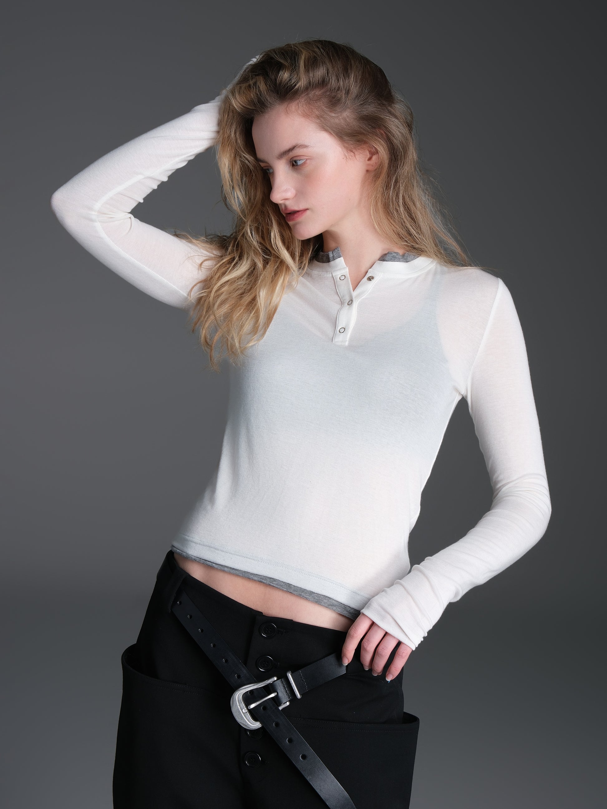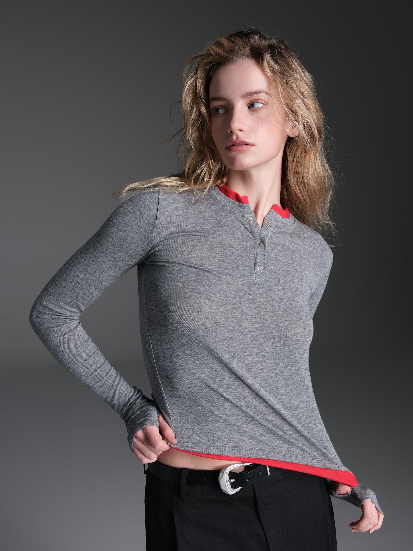 Contrast color faux two-piece T-shirt