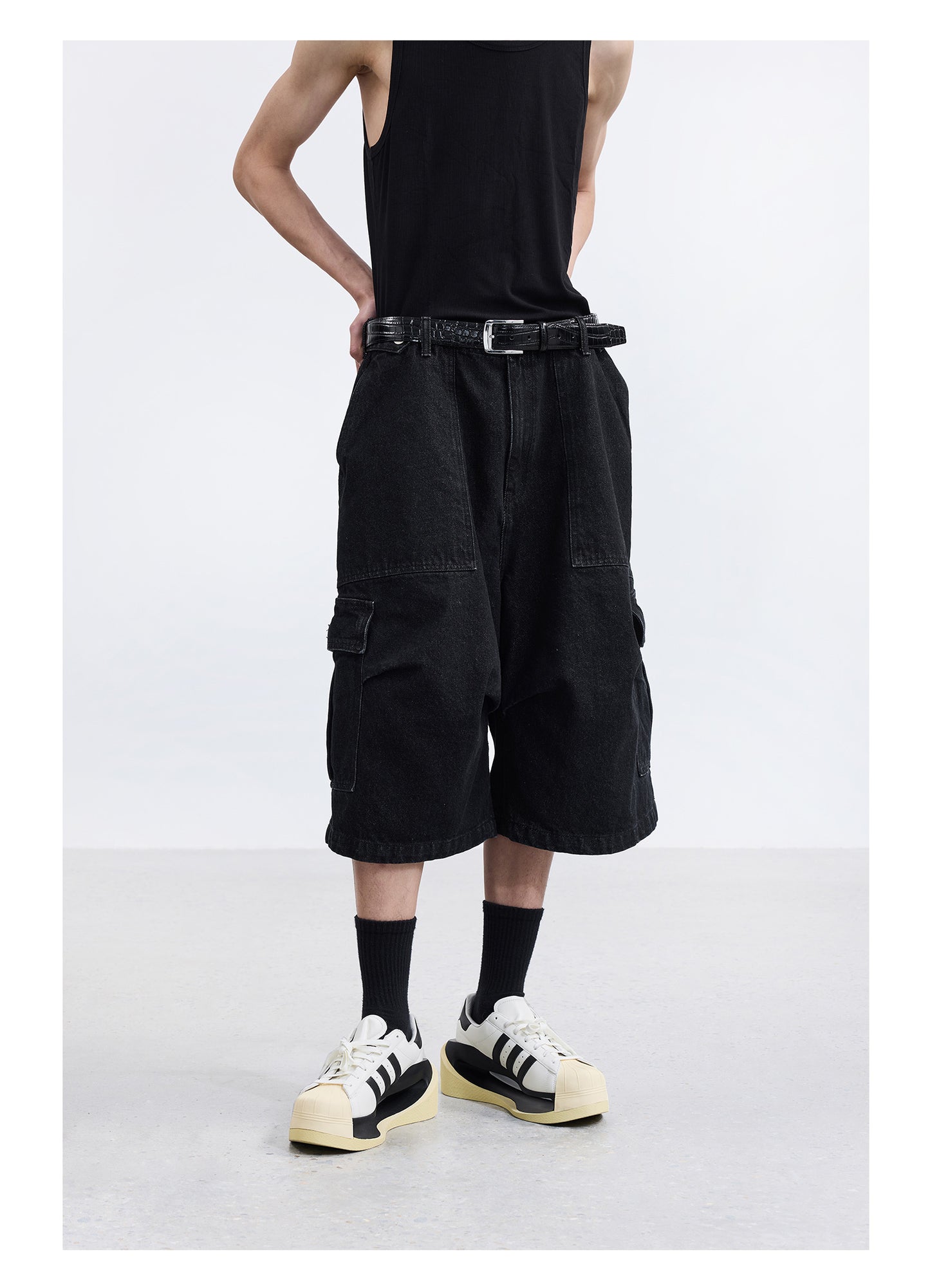 Cropped jeans with adjustable waist