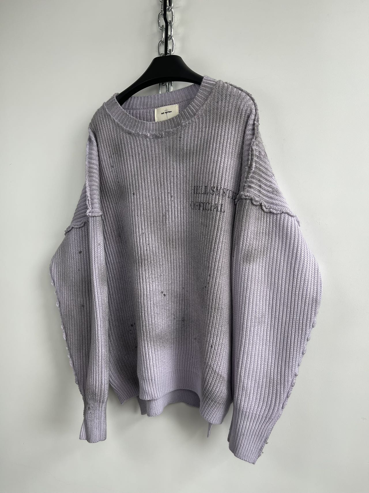 Damaged Print Reverse Design Knit Sweater
