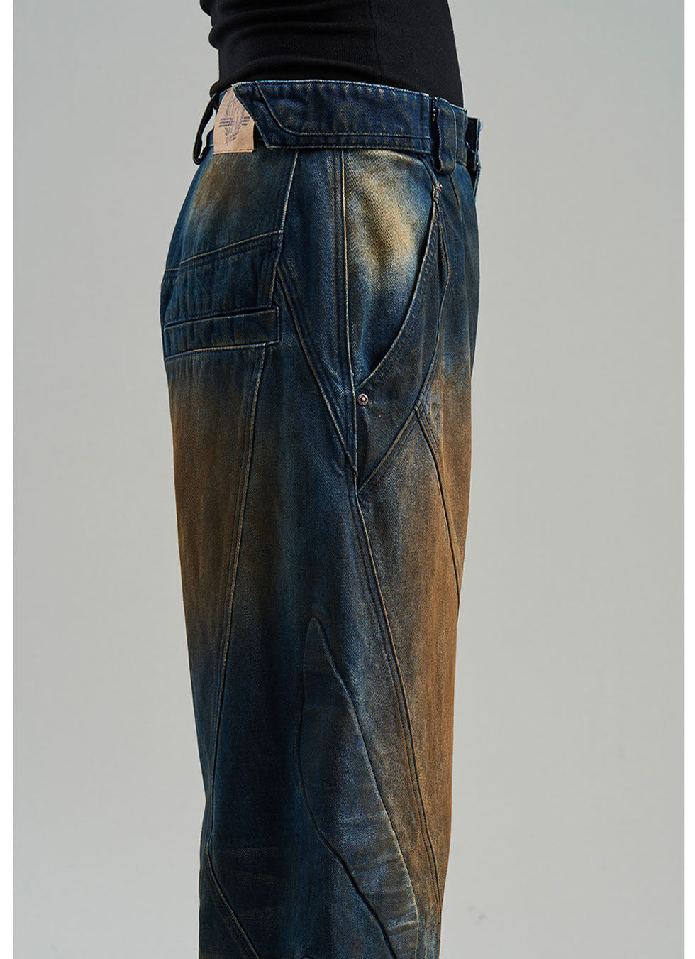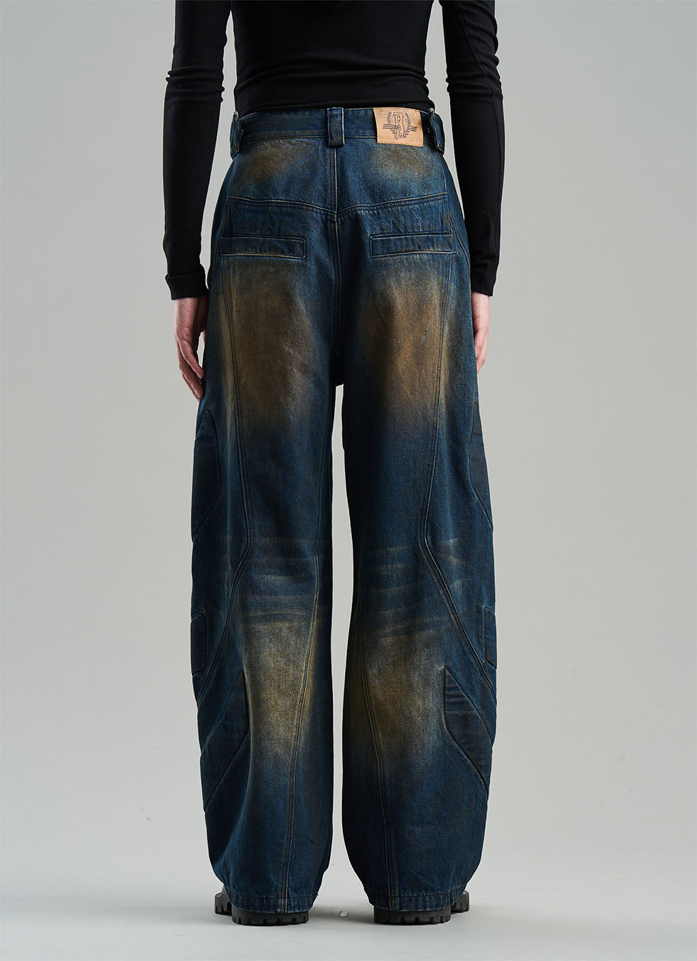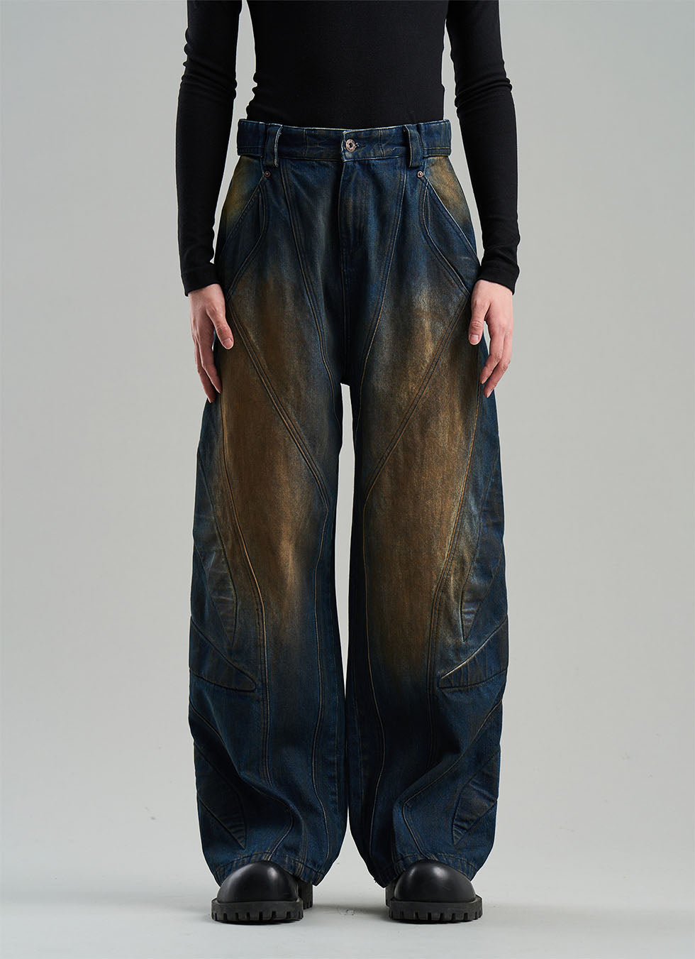 Damaged Rust Stitch Loose Fit Mid Rise Denim Pants