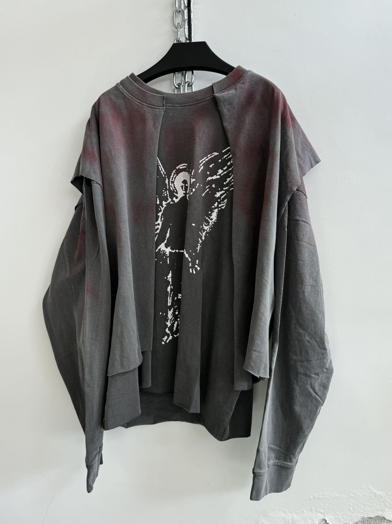 Damaged spray-dyed sweatshirt