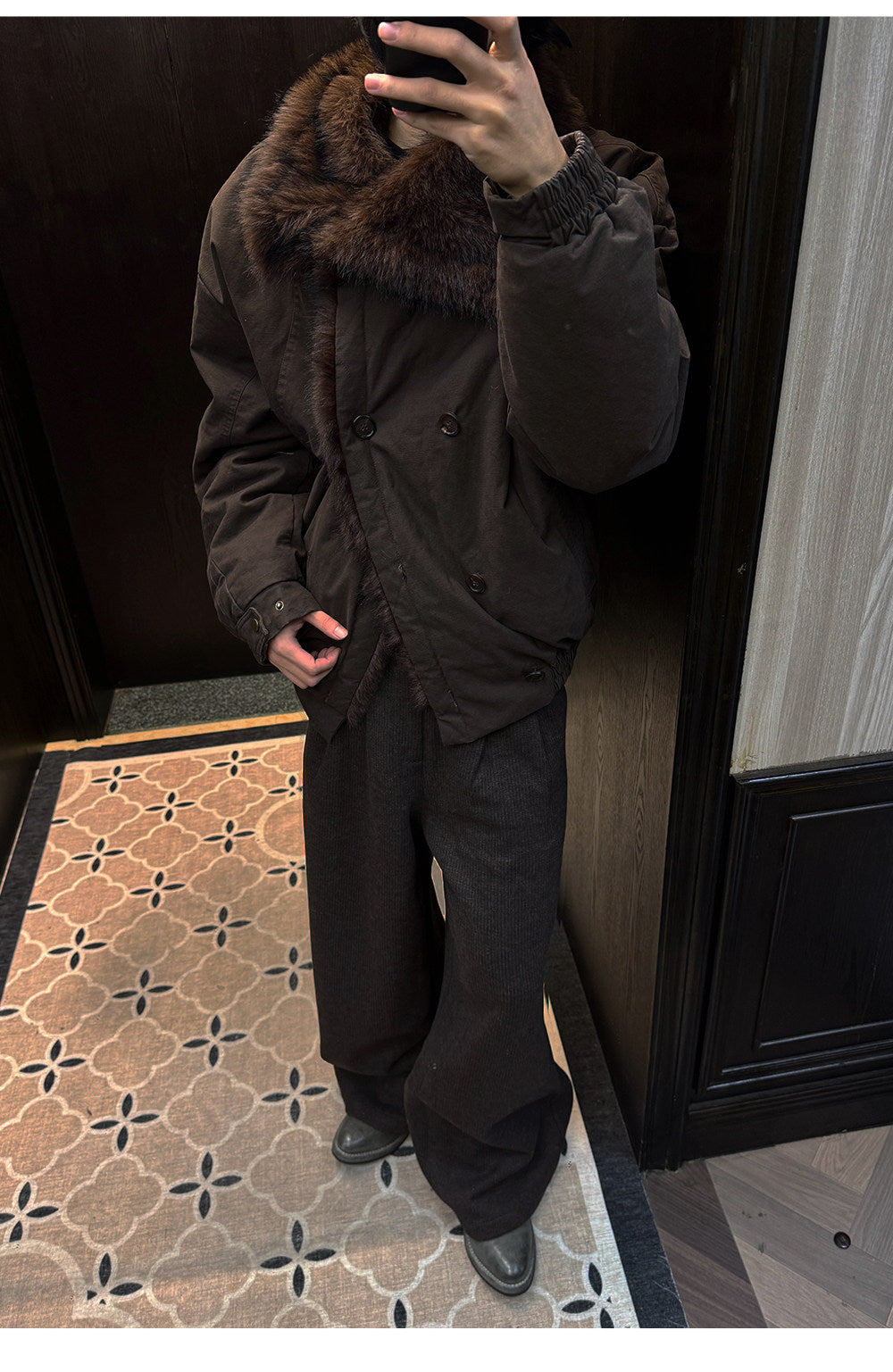 Double-breasted jacket with fur collar