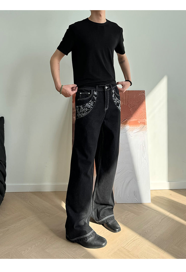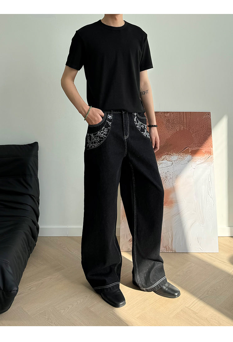 Embroidered Casual Loose Denim Pants