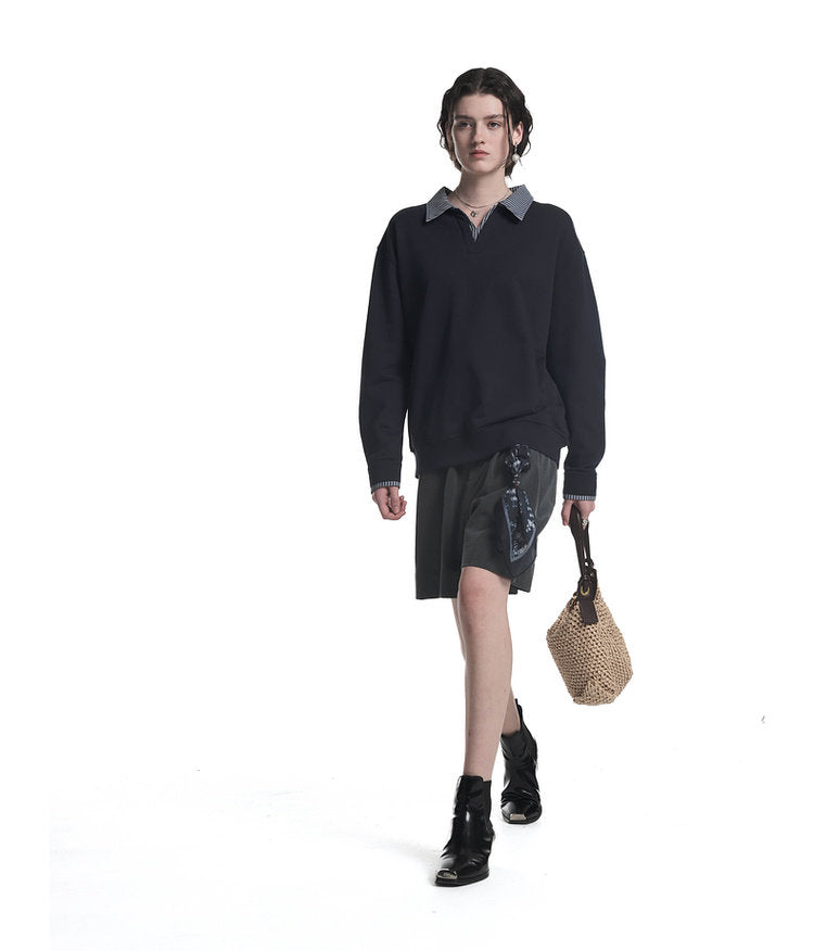 Fake Two-Piece V-Neck Sweatshirt