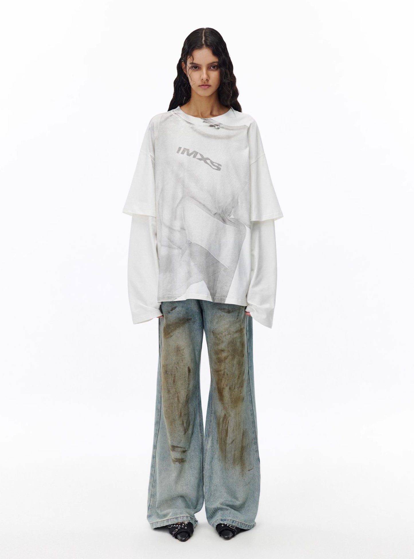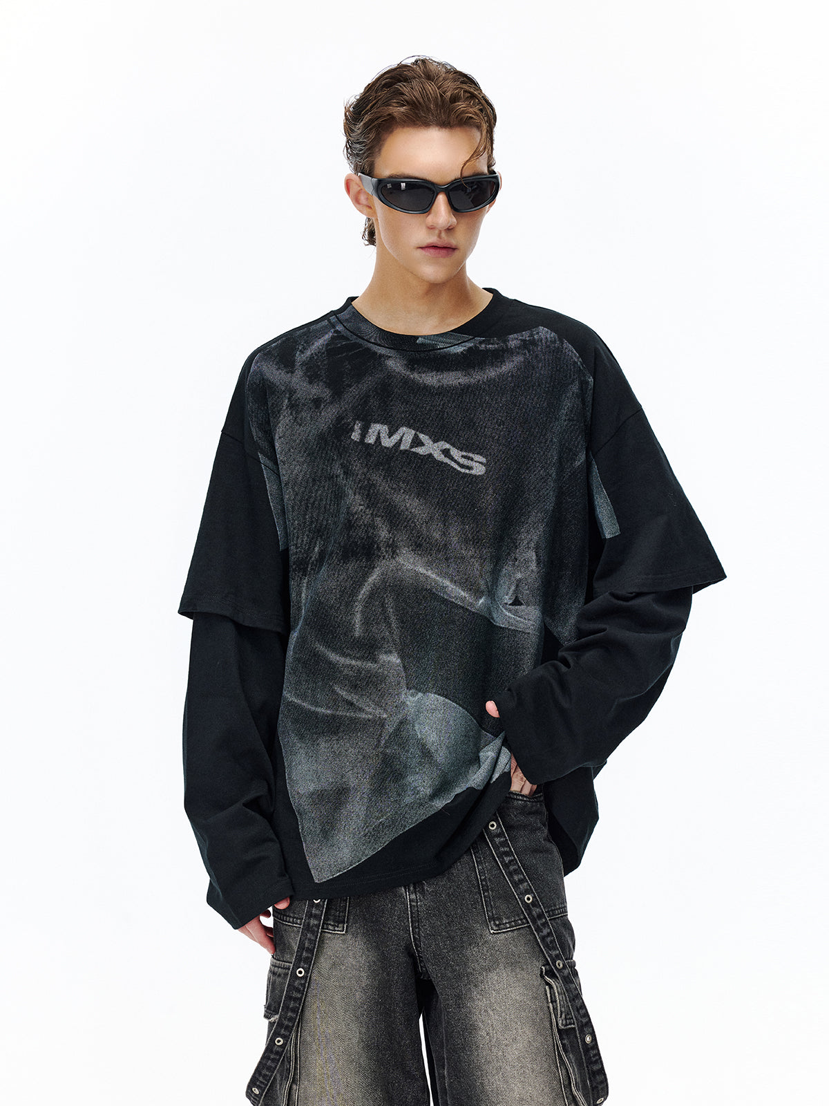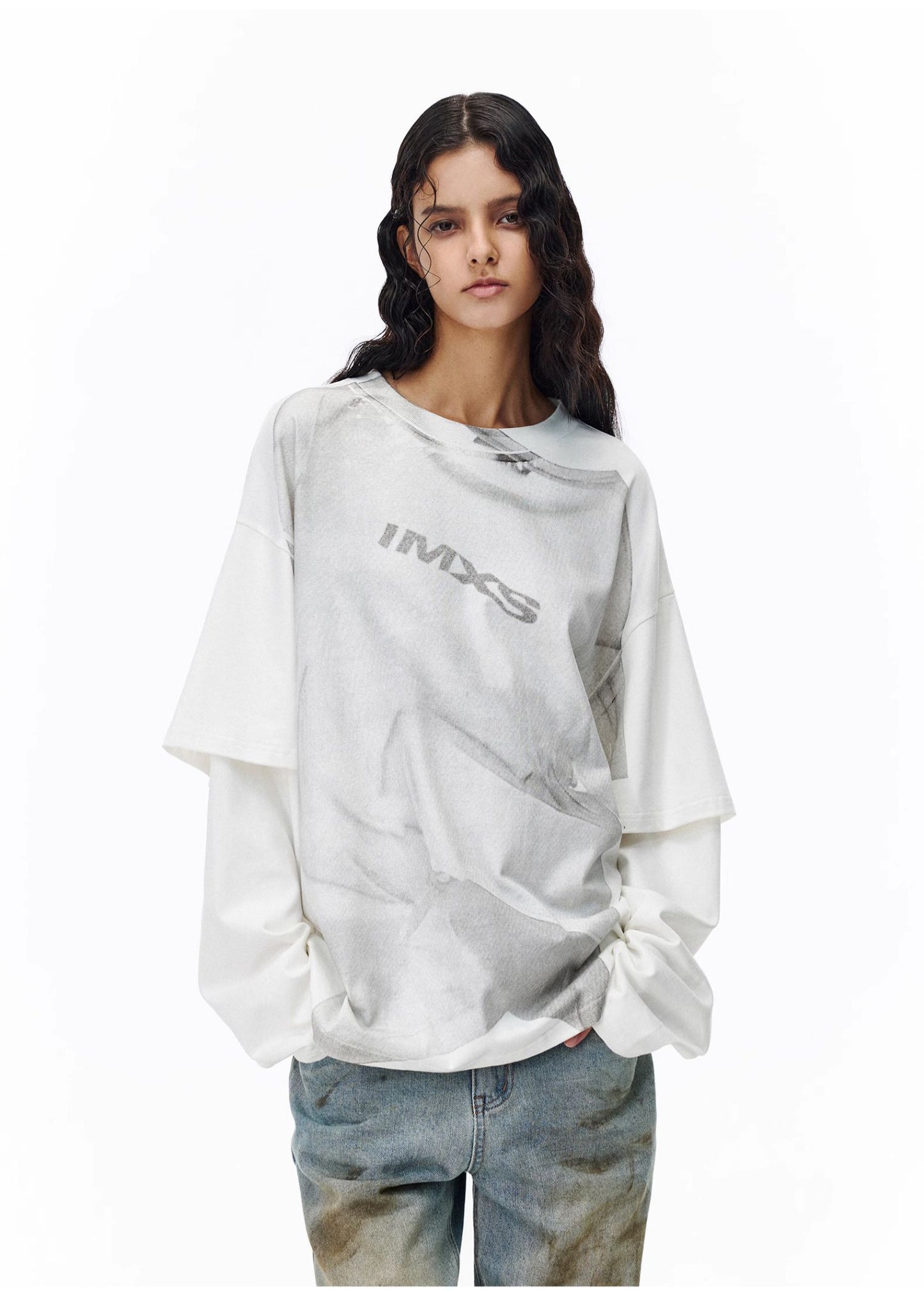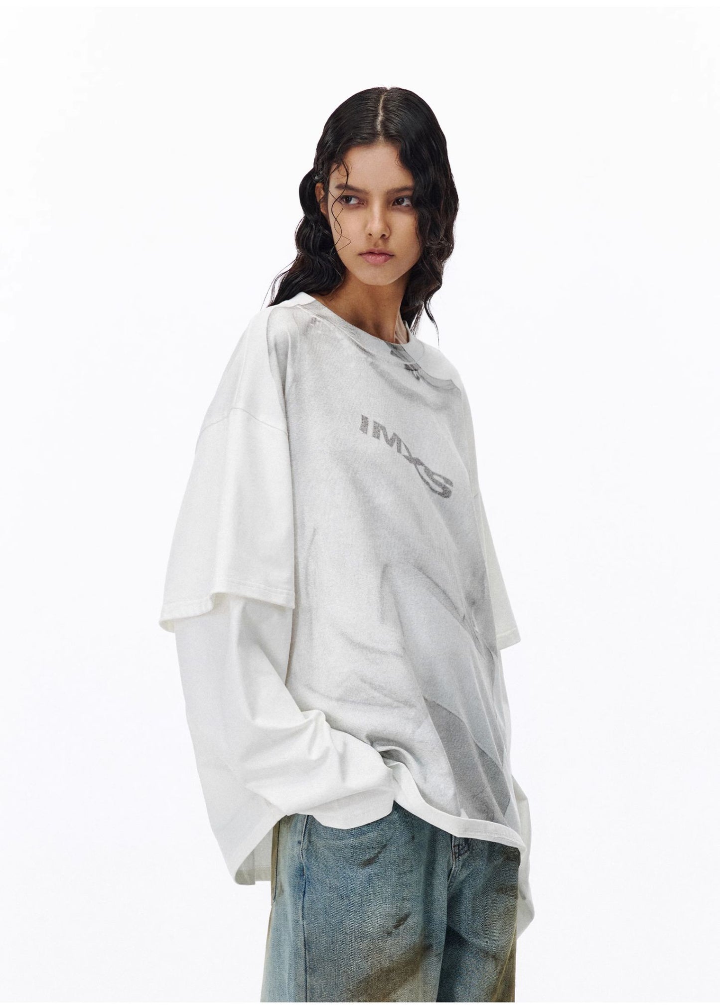 Faux two-piece printed T-shirt