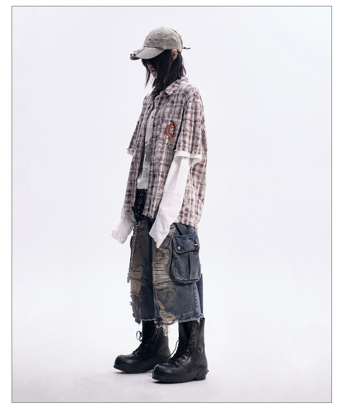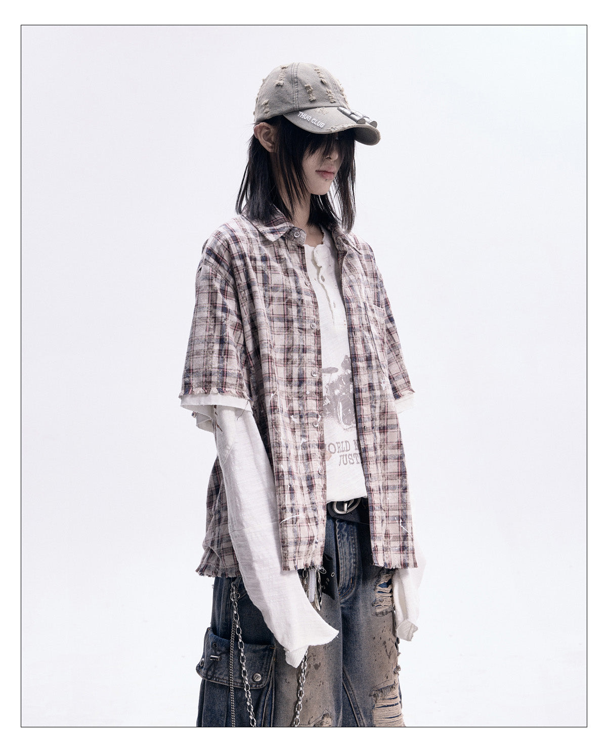 Faux two-piece shirt with cut-outs