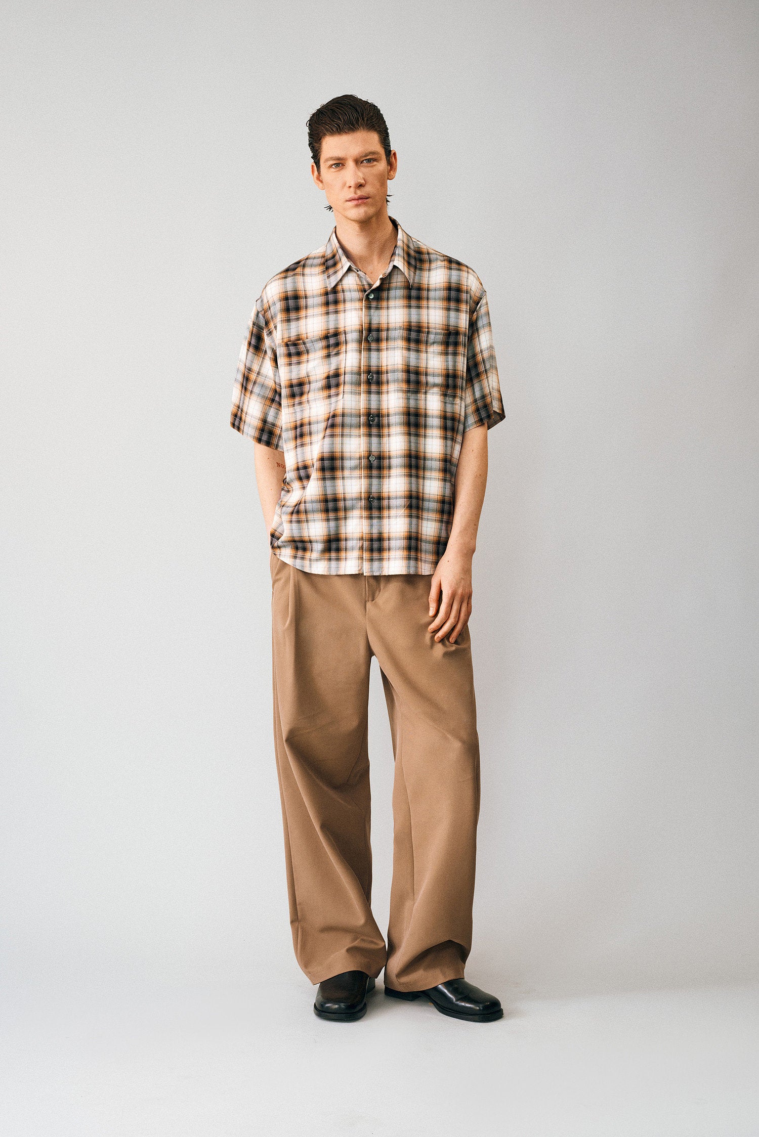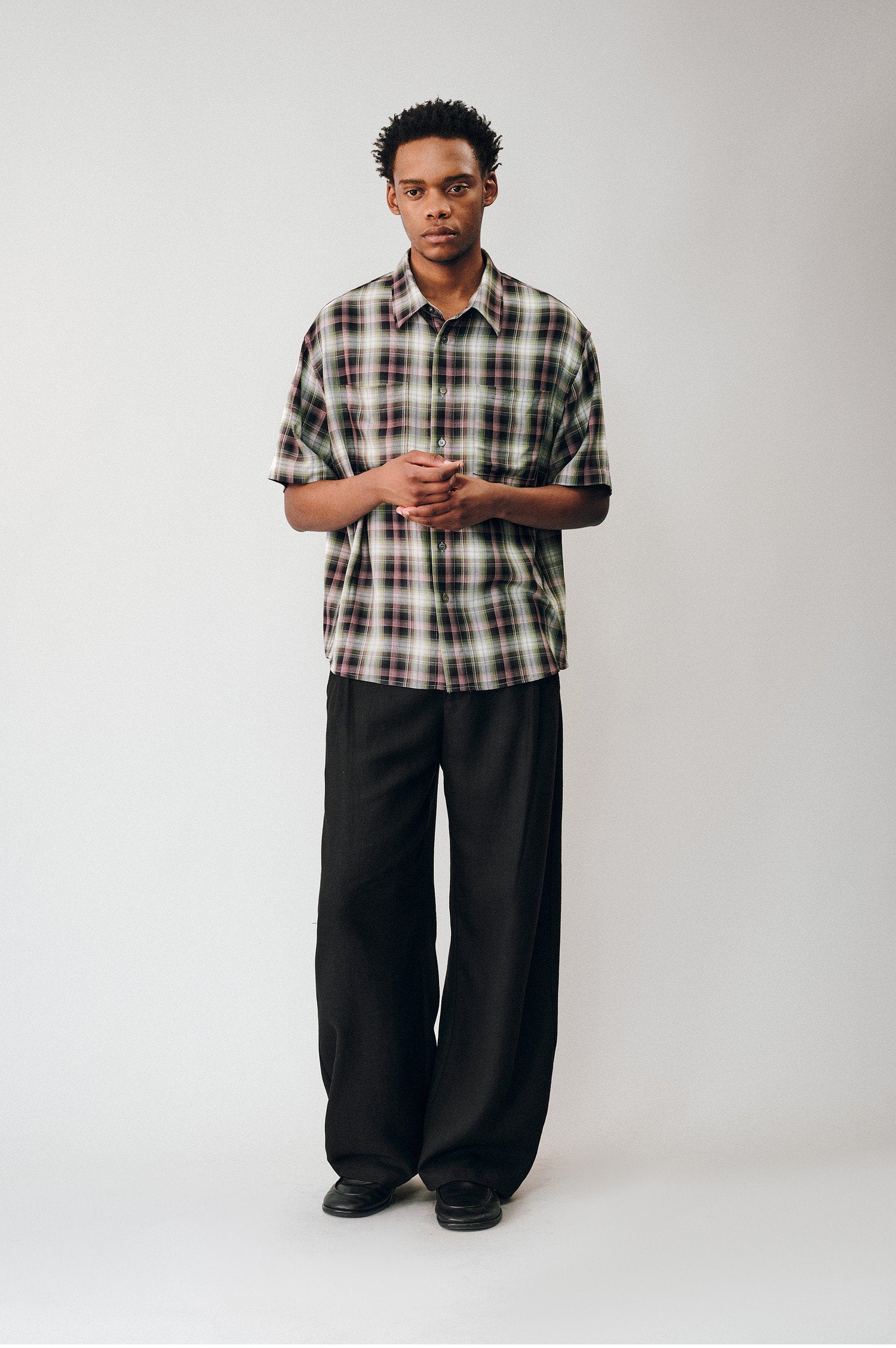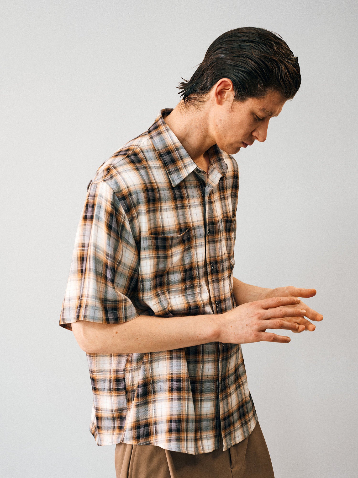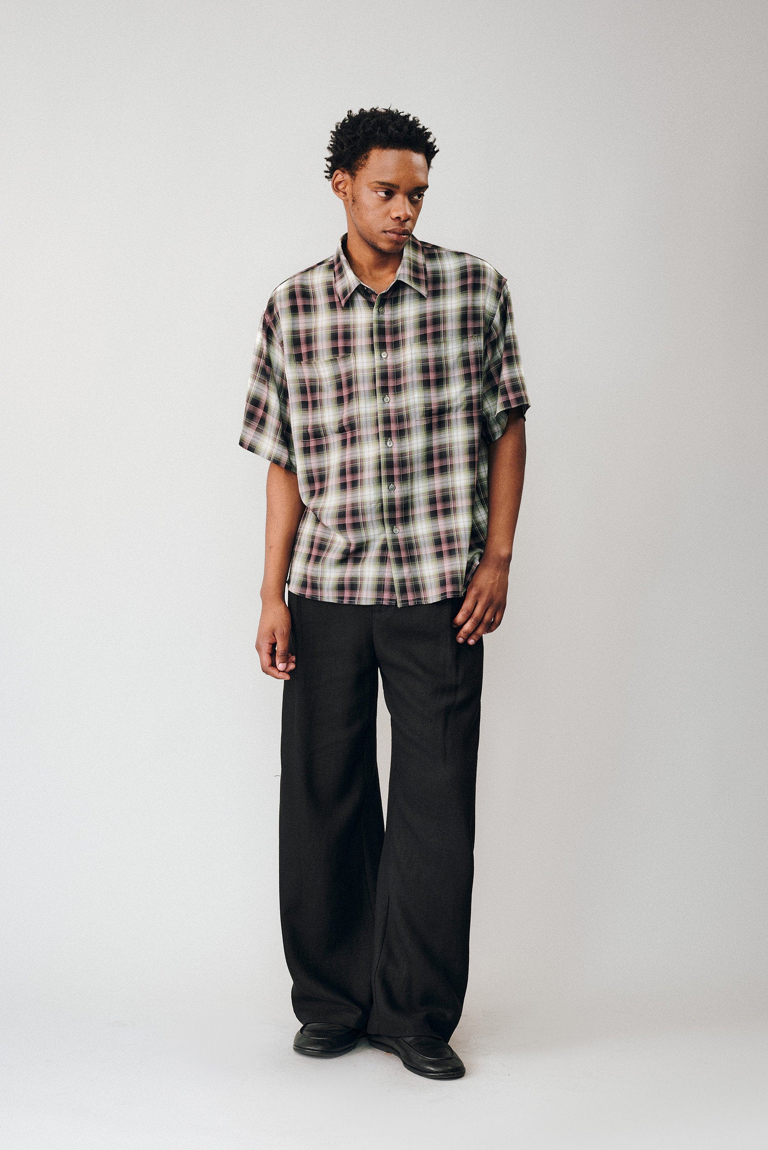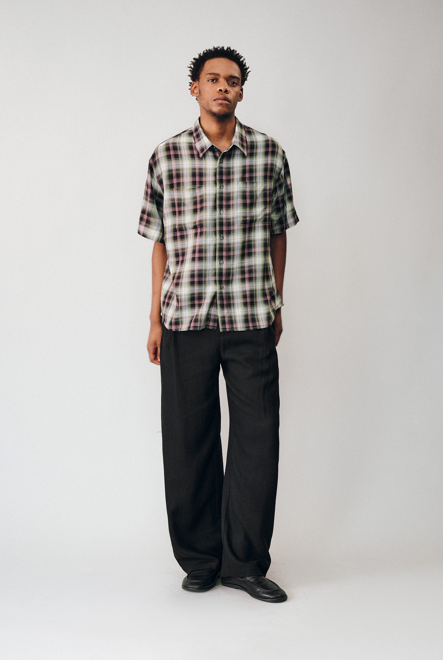 Gradient Check Double-Pocket Shirt