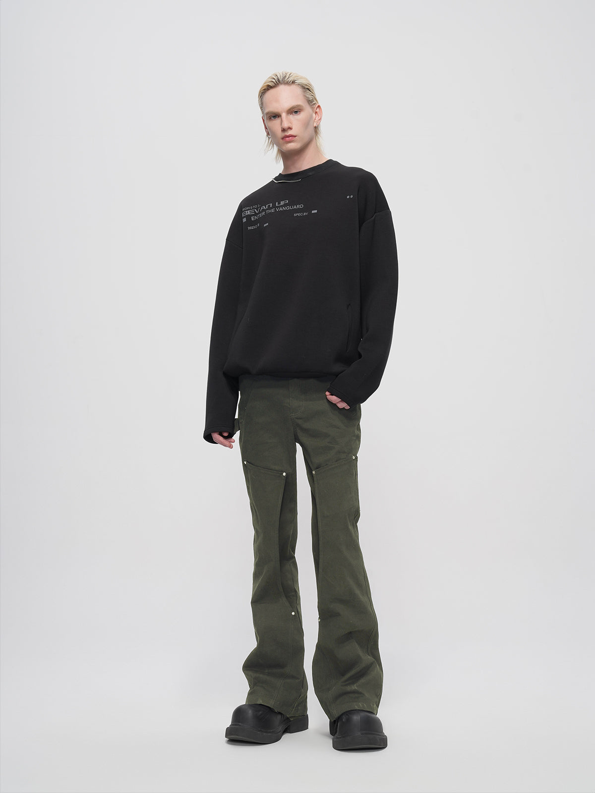 Hollow Patch Micro Flared Casual Pants