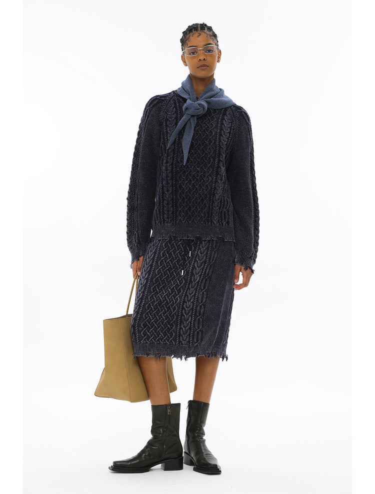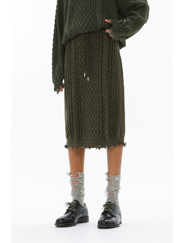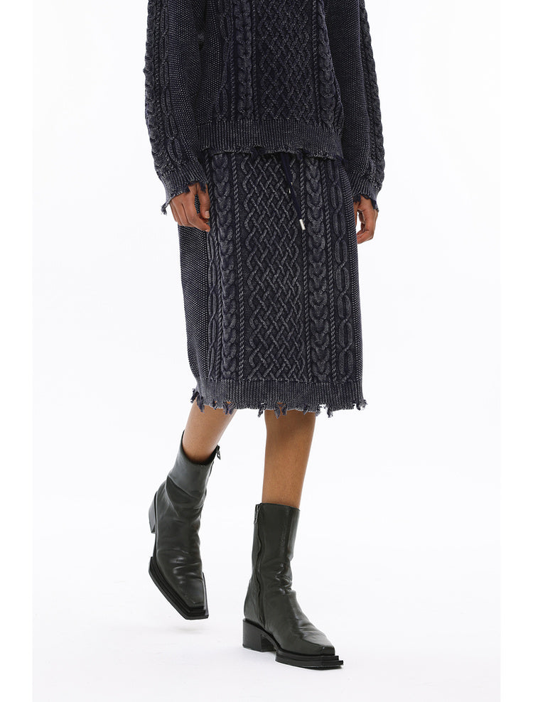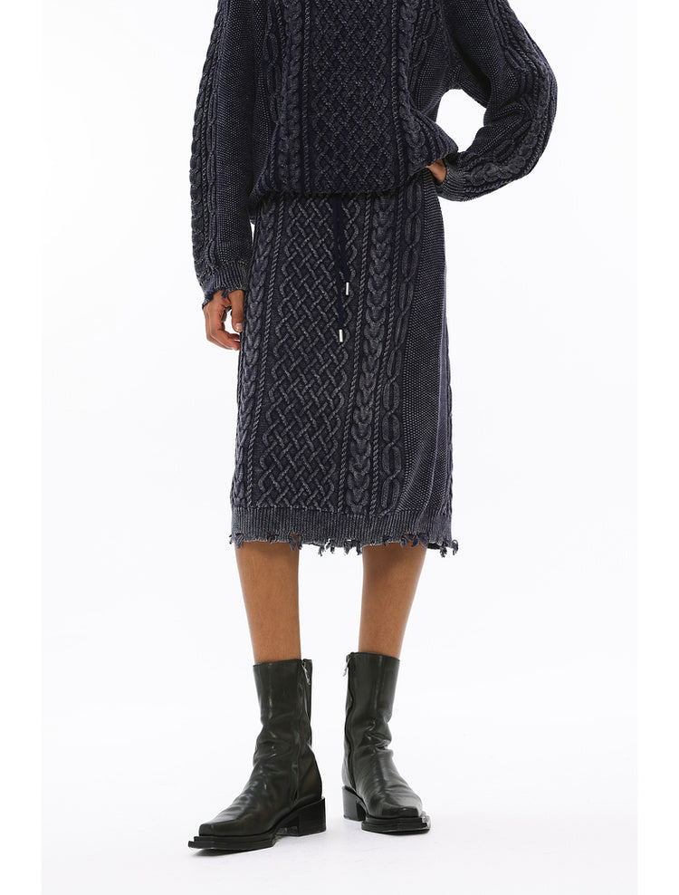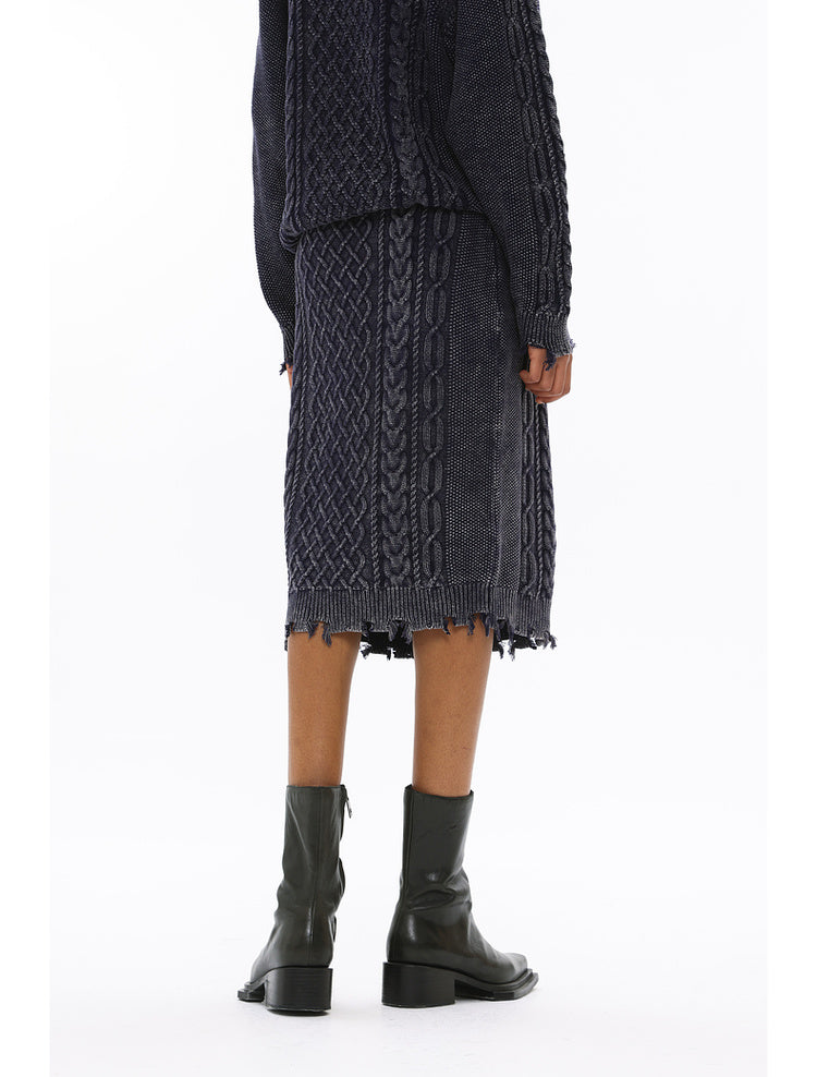 Irish braided wash faded twisted thick needle hip skirt
