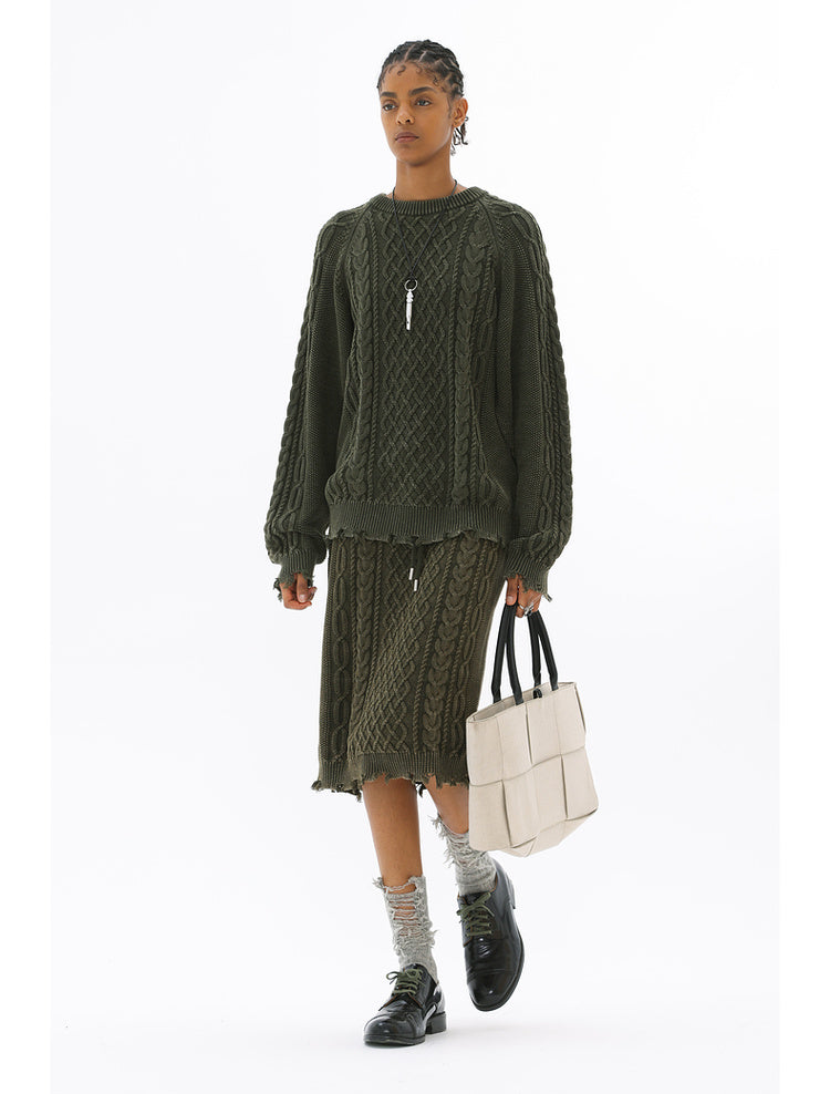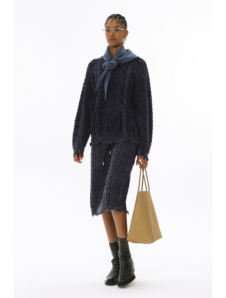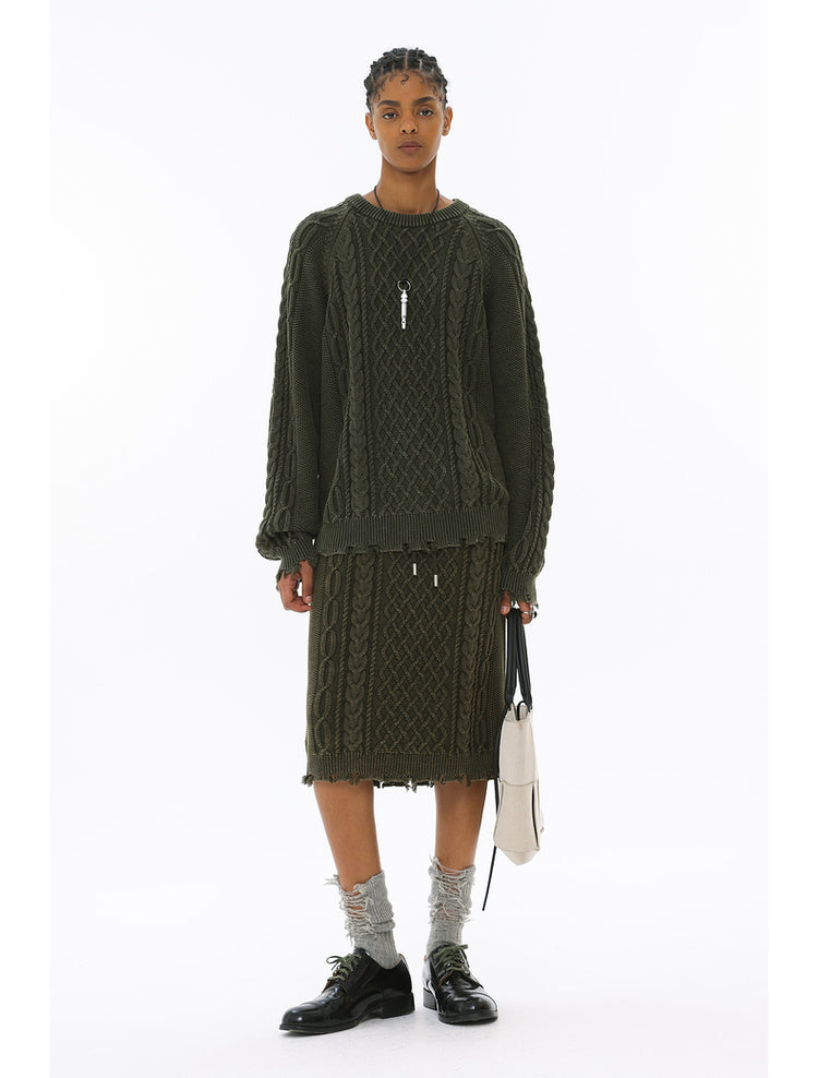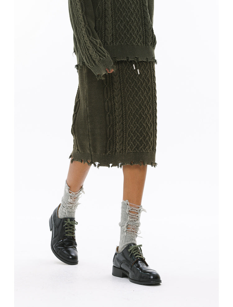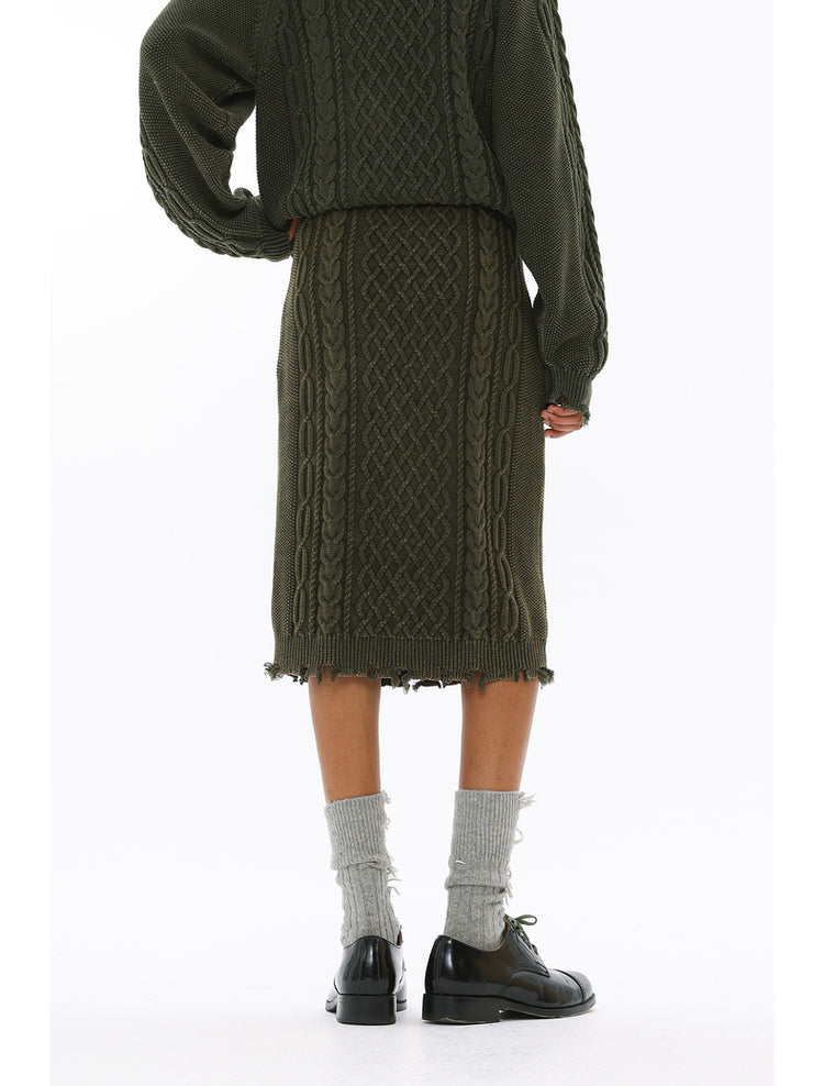 Irish braided wash faded twisted thick needle hip skirt