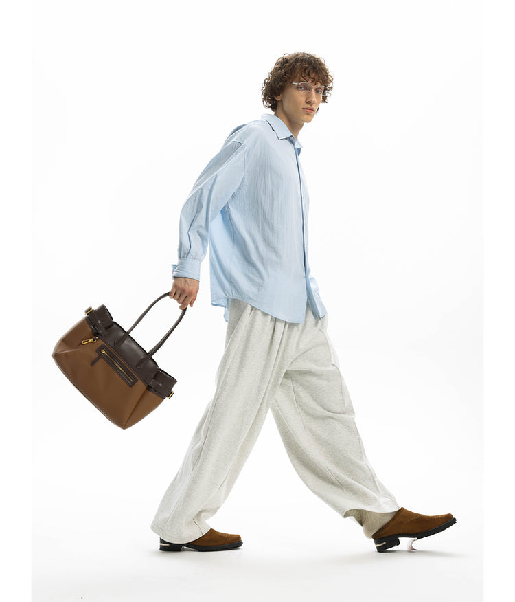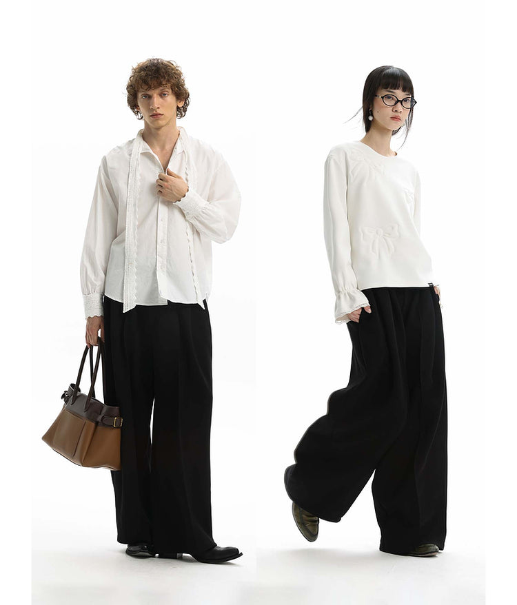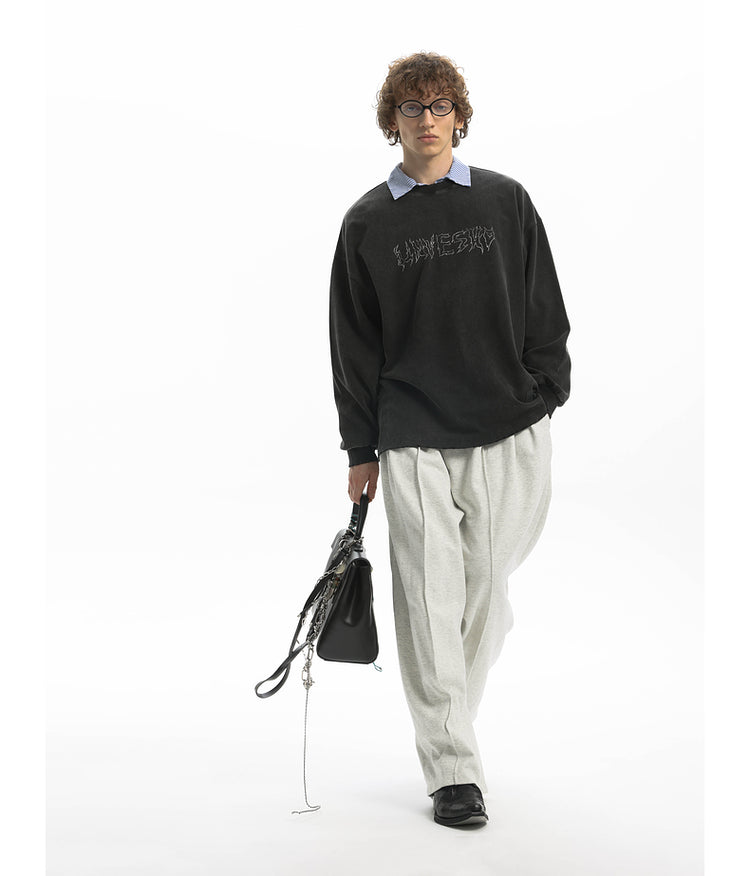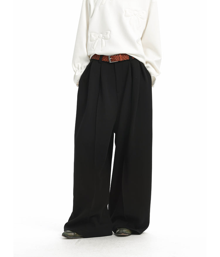 Knit wide-leg casual pants