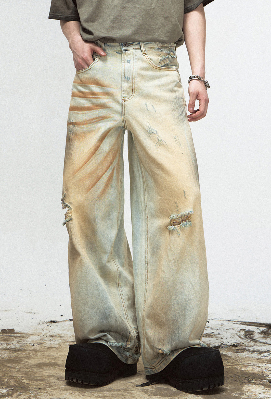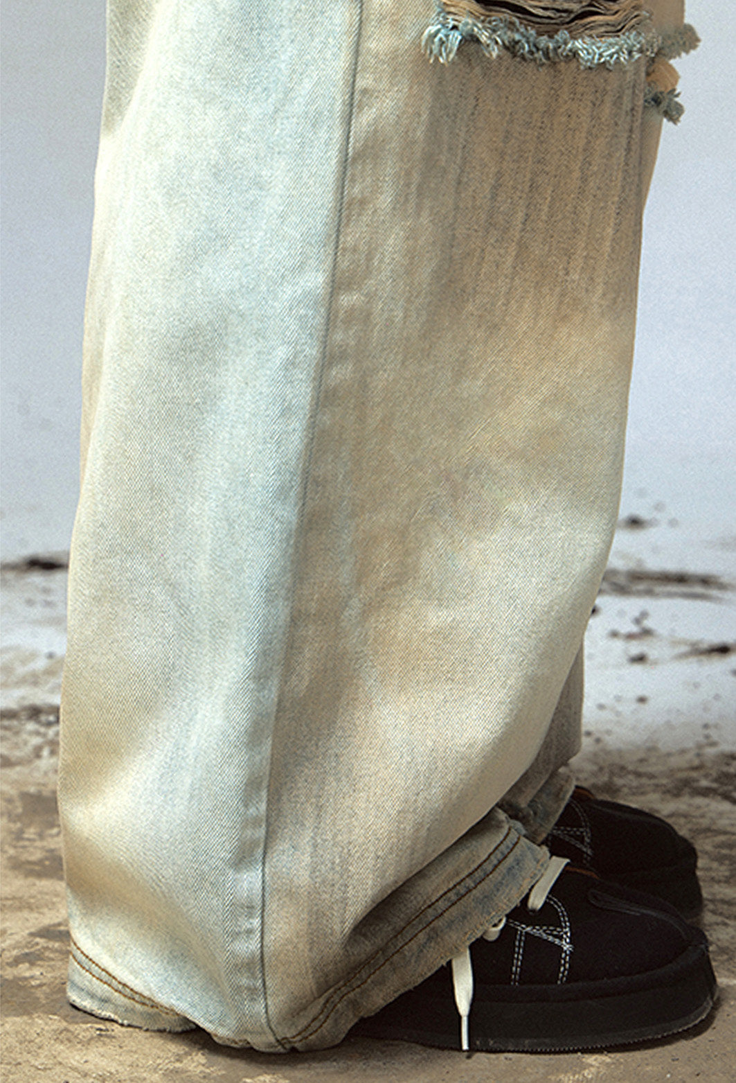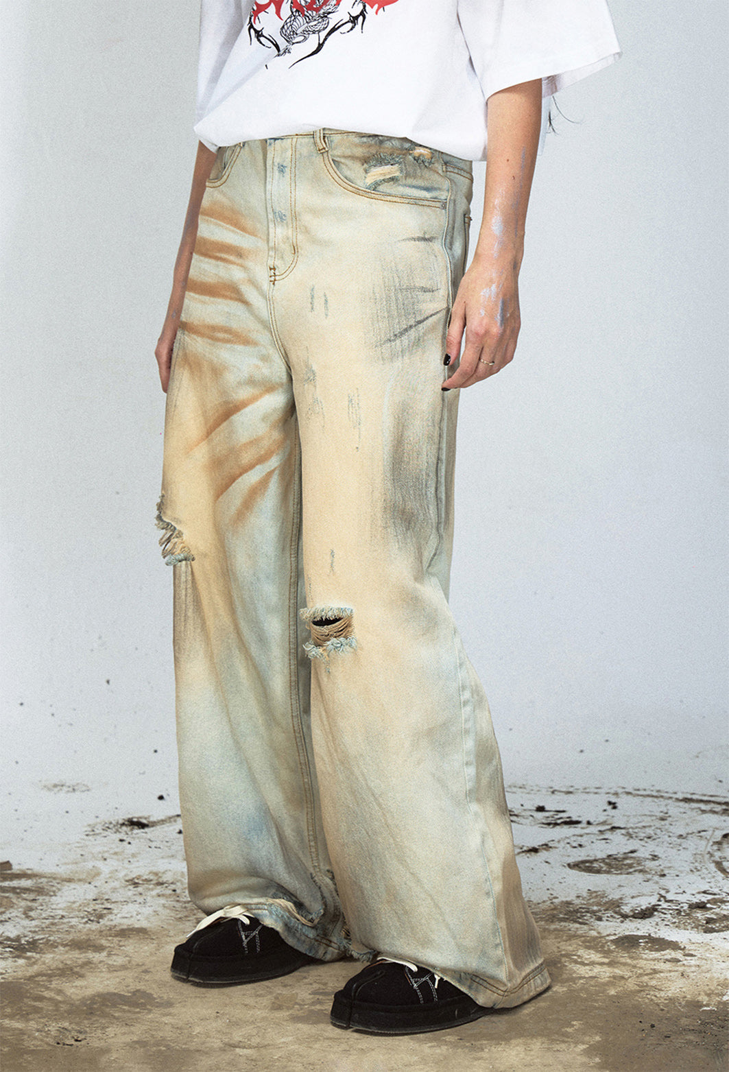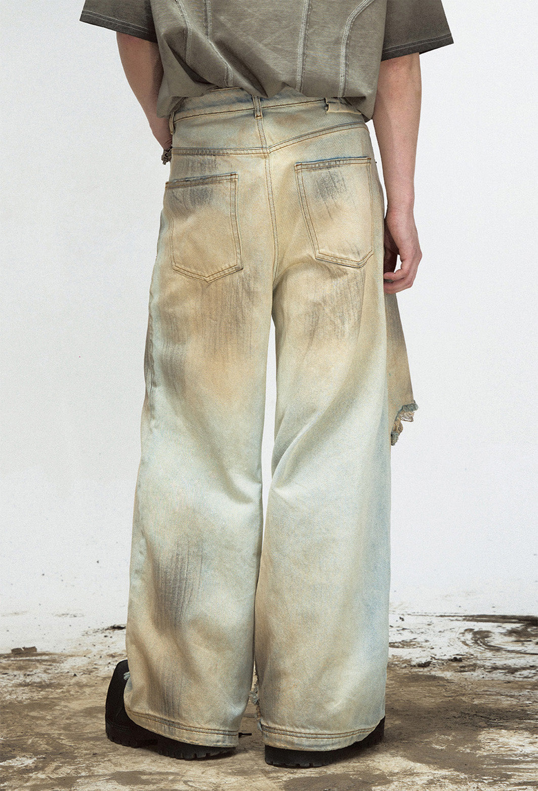Mud-dyed washed straight jeans