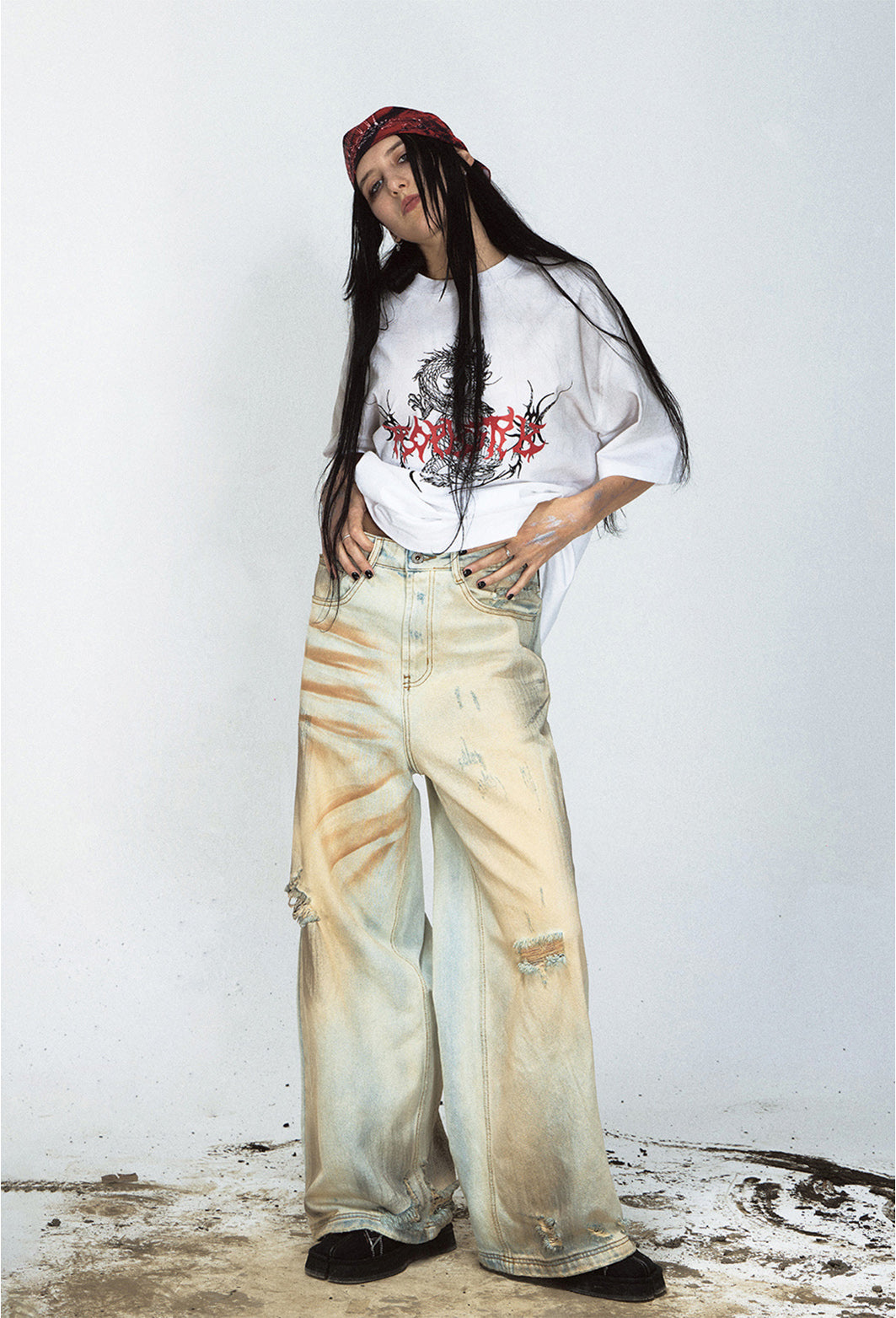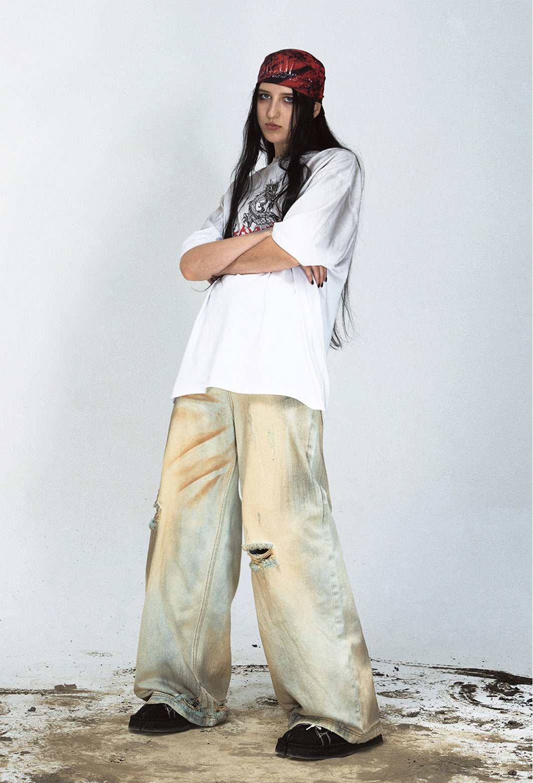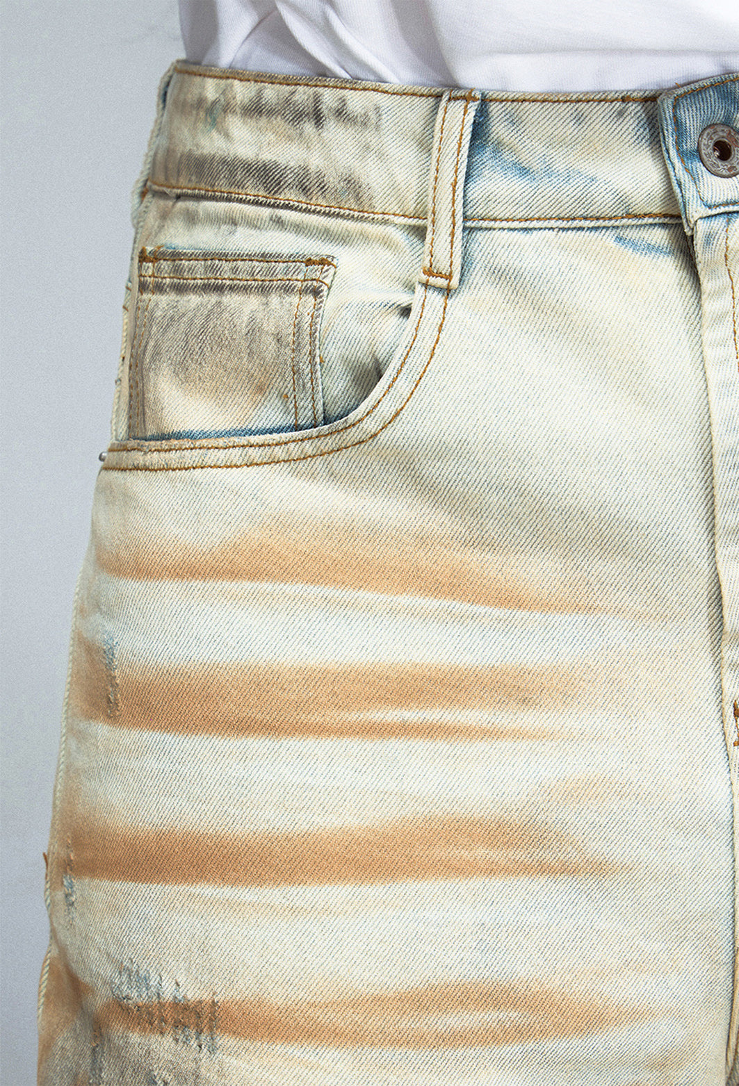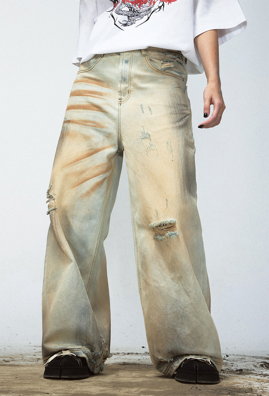 Mud-dyed washed straight jeans