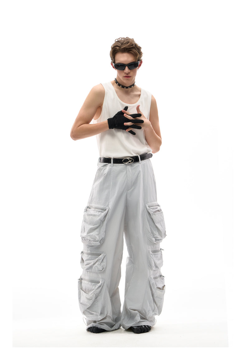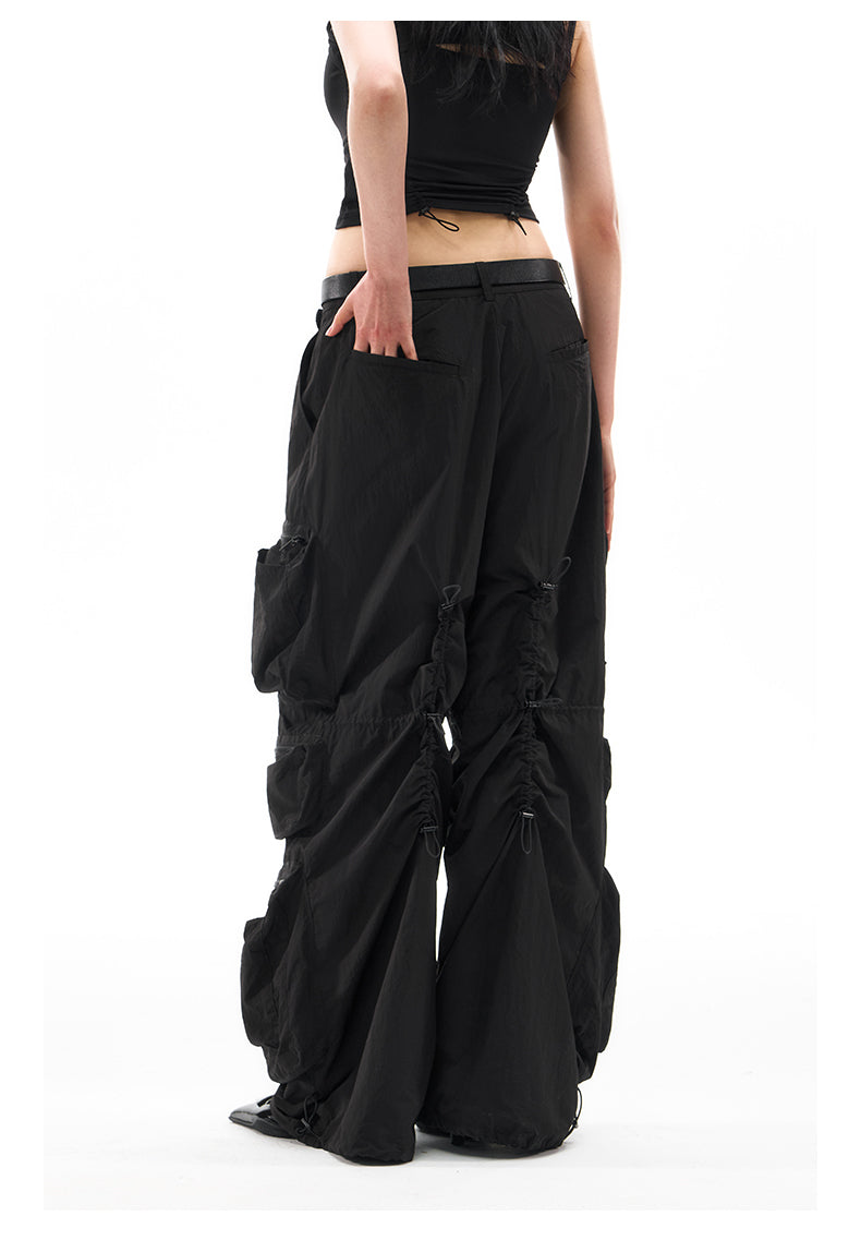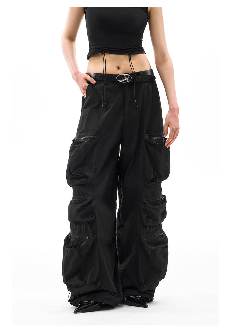 Multi-pocket wide-leg casual pants