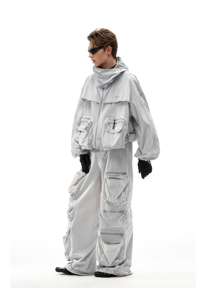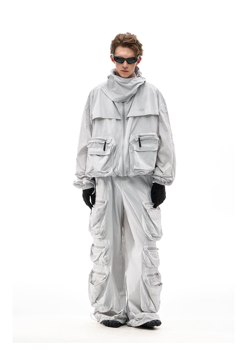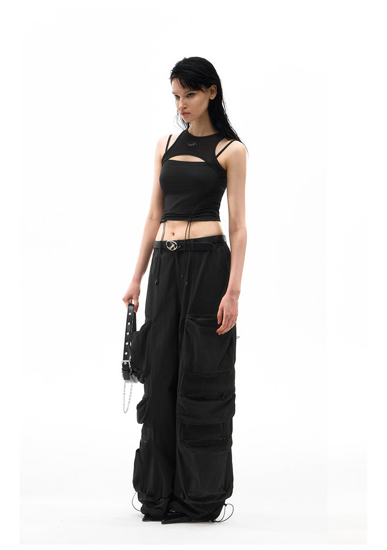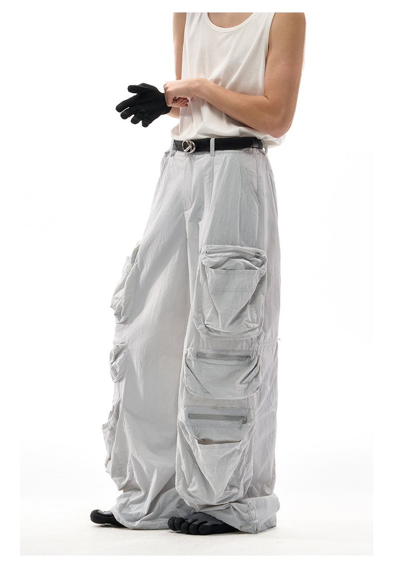 Multi-pocket wide-leg casual pants