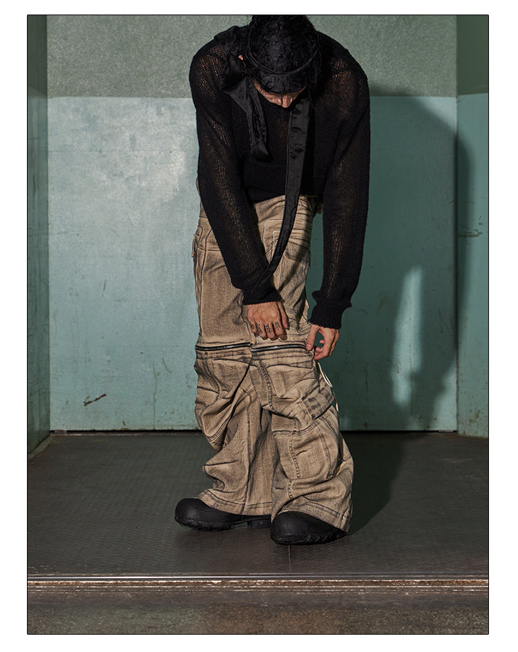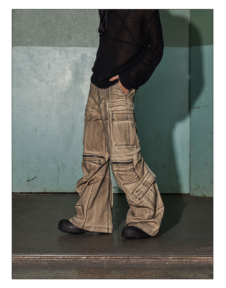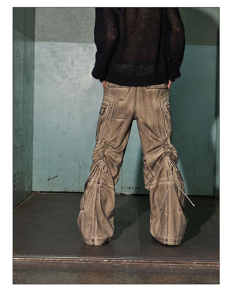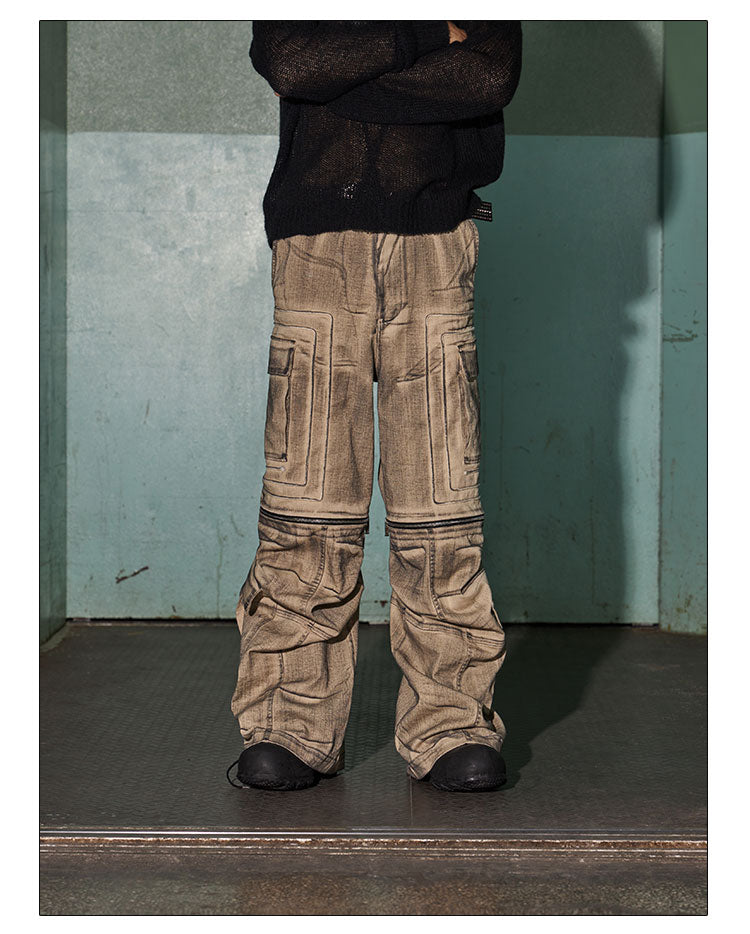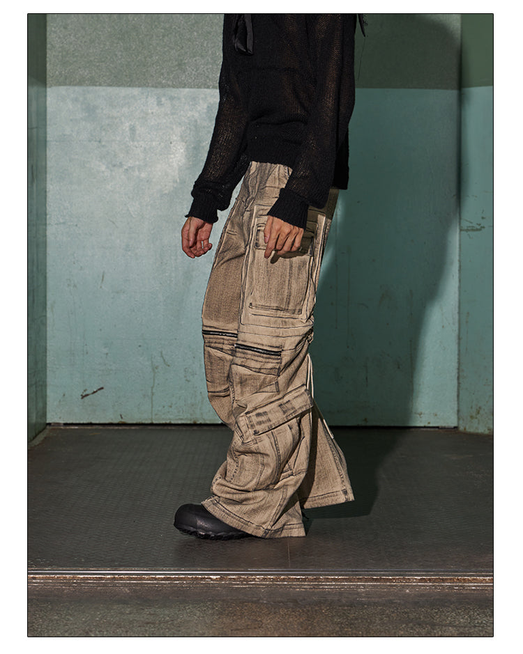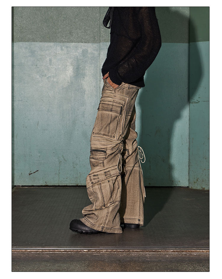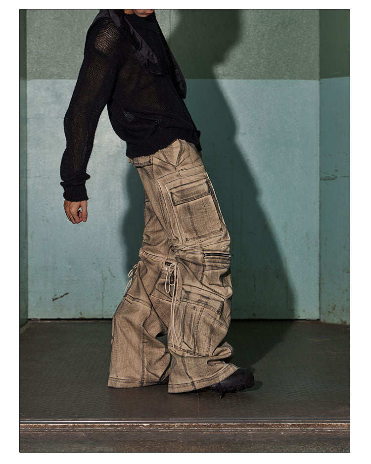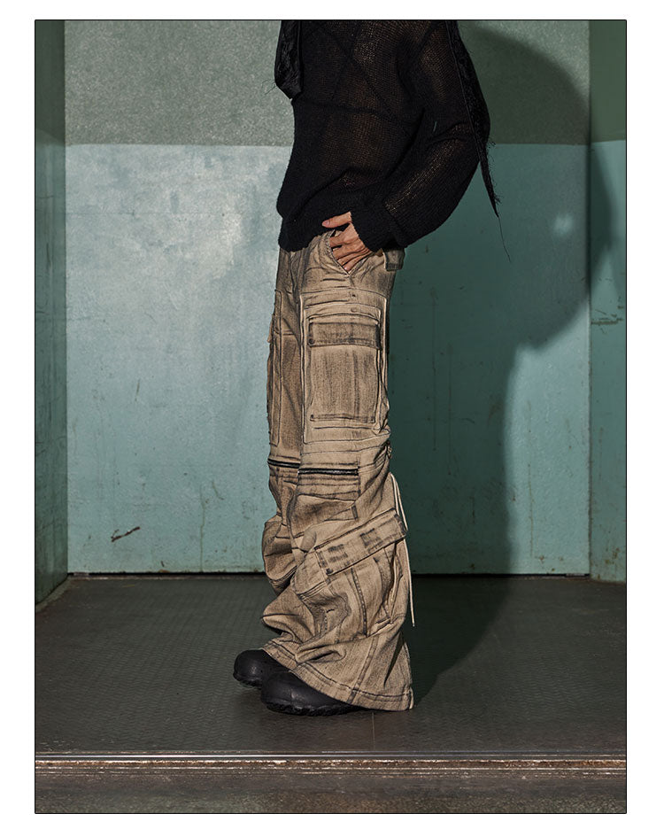 Niche Design Multi-pocket Washed Damaged Cargo Pants