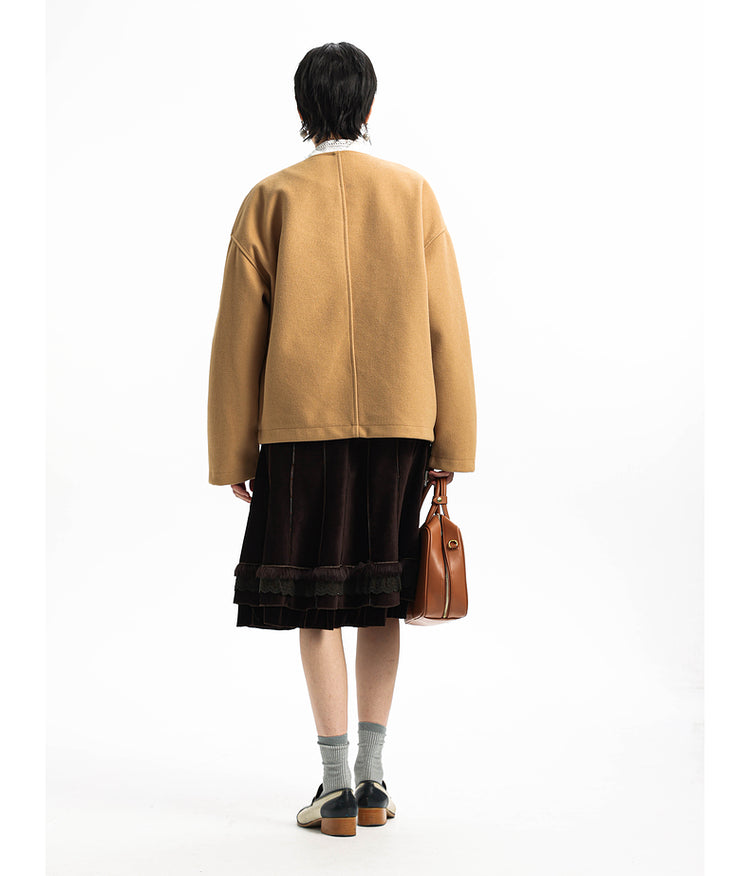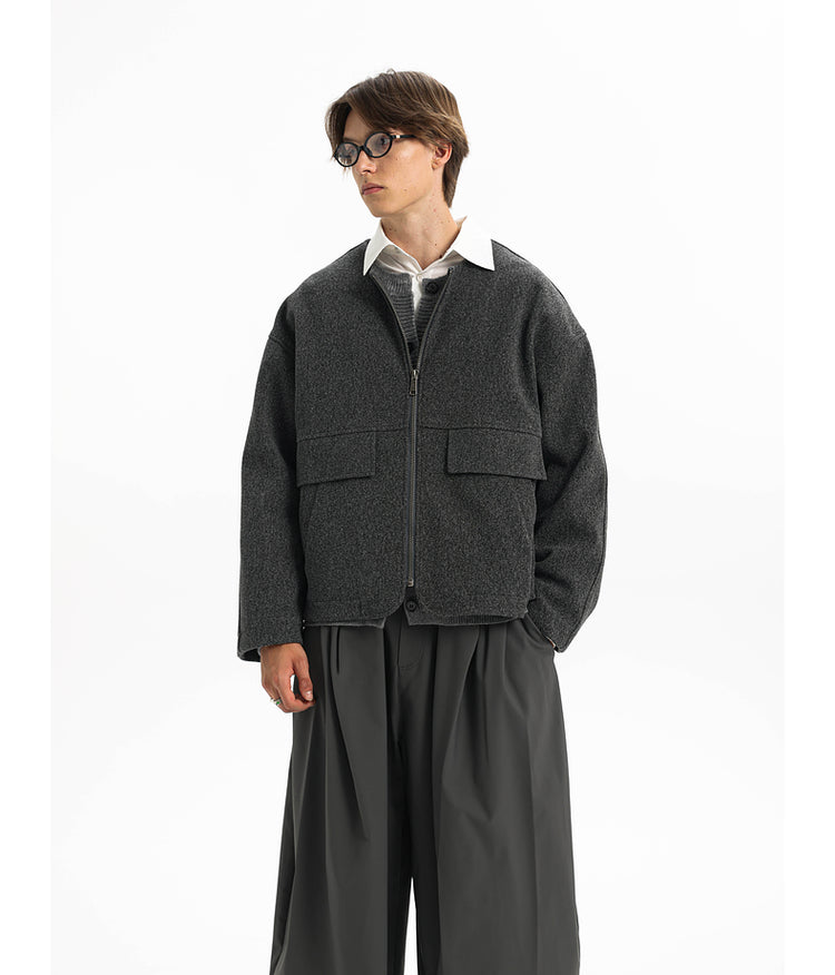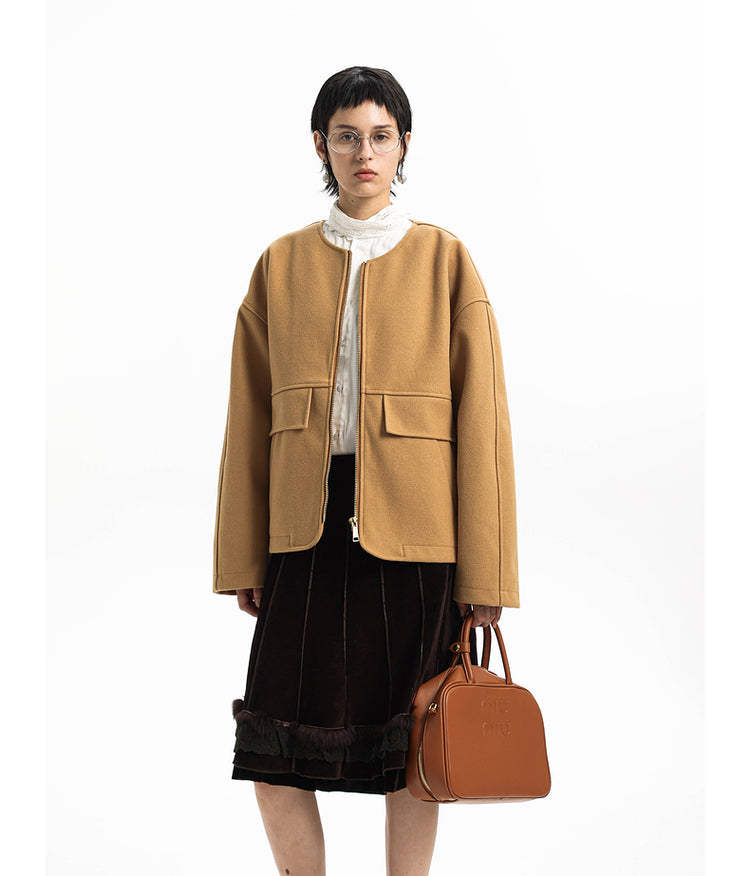 Old Money Style Round Neck Zipper Jacket