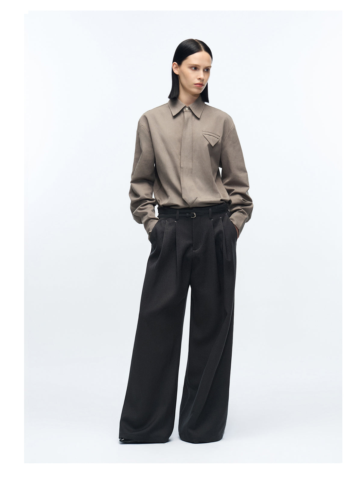 Pleated acetate straight pants
