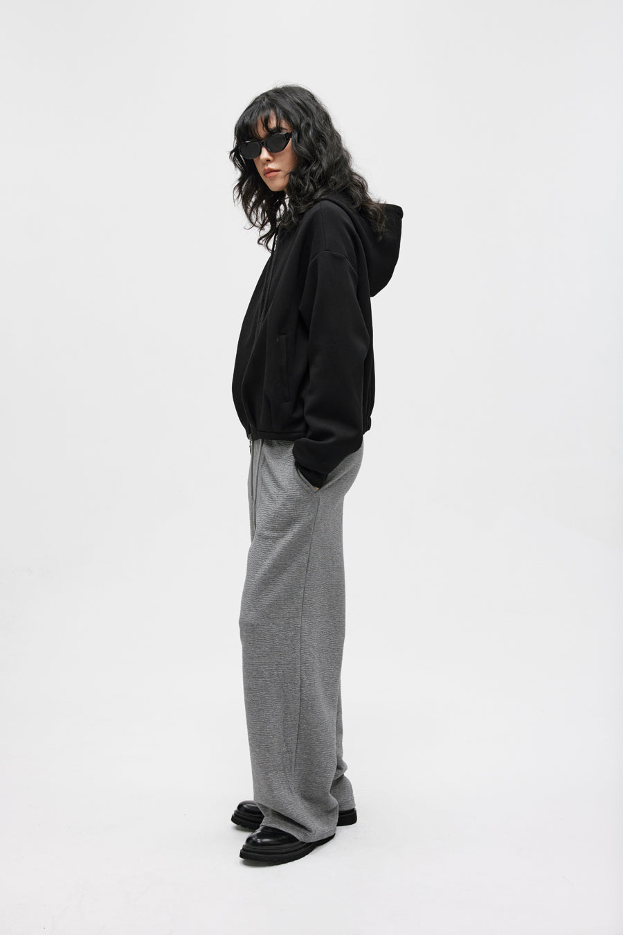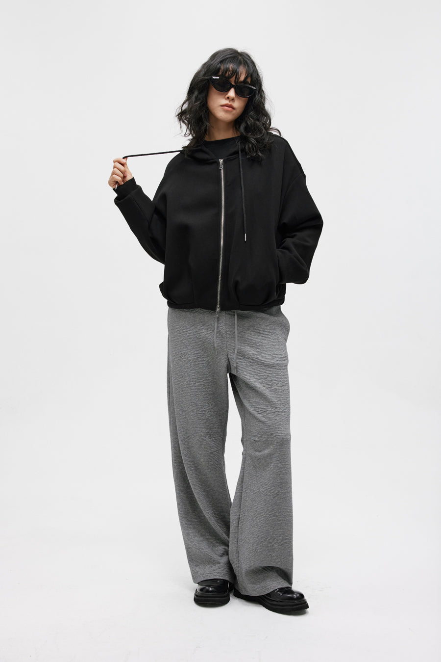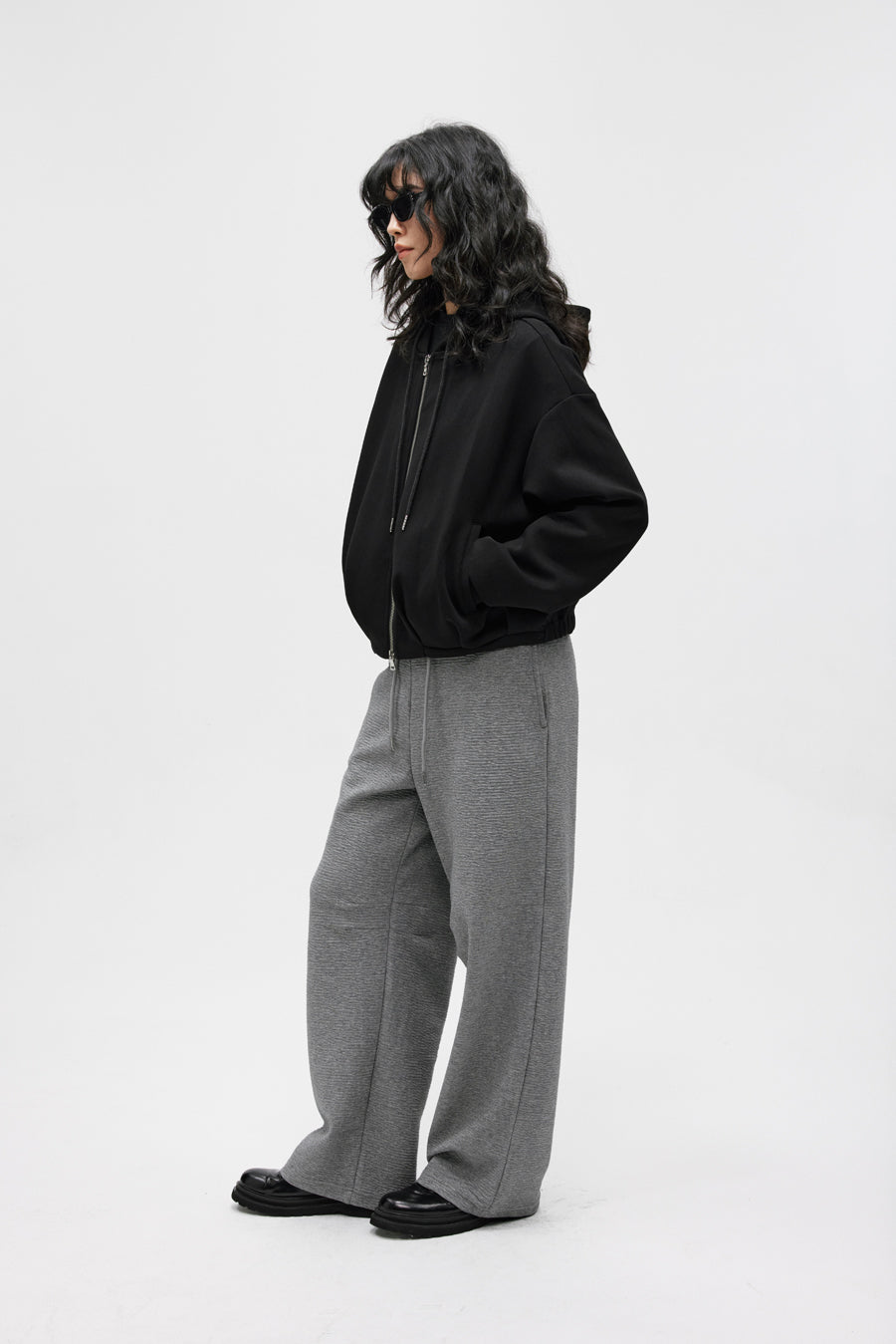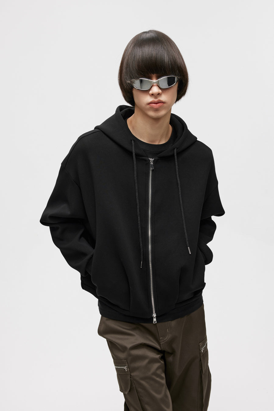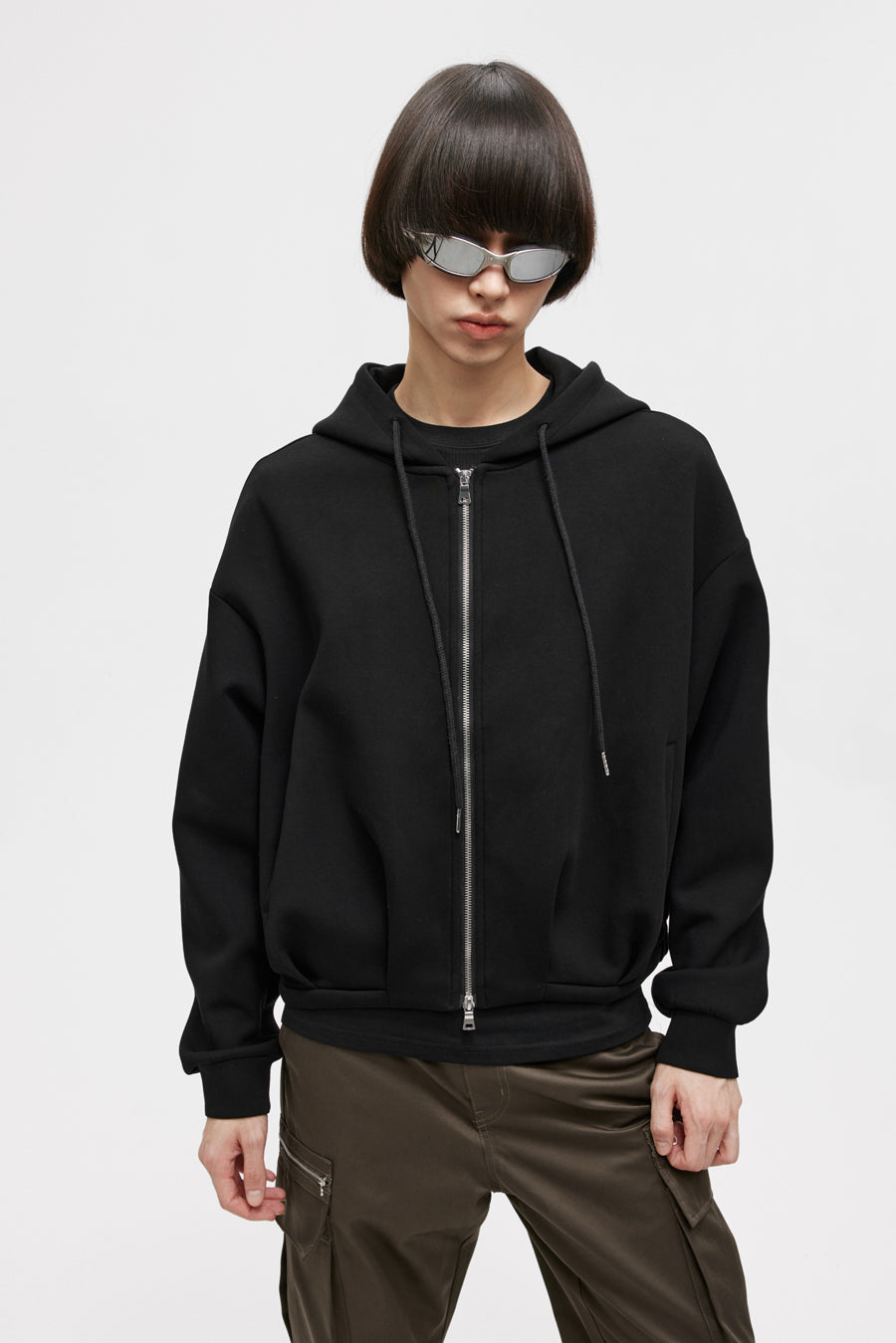 Pleated Air Layer Hooded Sweatshirt