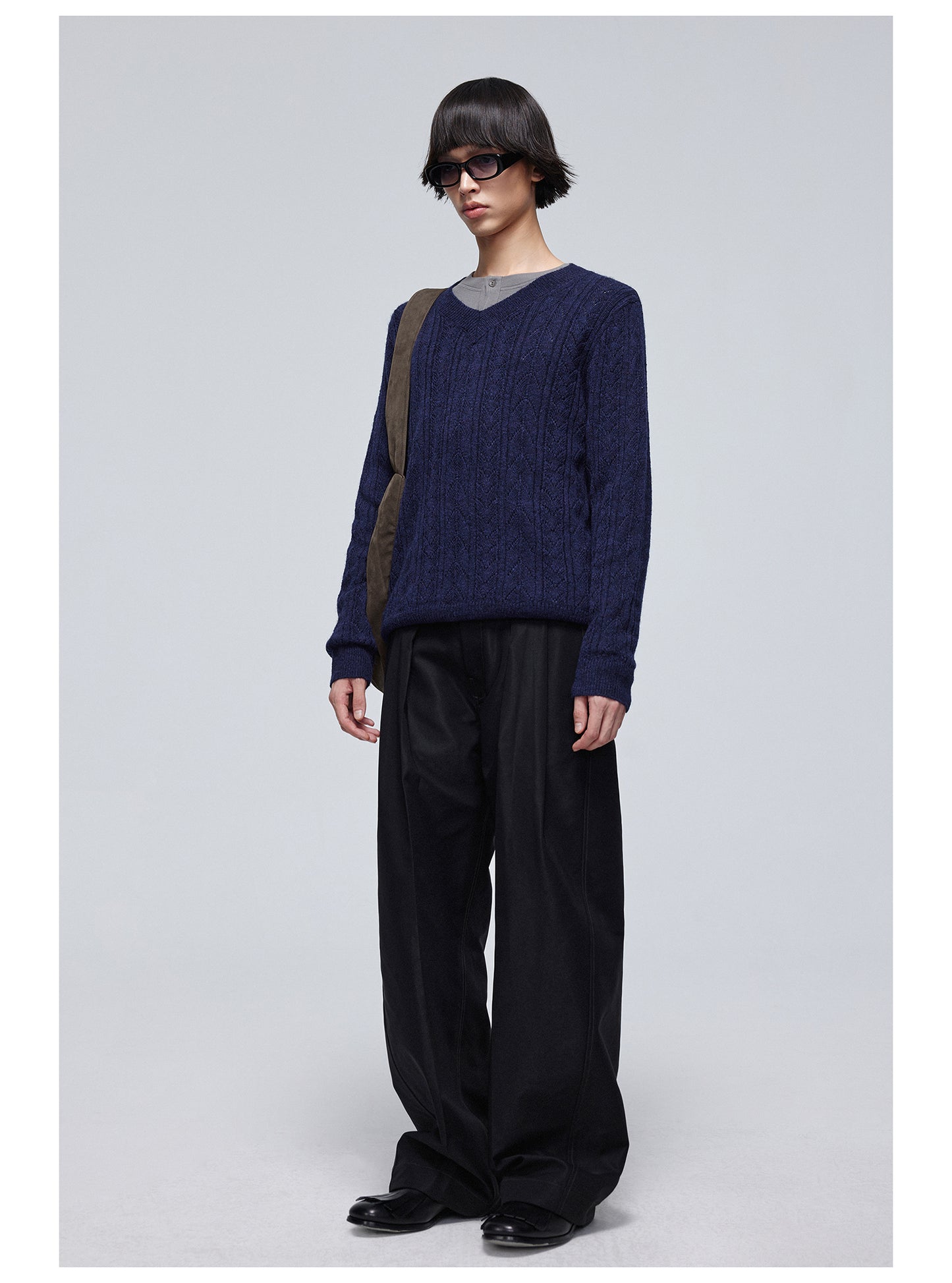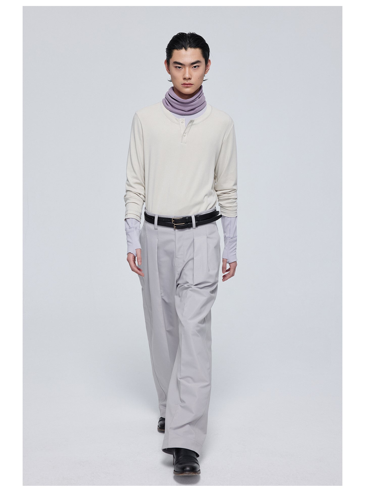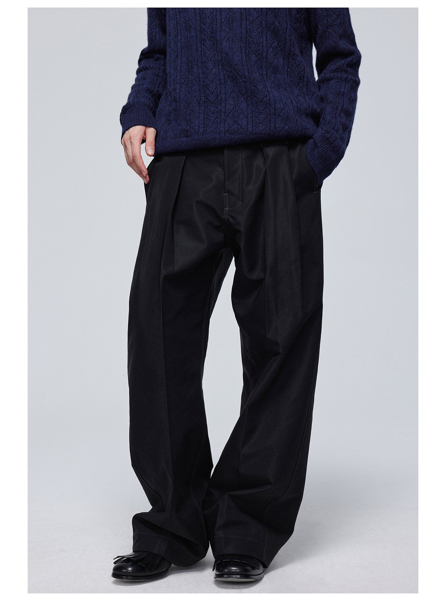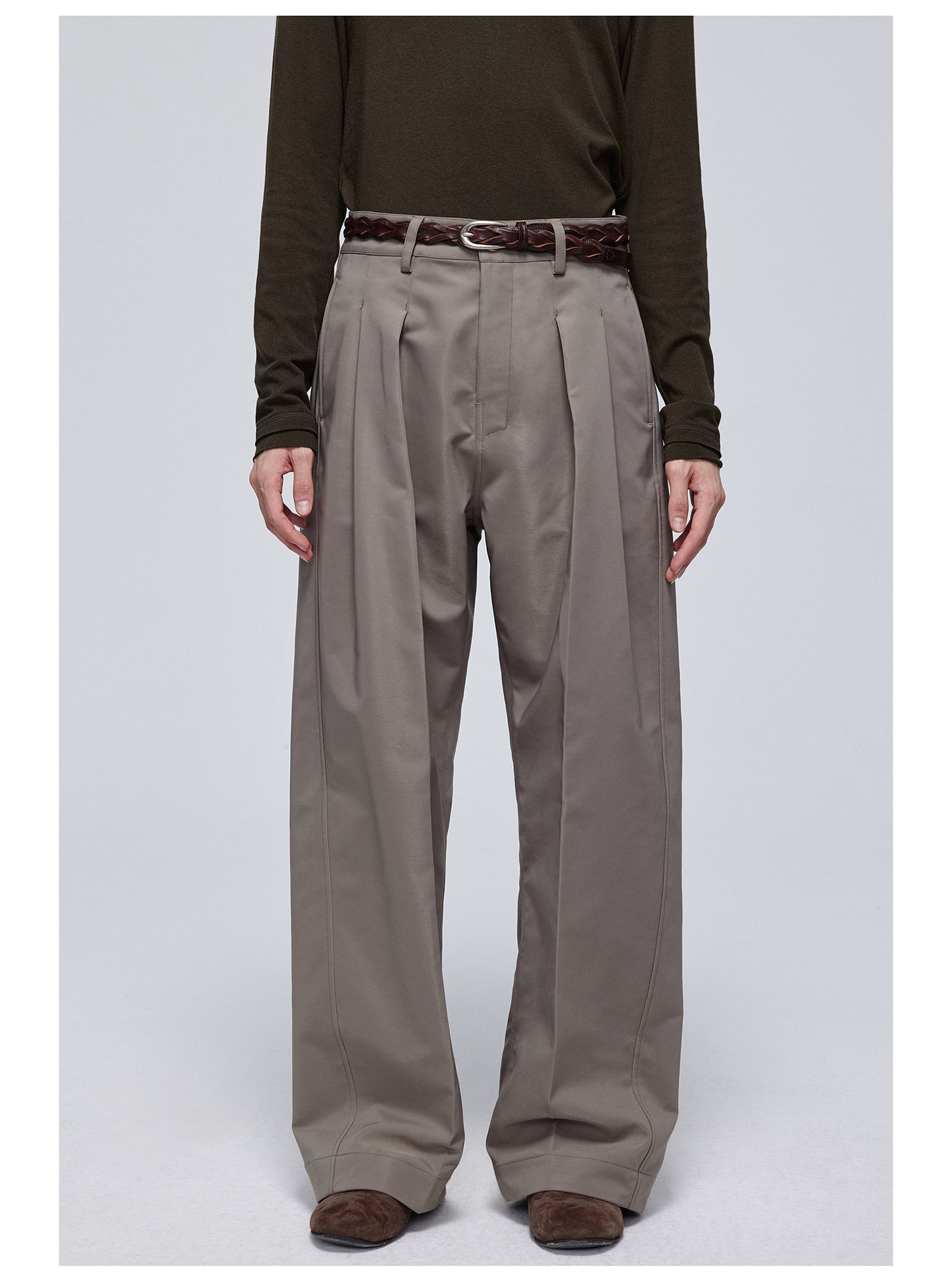 Pleated straight pants