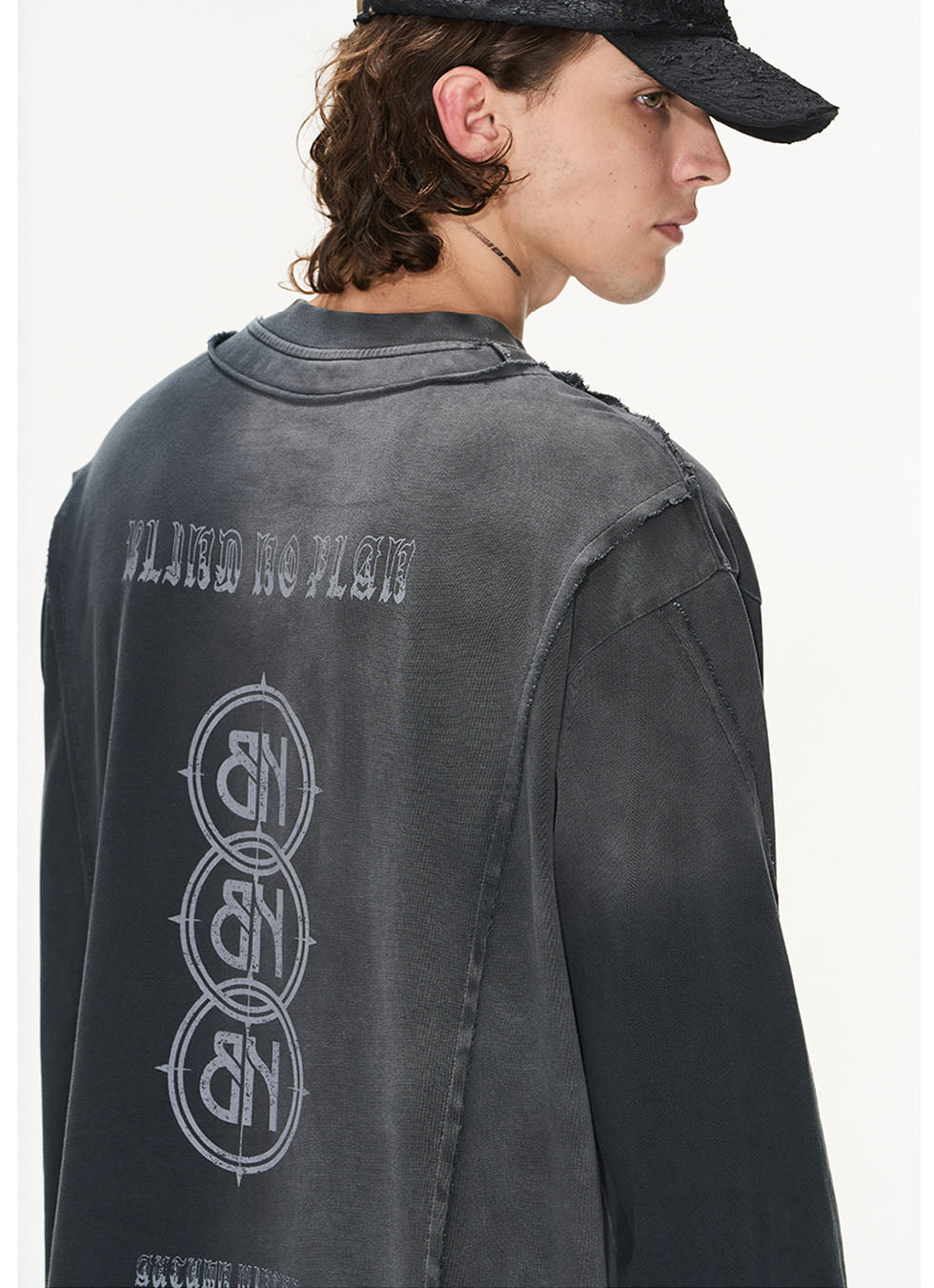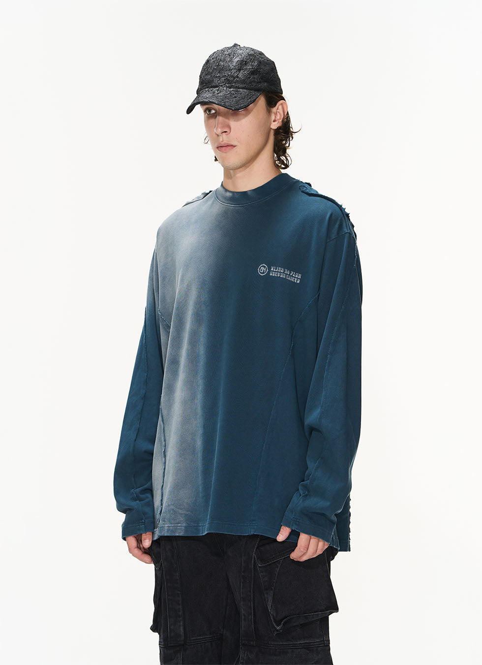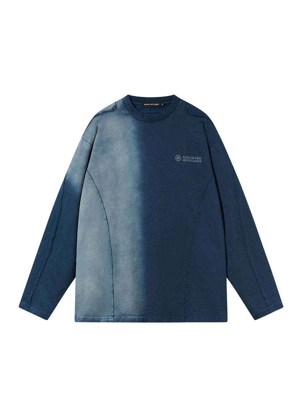 Raw-edge Gradient Loose Round Neck Long Sleeve T-Shirt