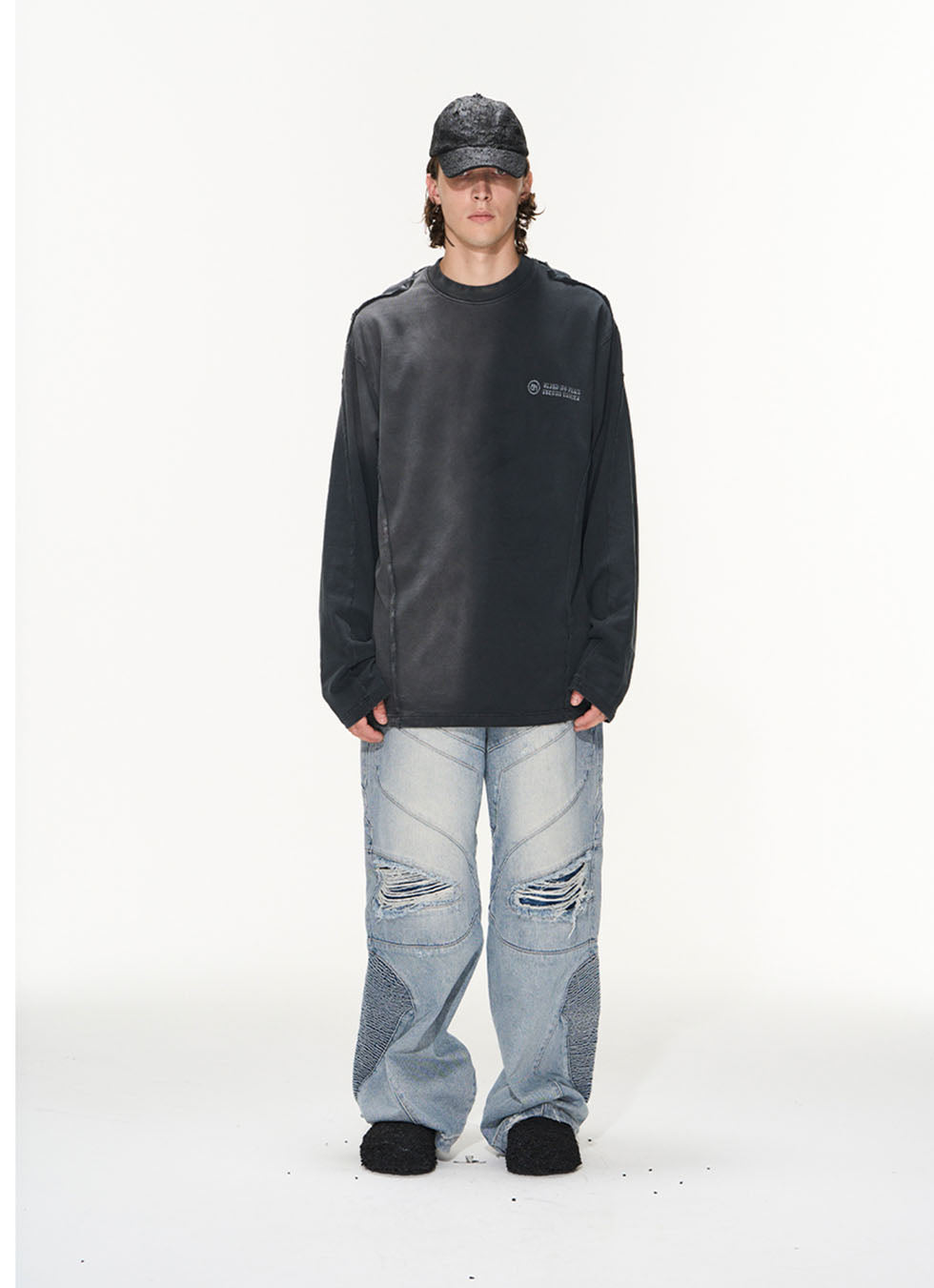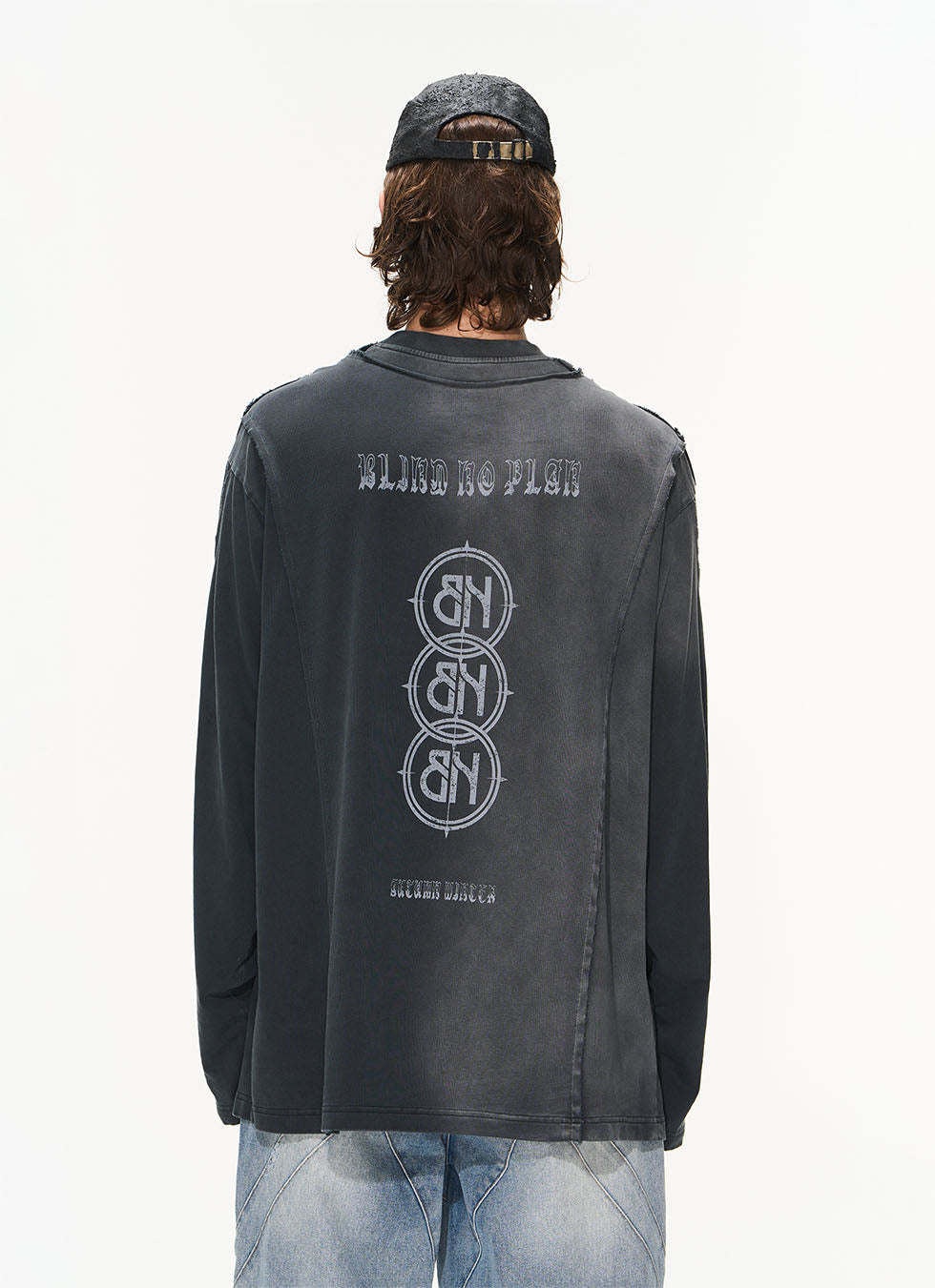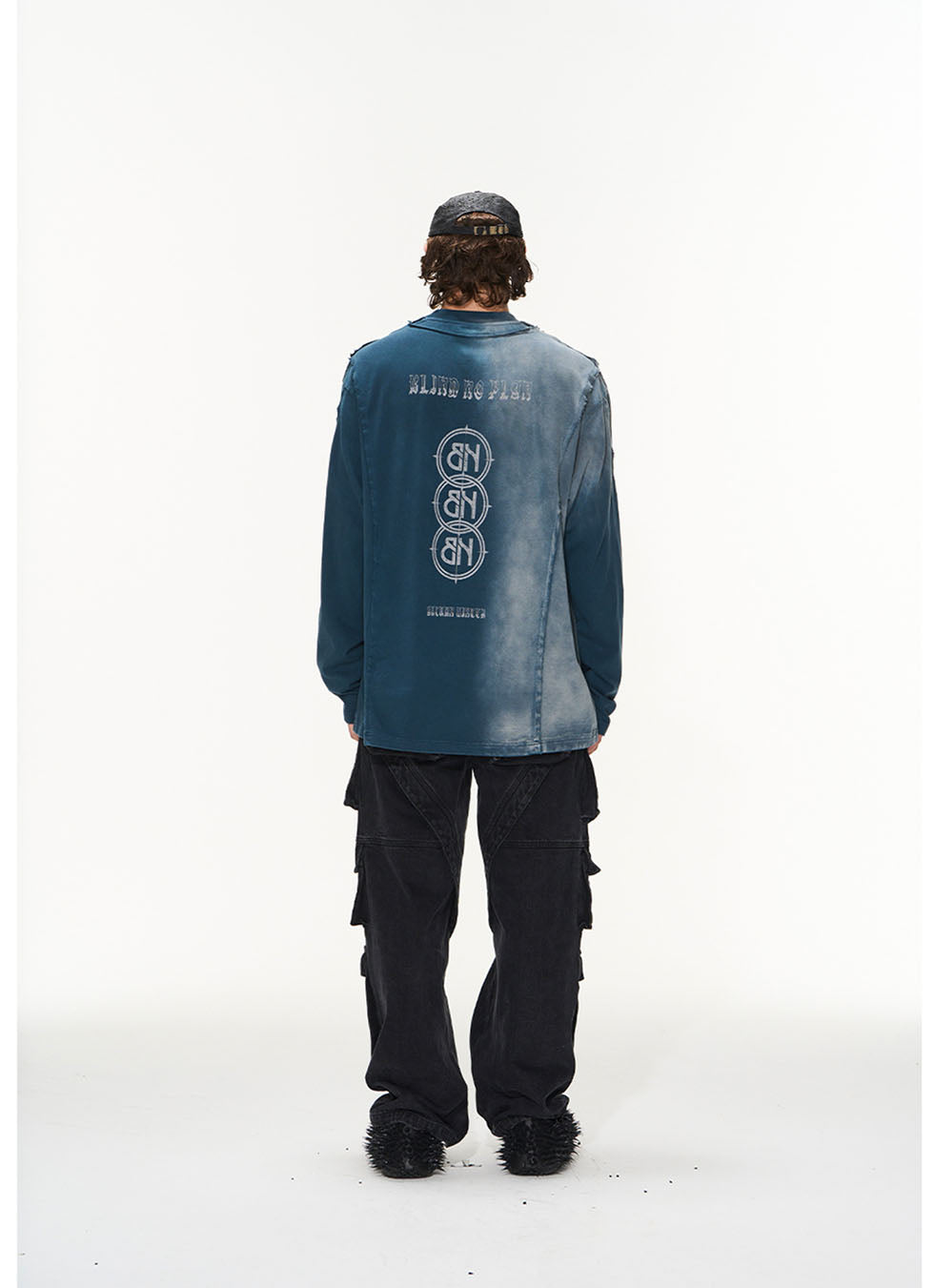 Raw-edge Gradient Loose Round Neck Long Sleeve T-Shirt