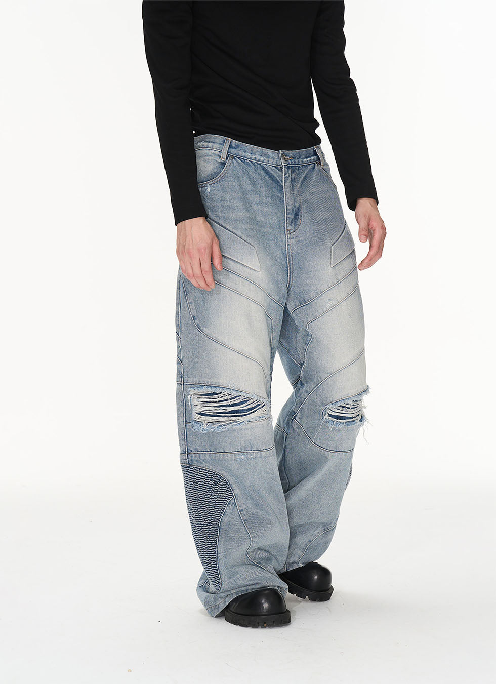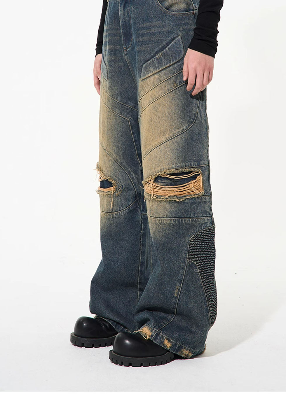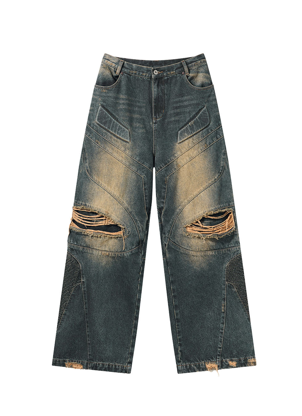 Retro Washed Damaged Denim Pants