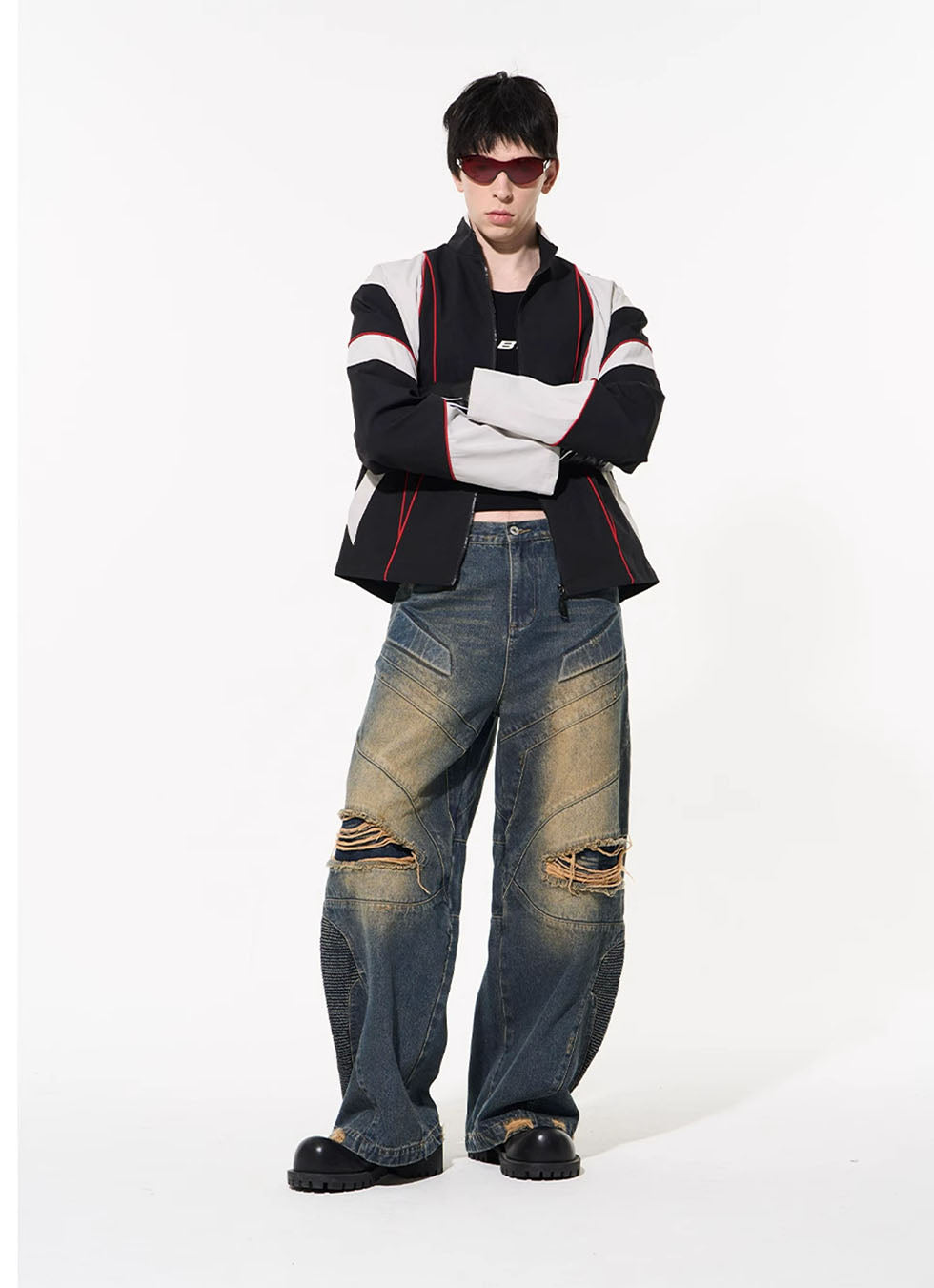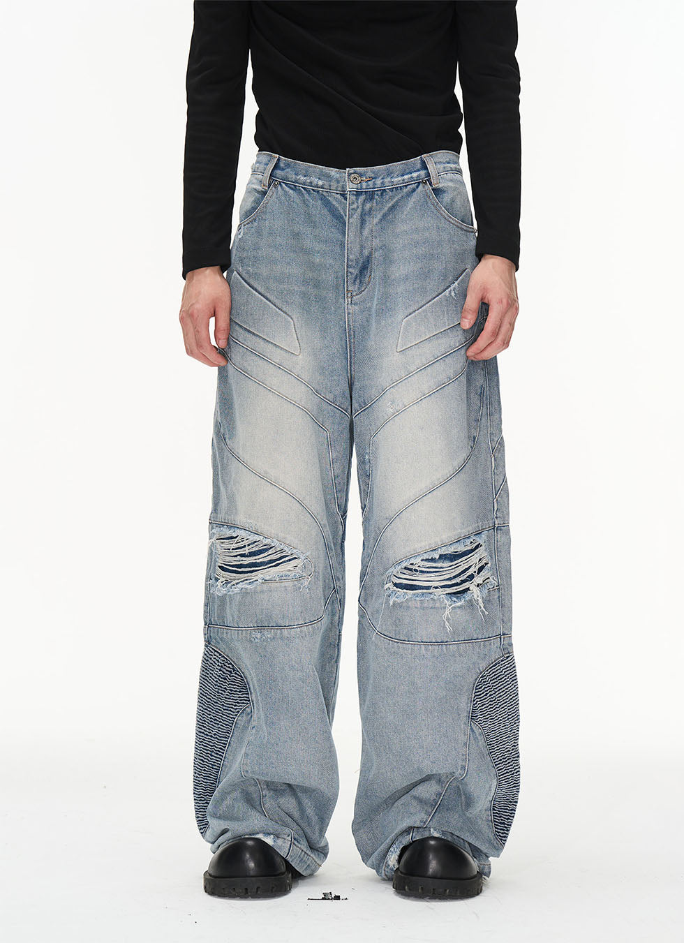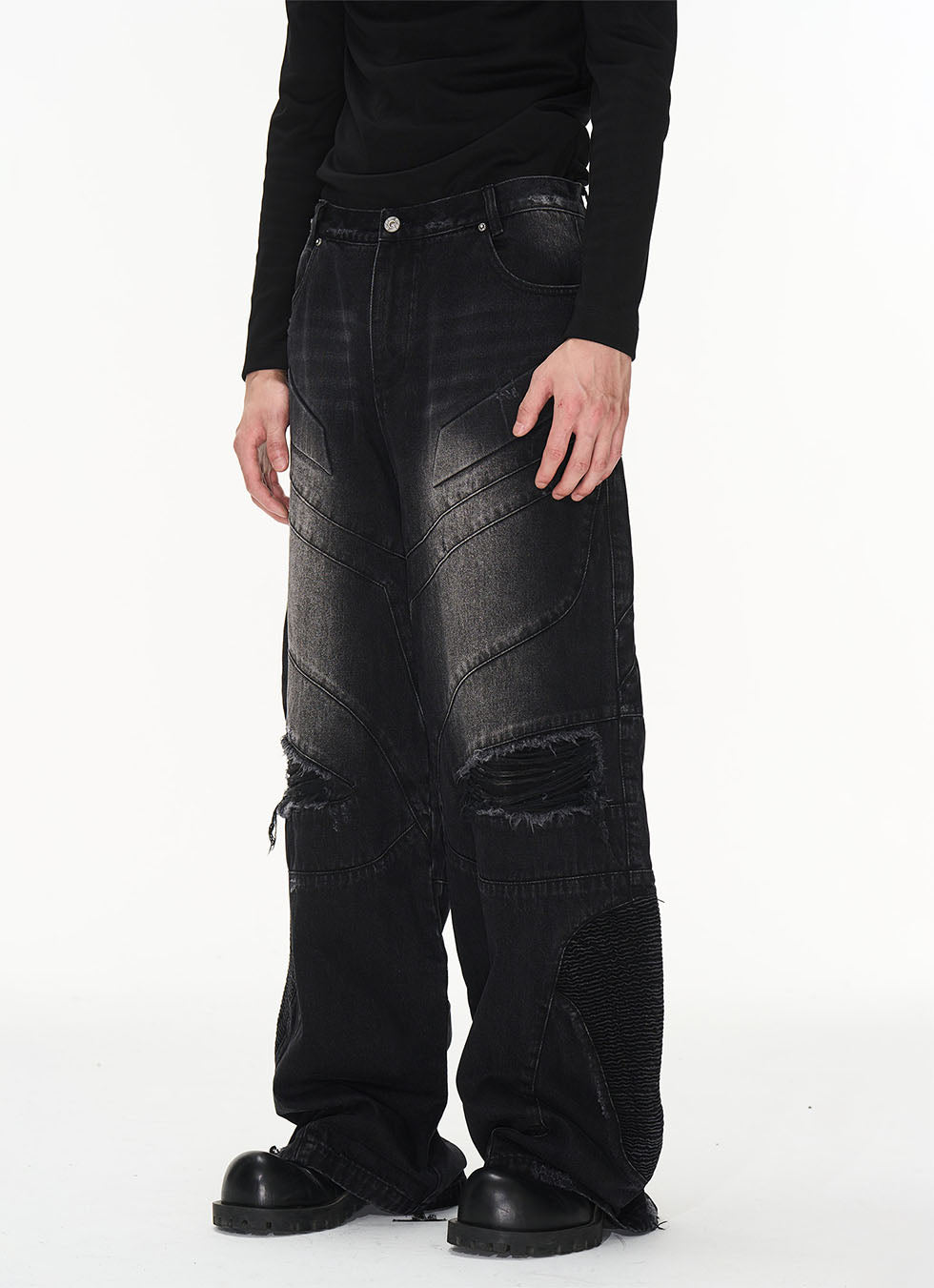 Retro Washed Damaged Denim Pants