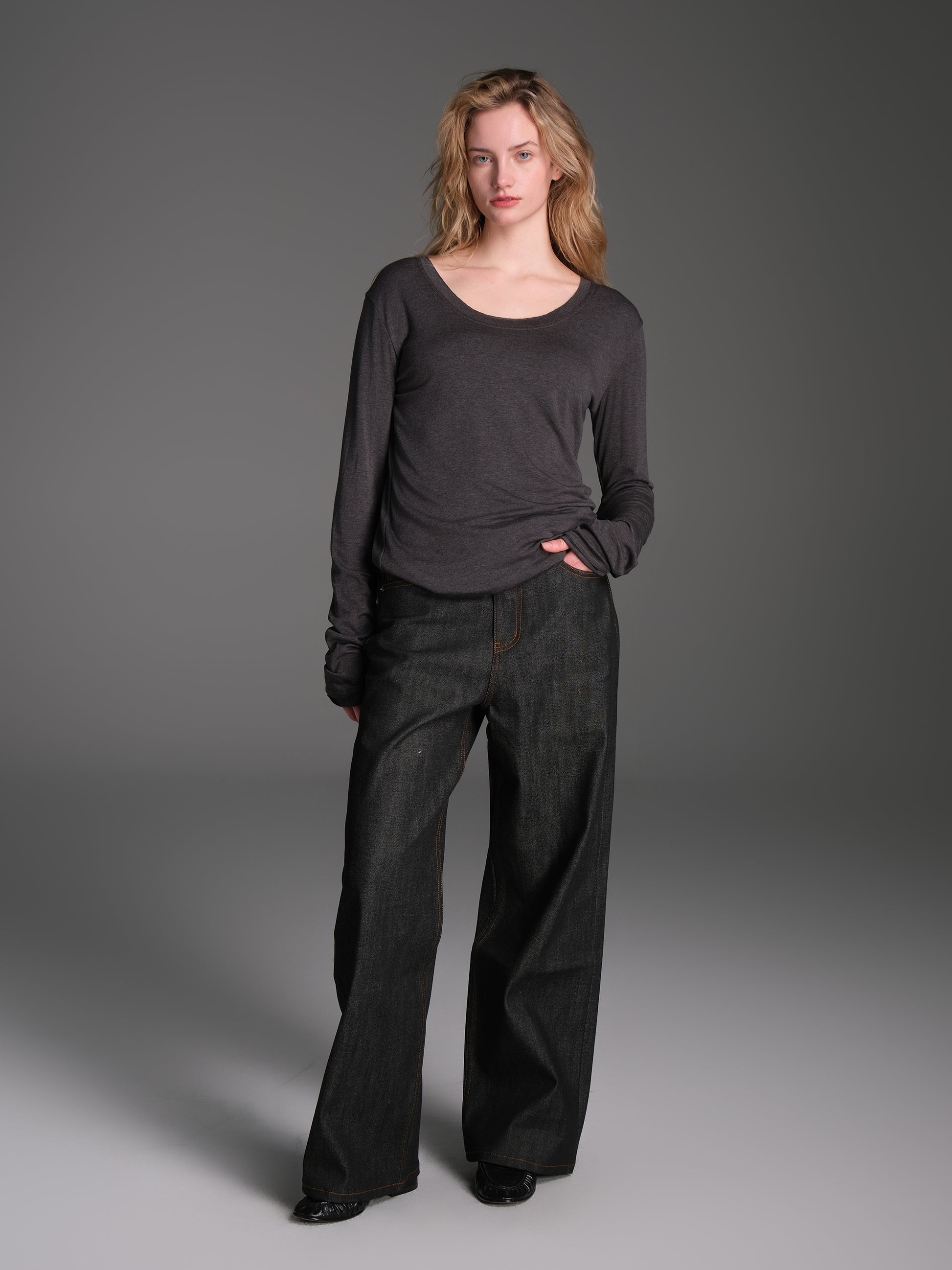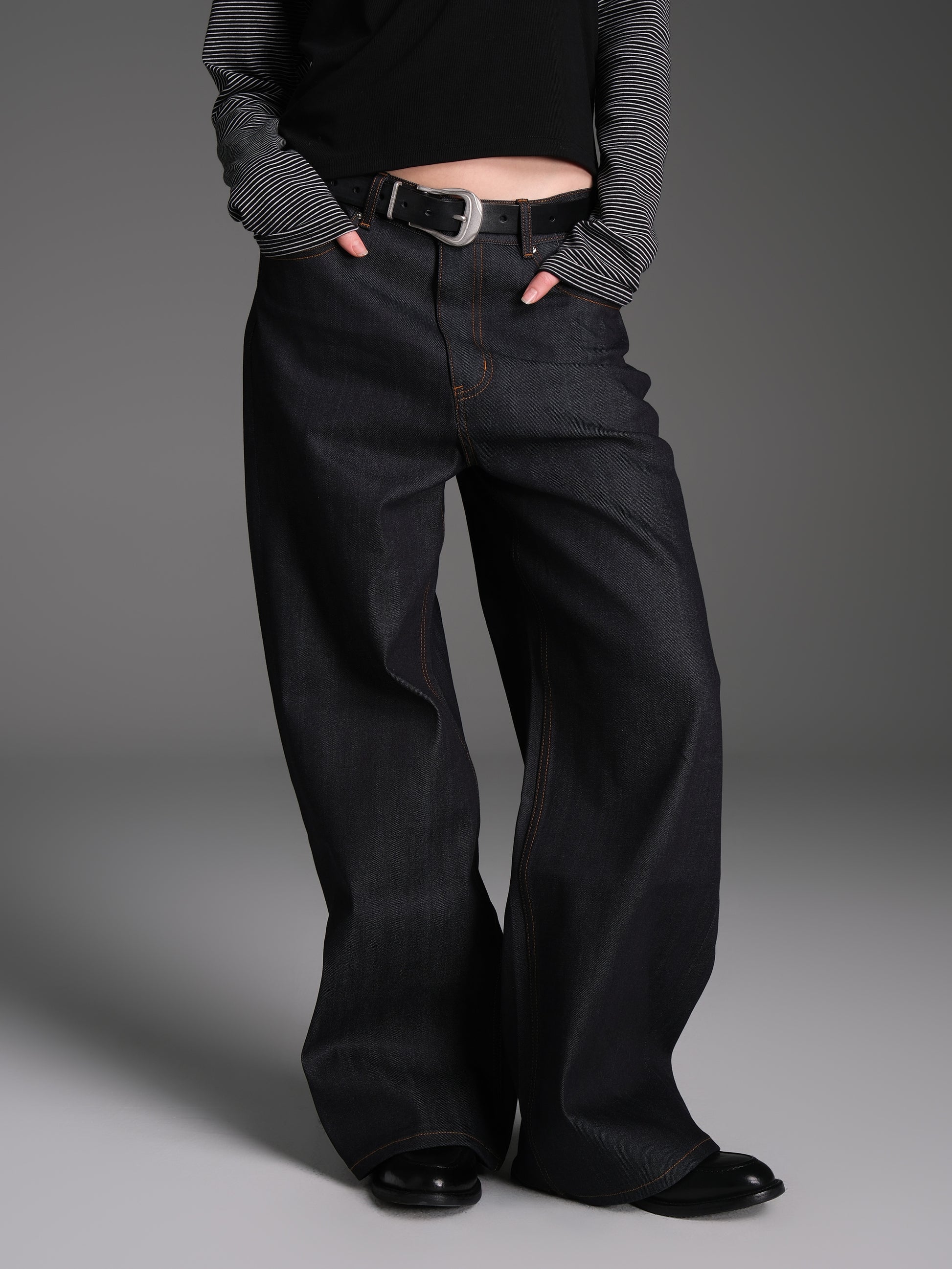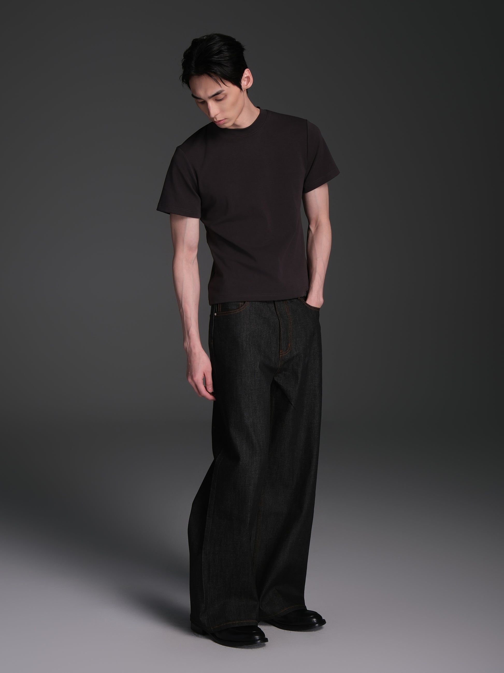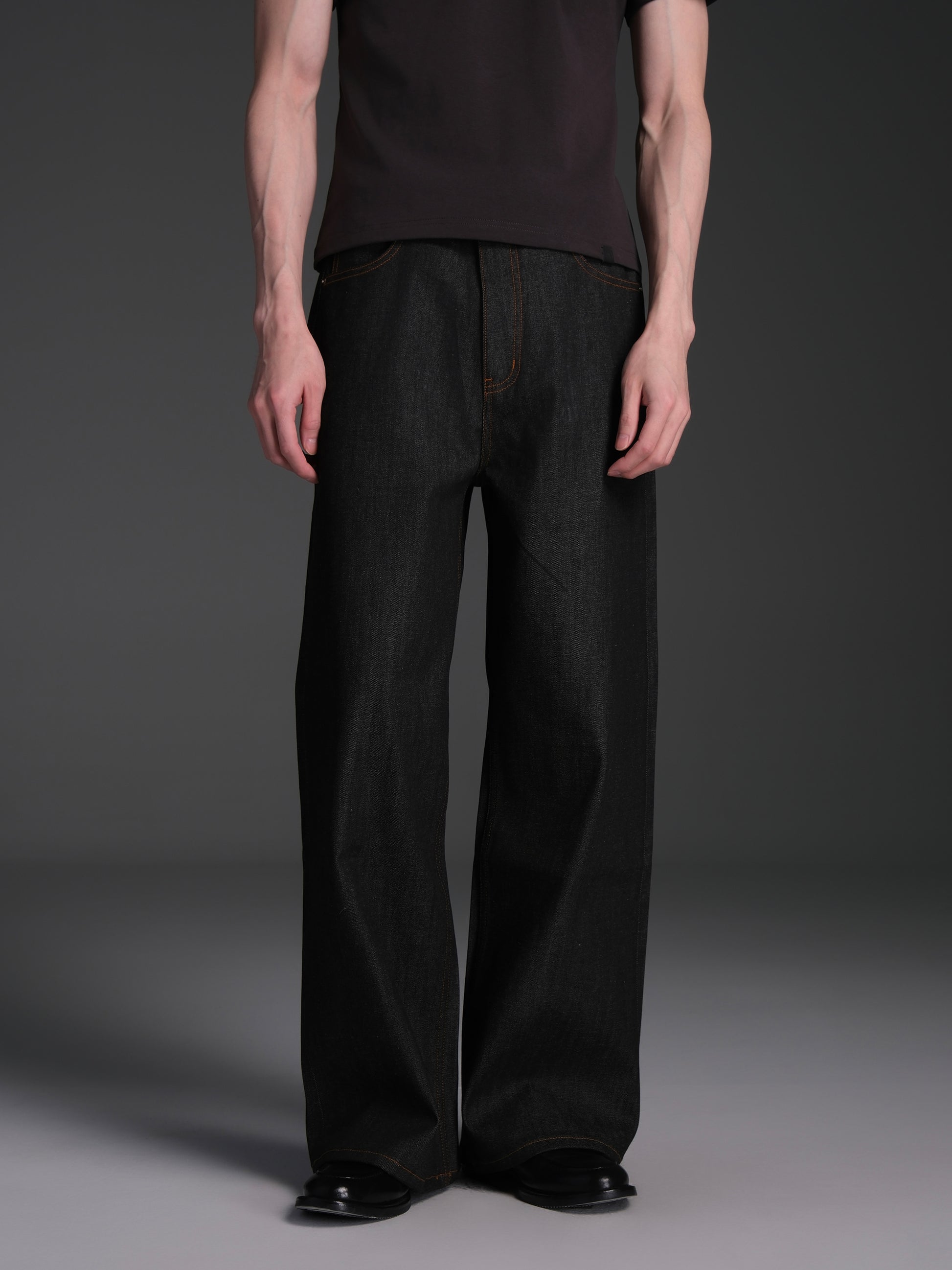 Solid color original denim pants