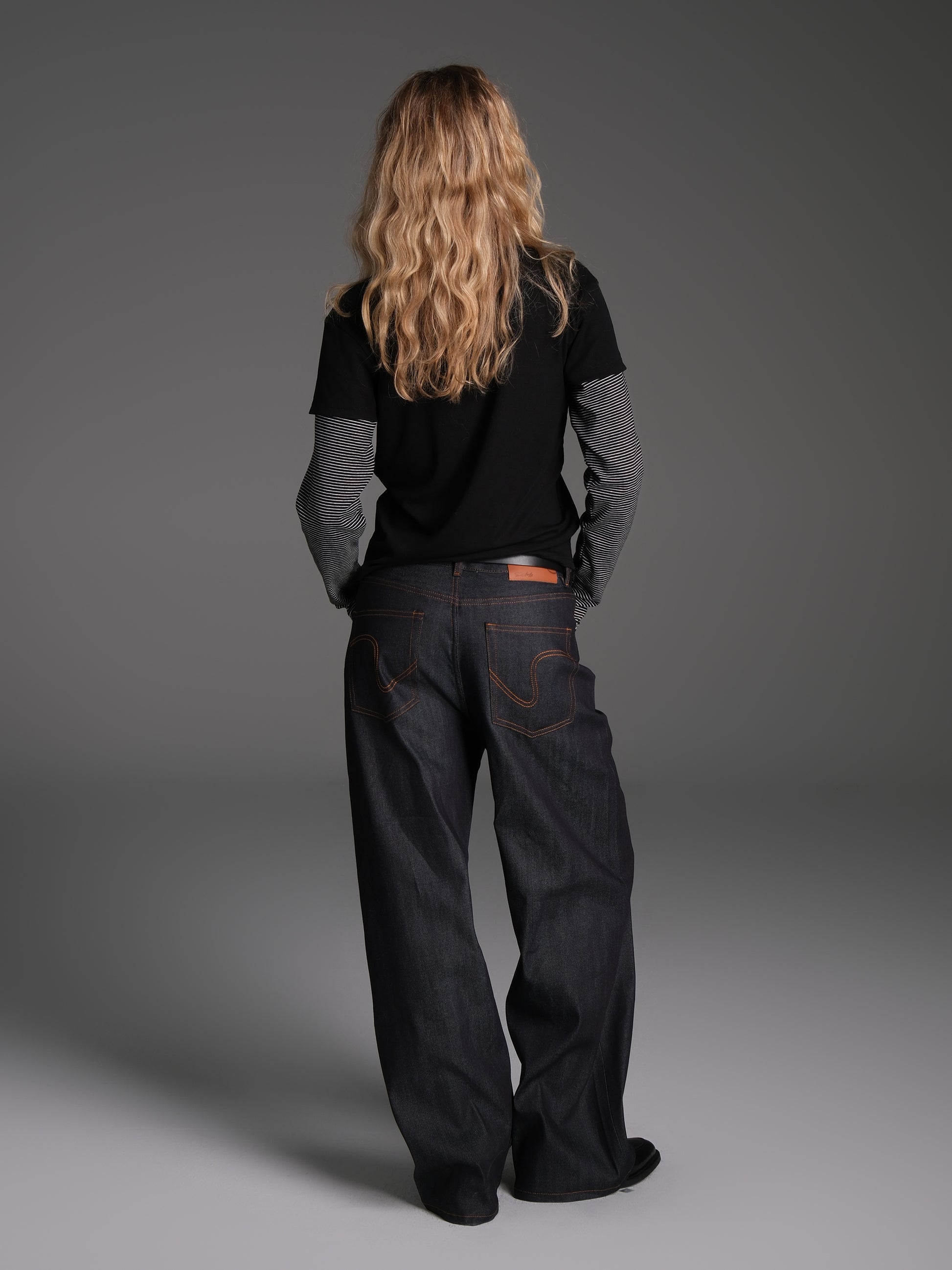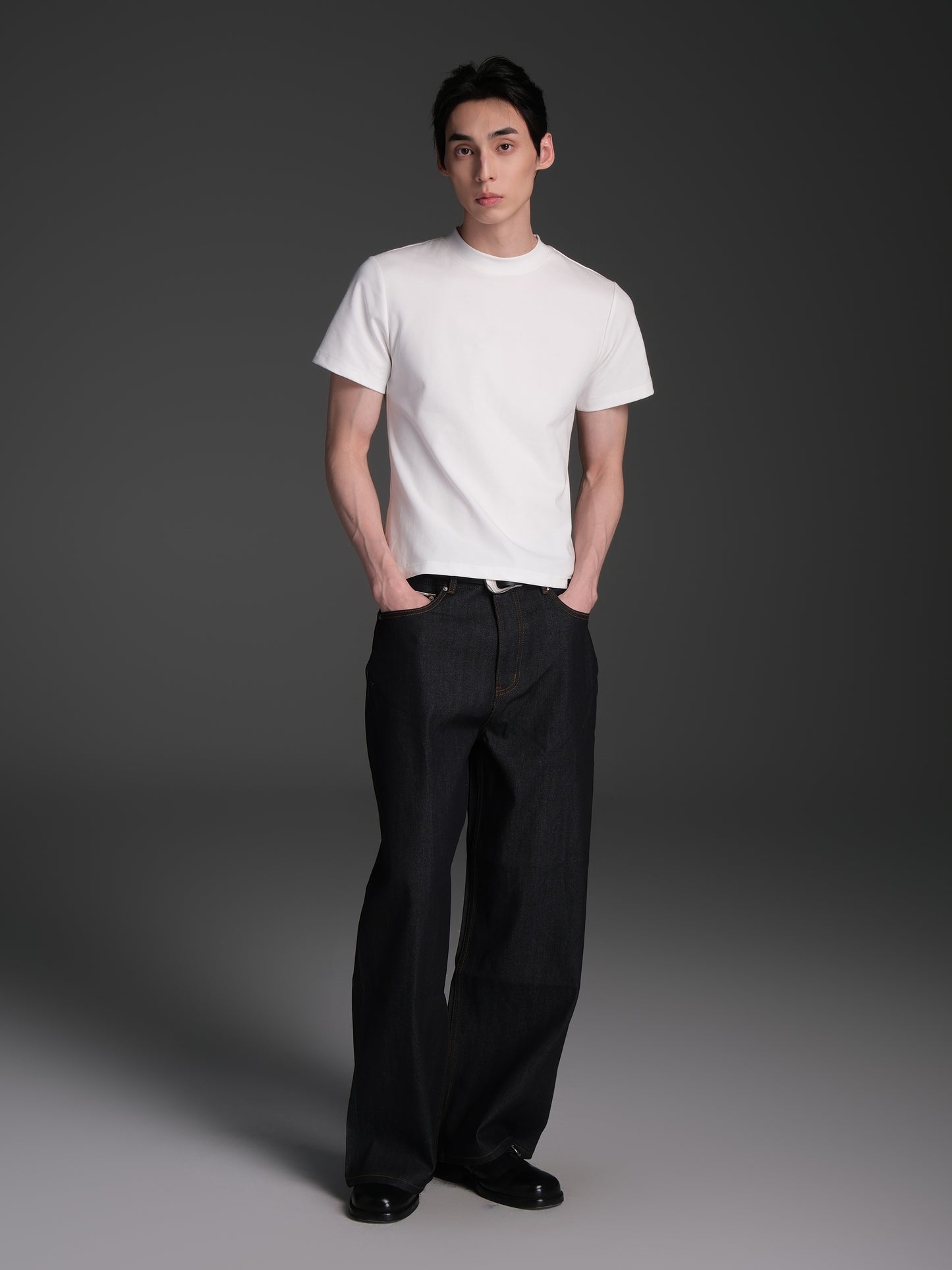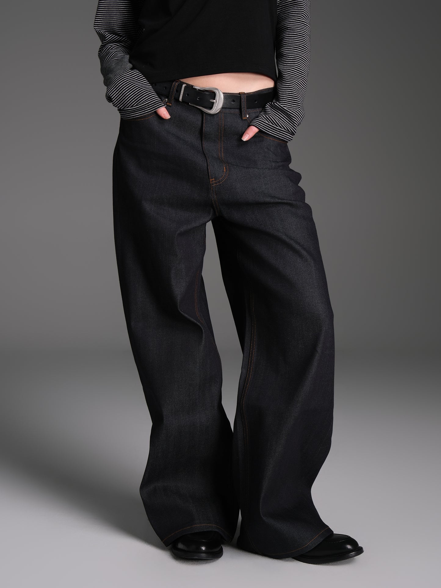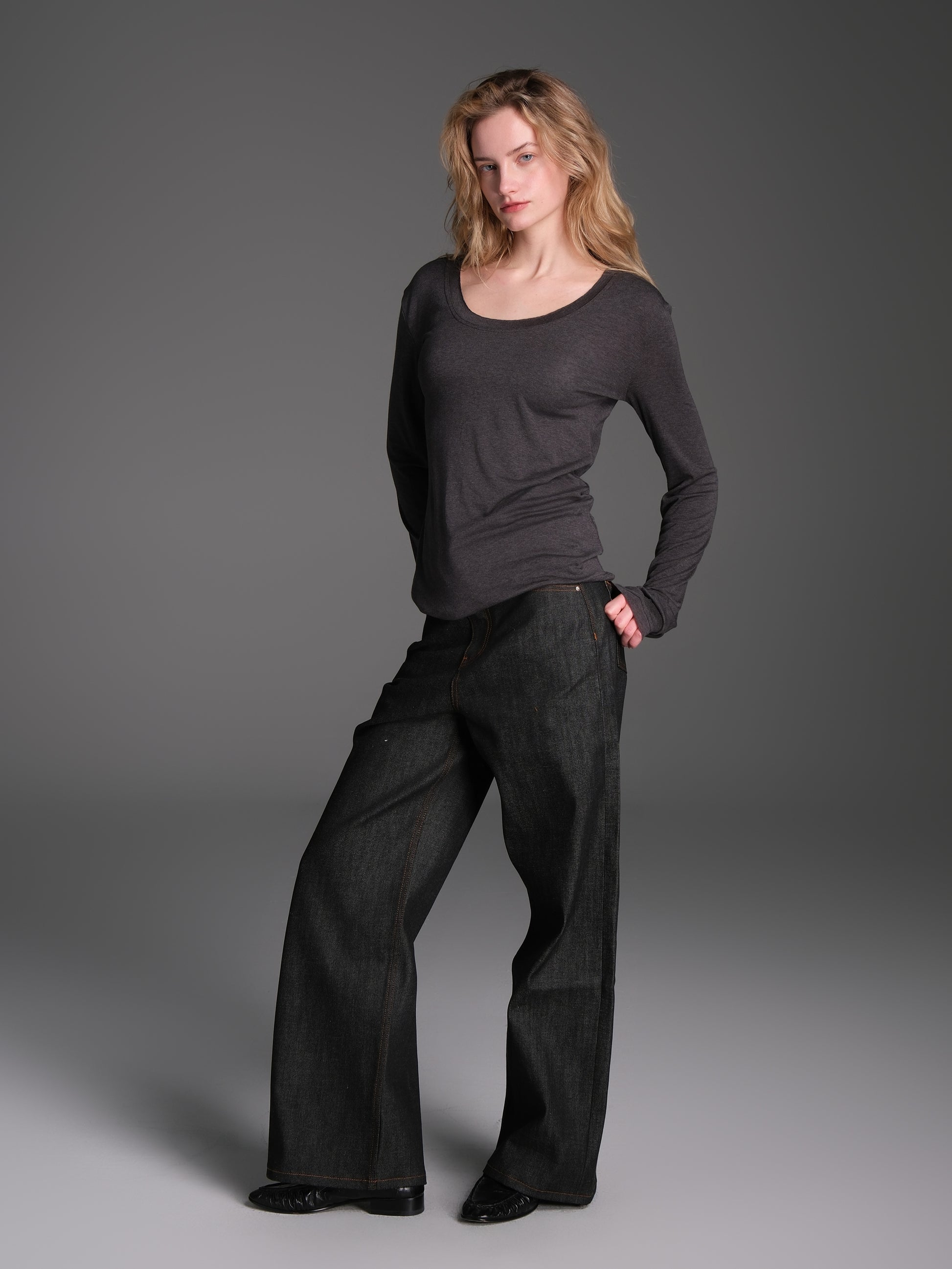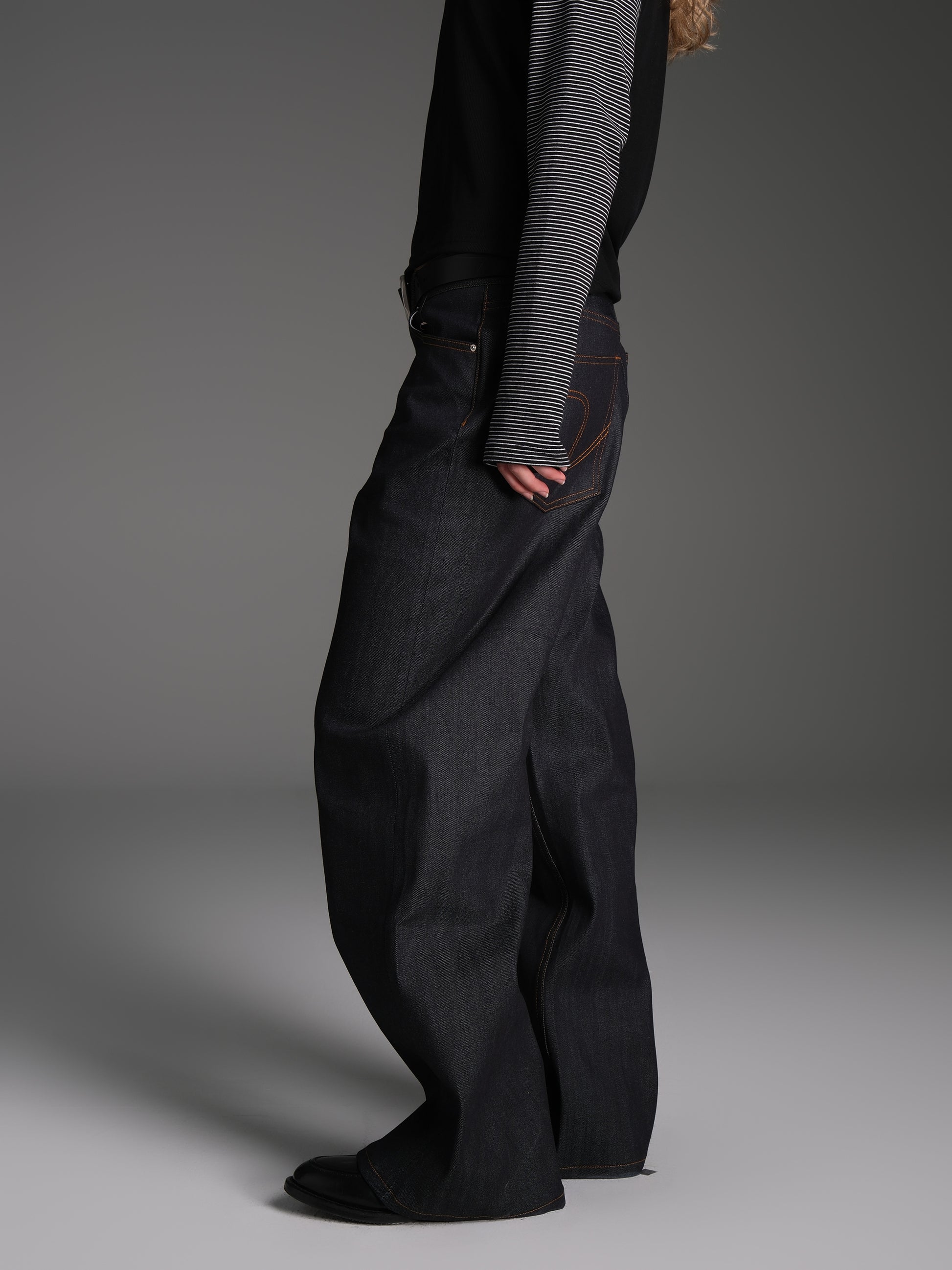 Solid color original denim pants