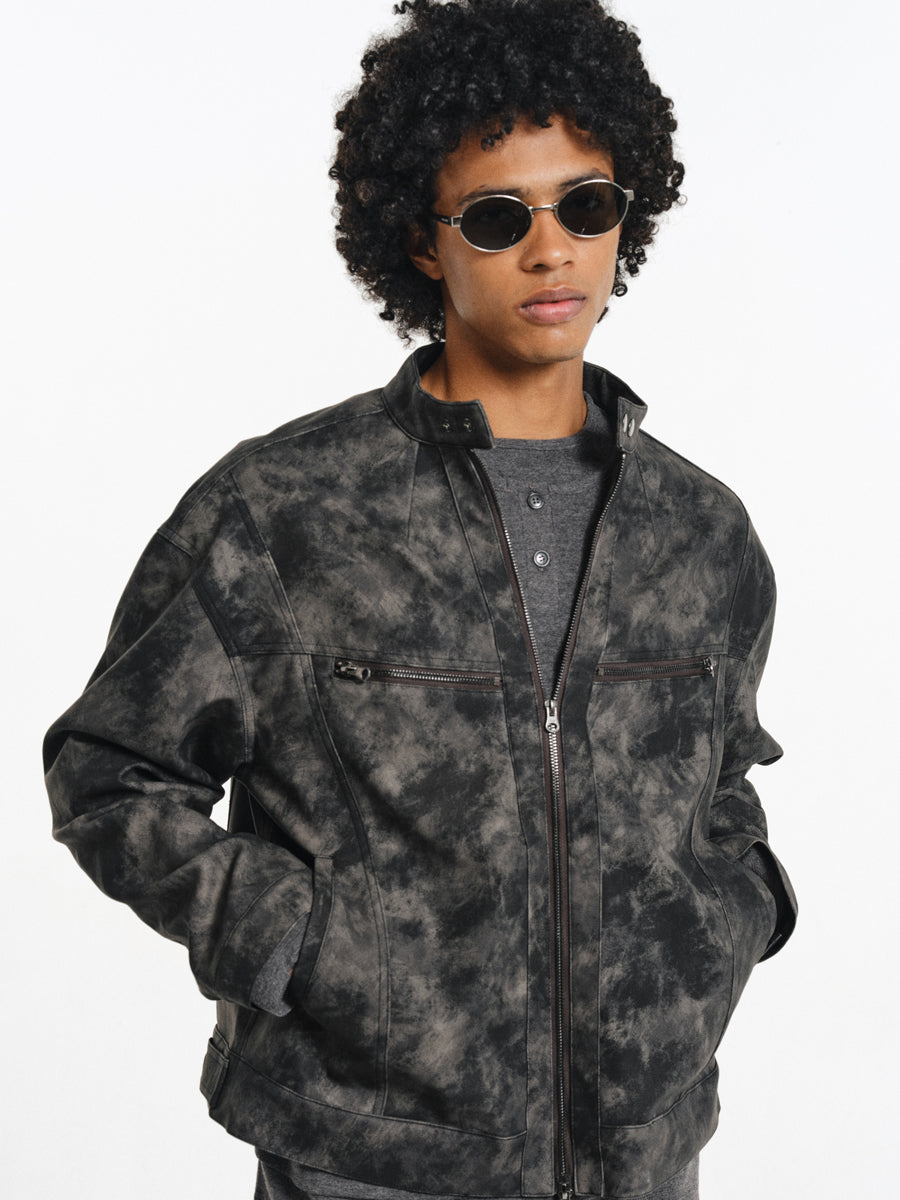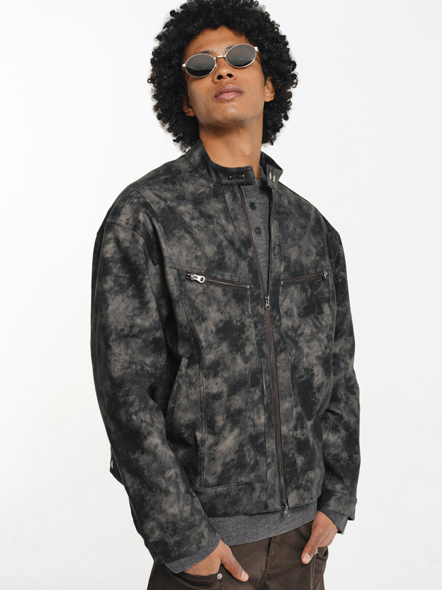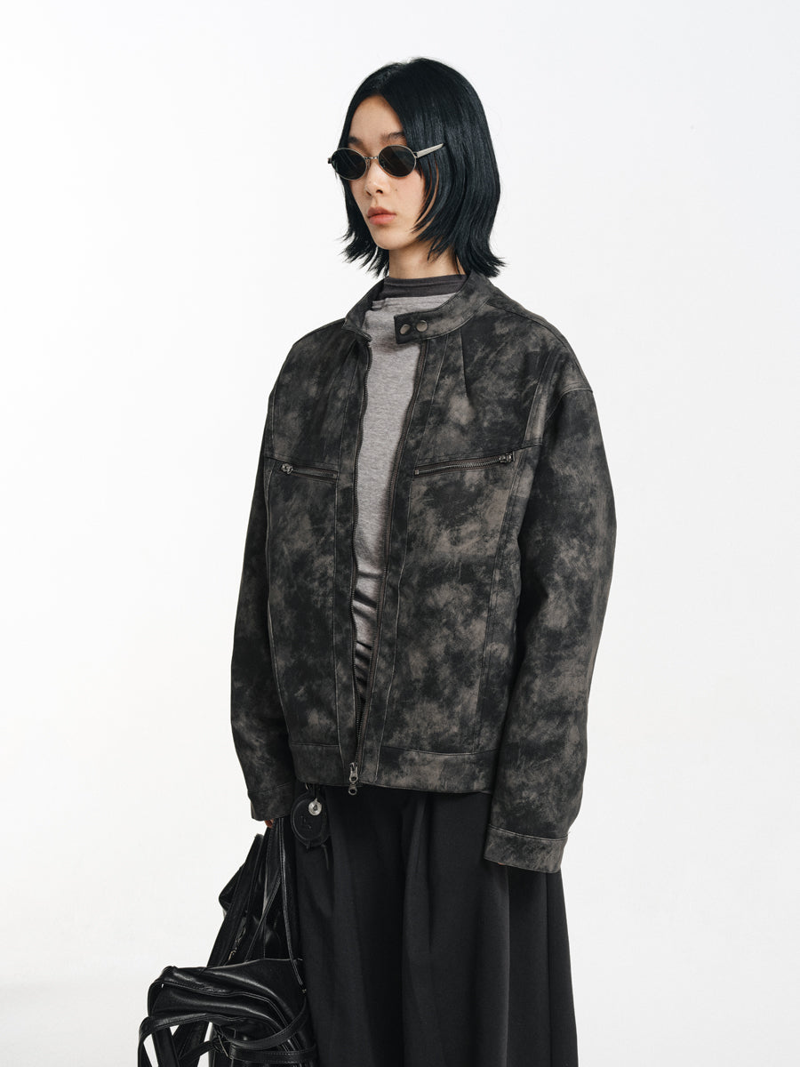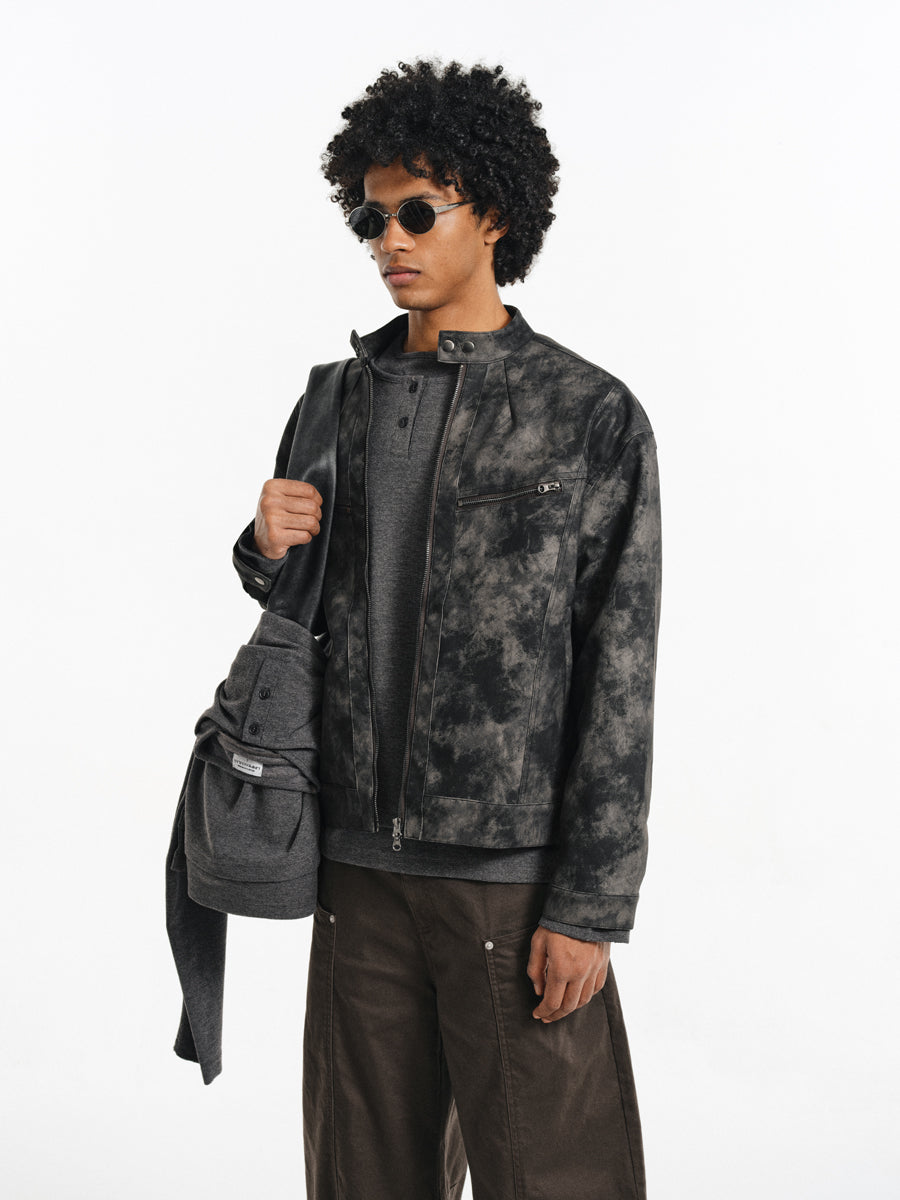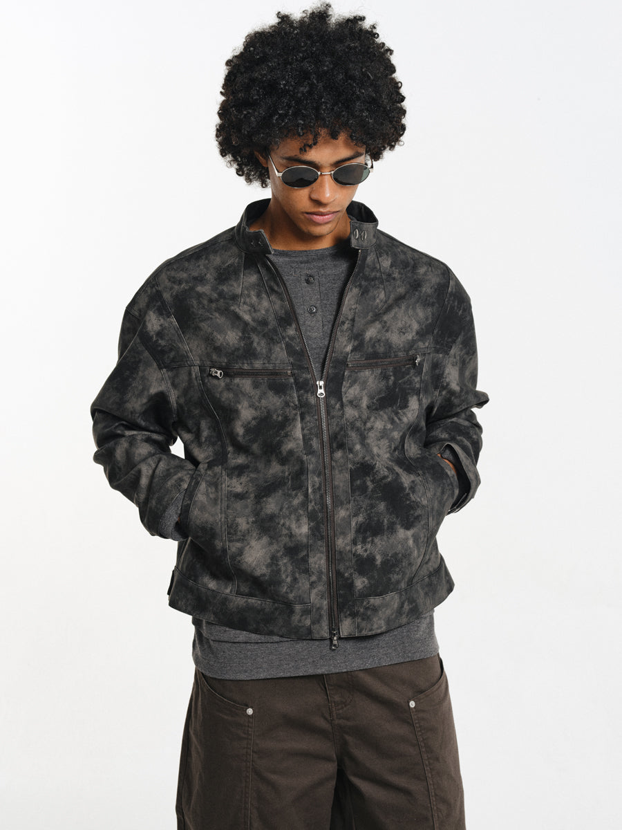 Speckled Dyed PU Leather Jacket