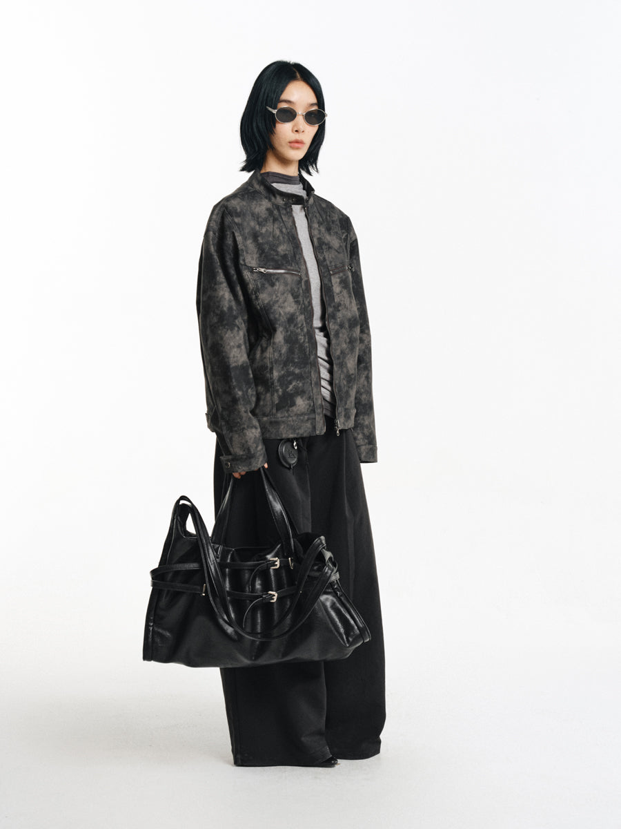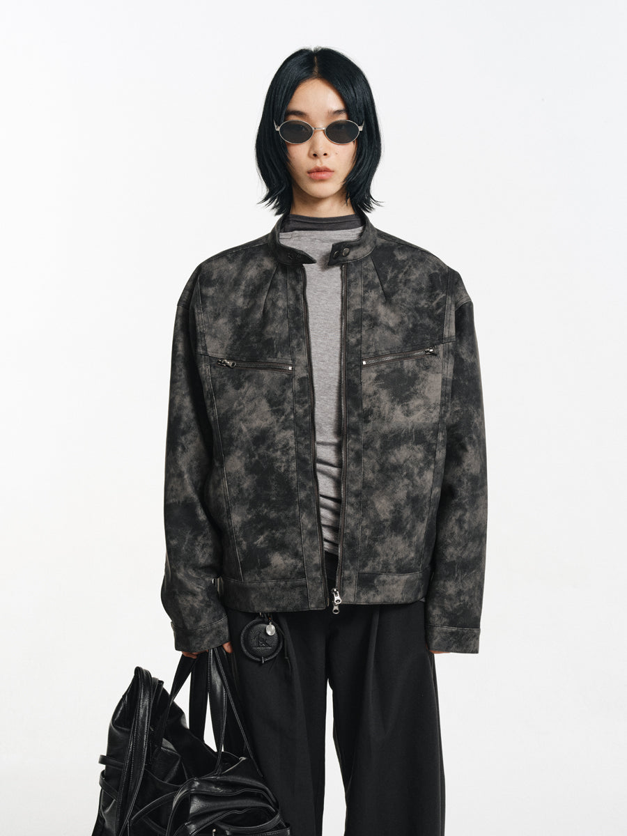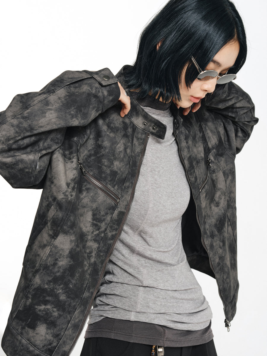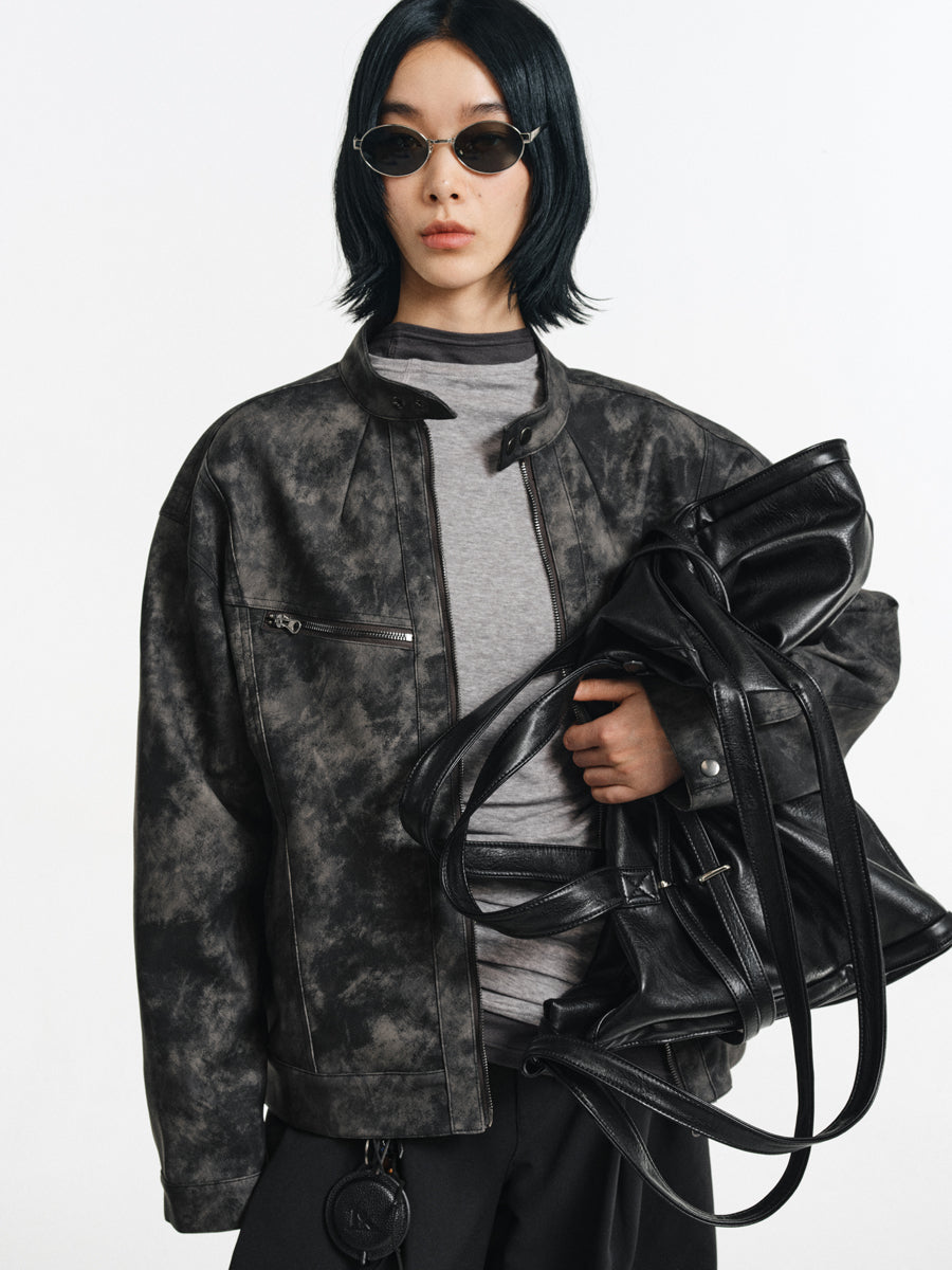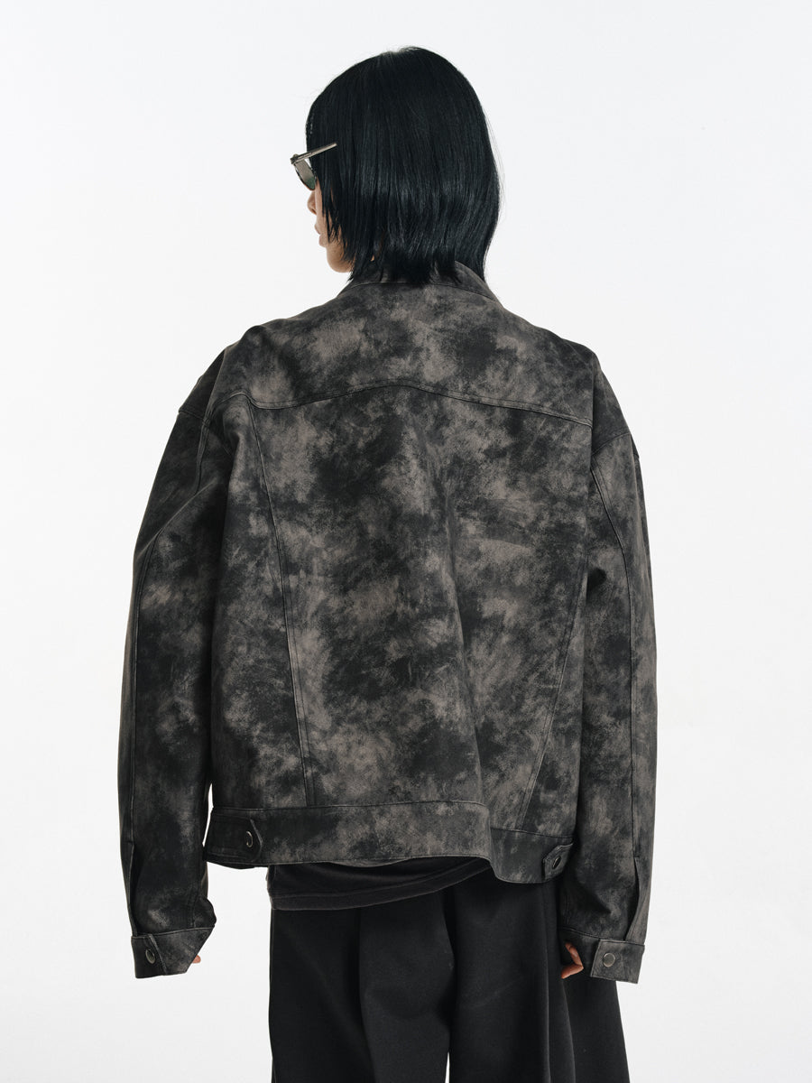 Speckled Dyed PU Leather Jacket