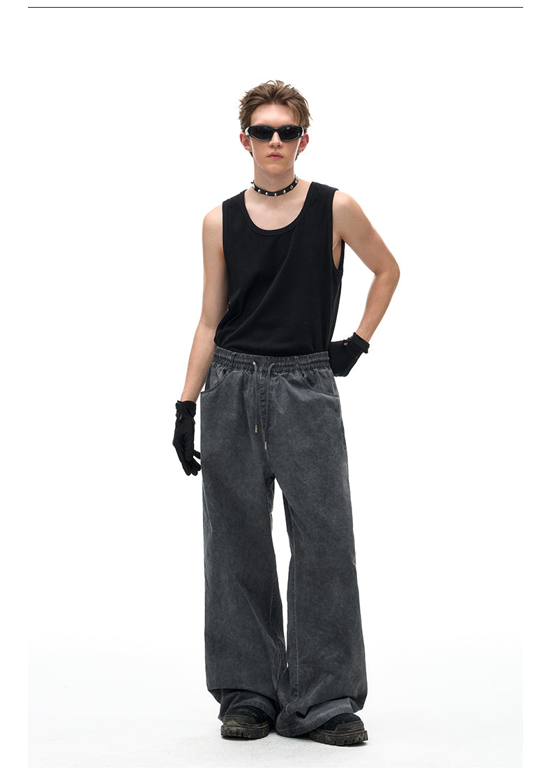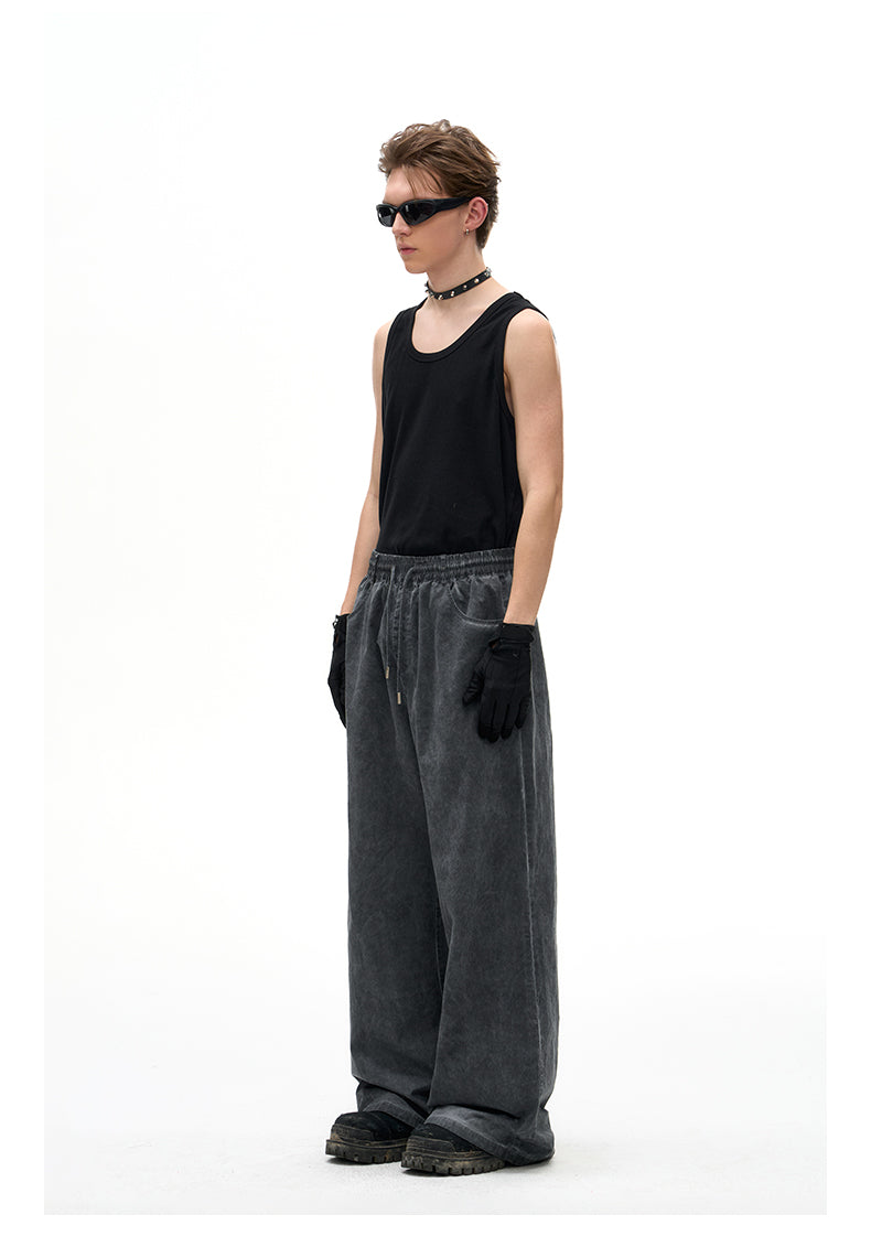 Stain dyed loose straight leg casual pants