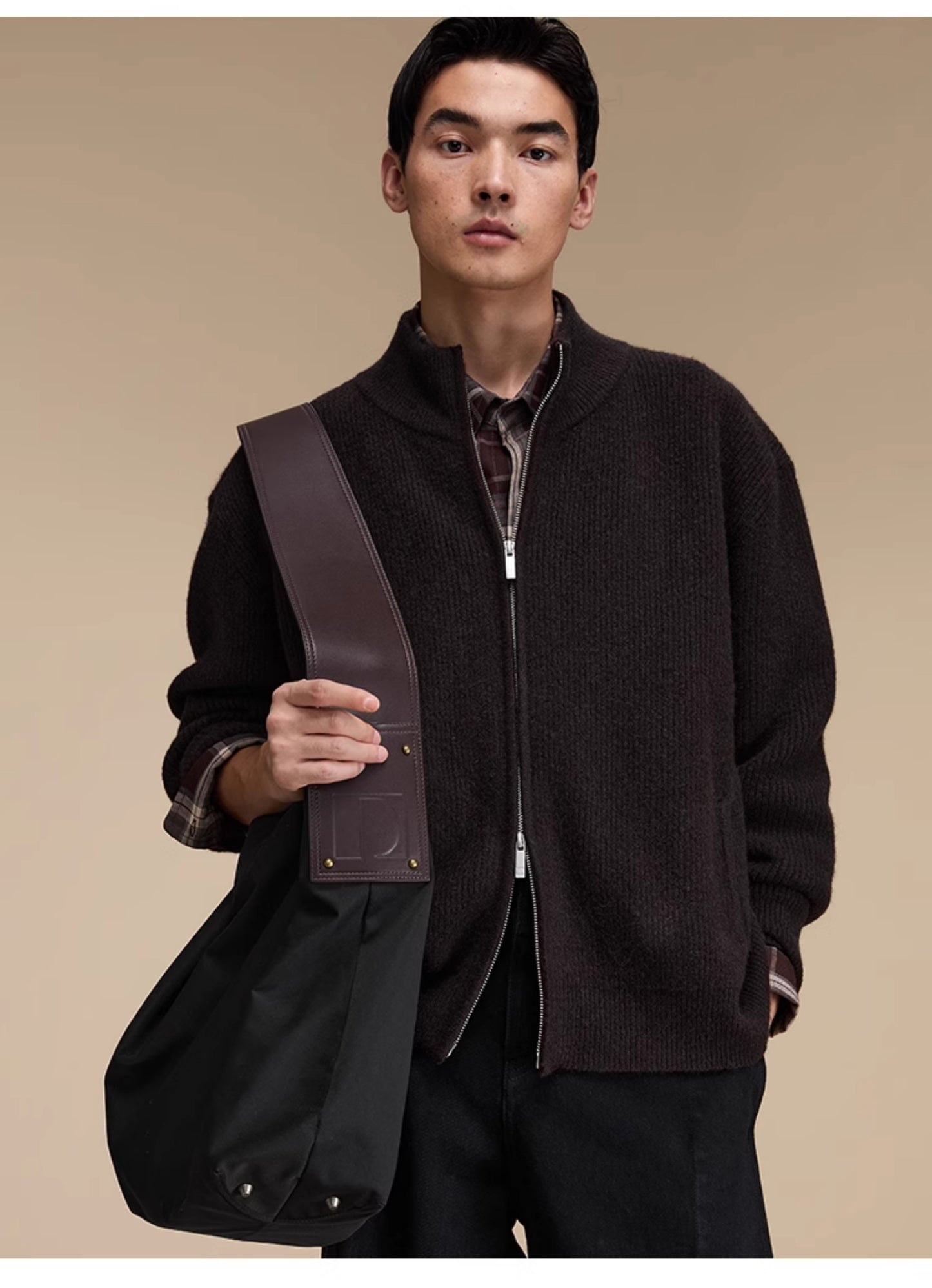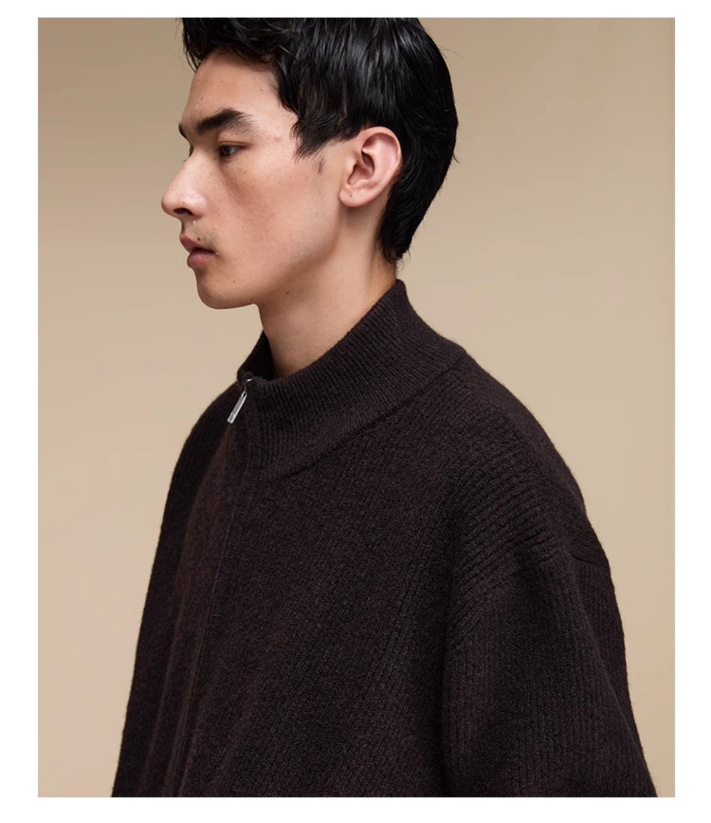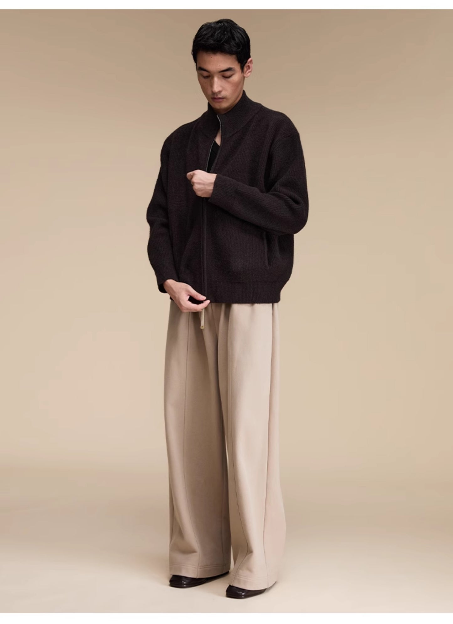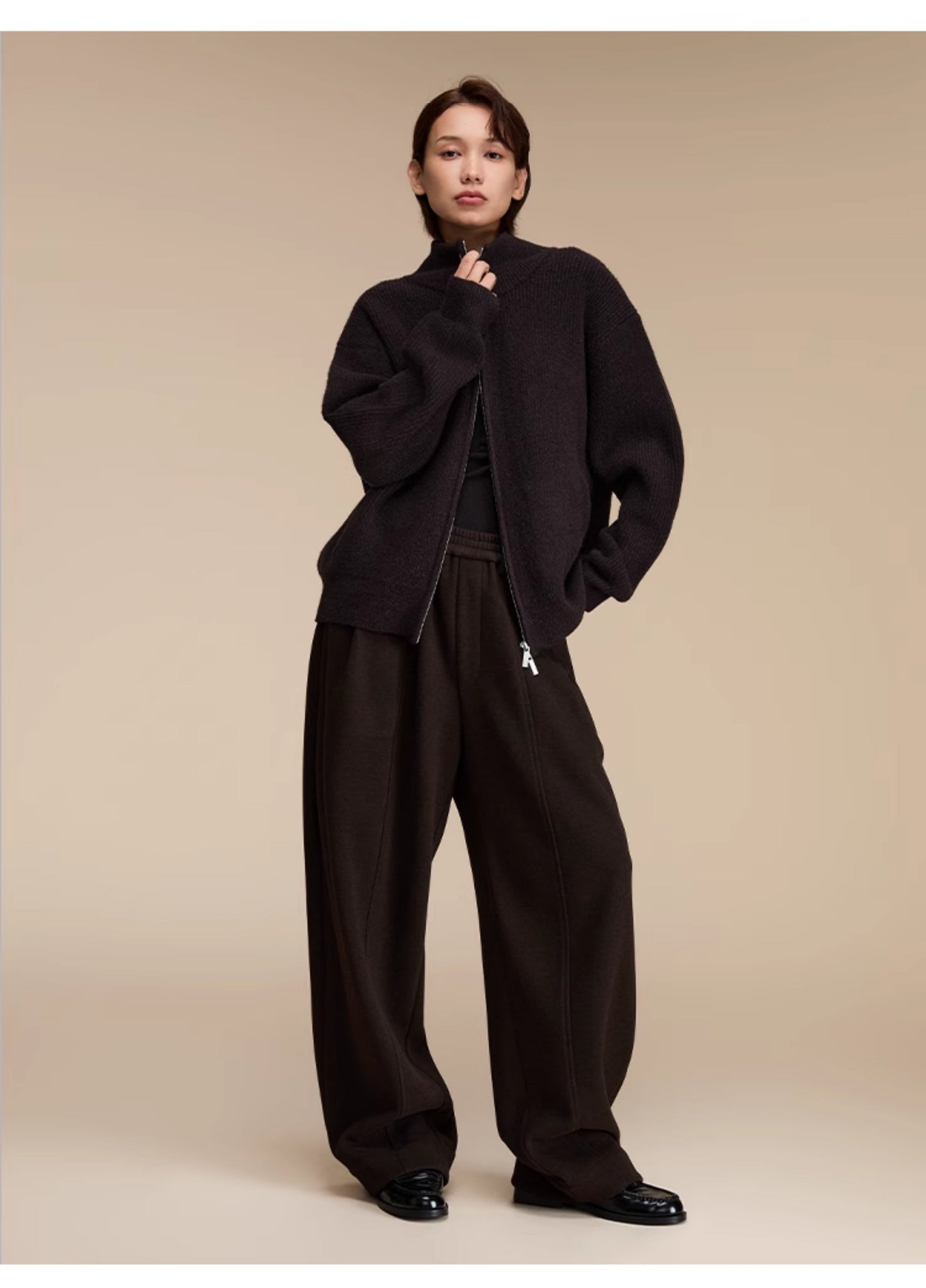 Stand collar double zipper cardigan