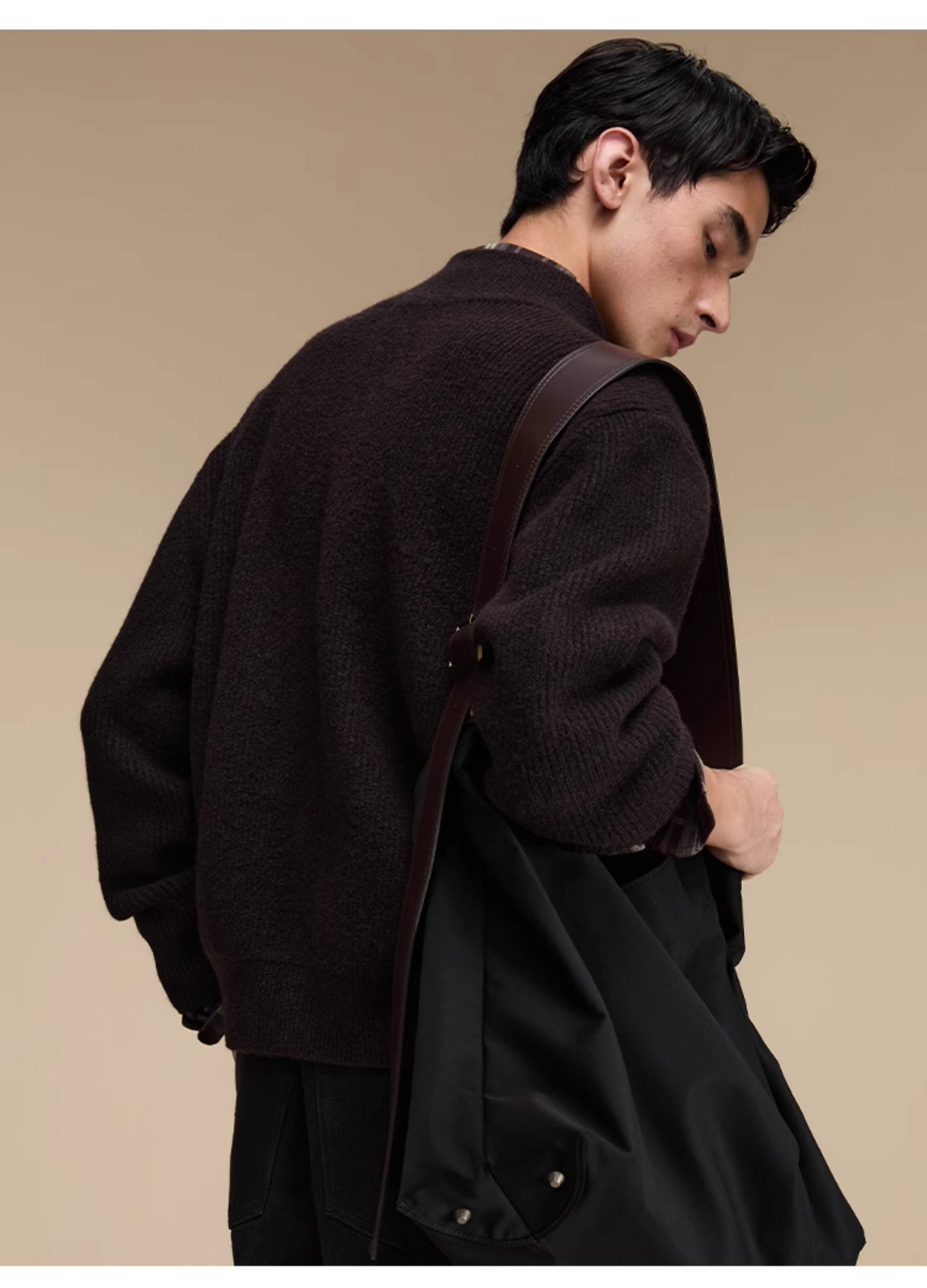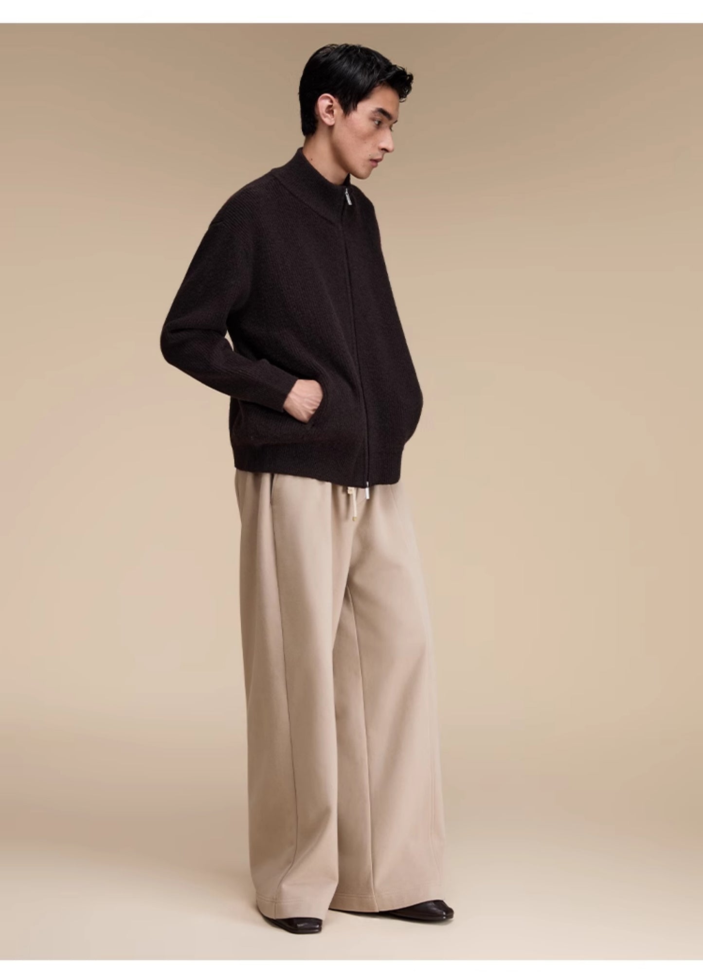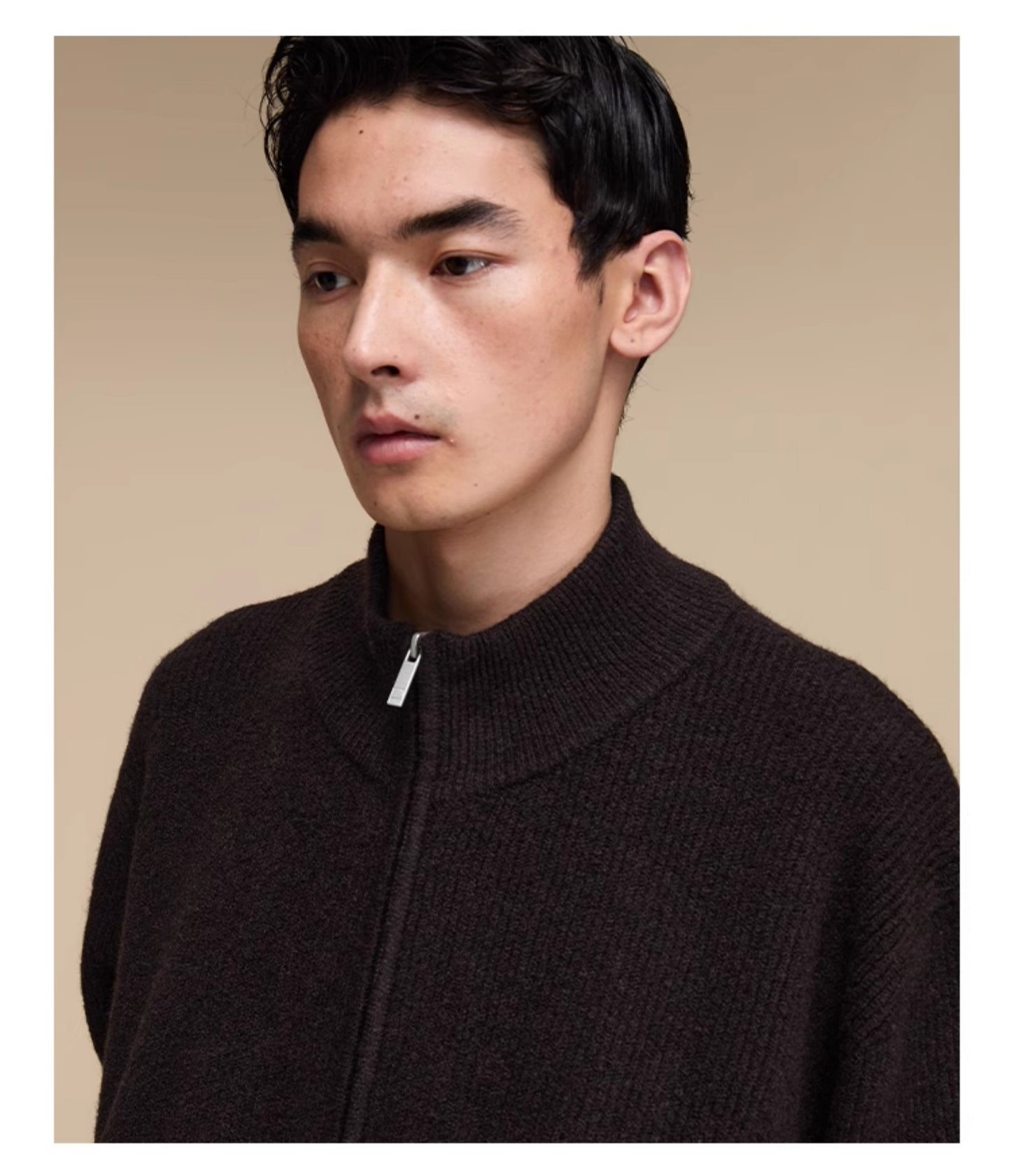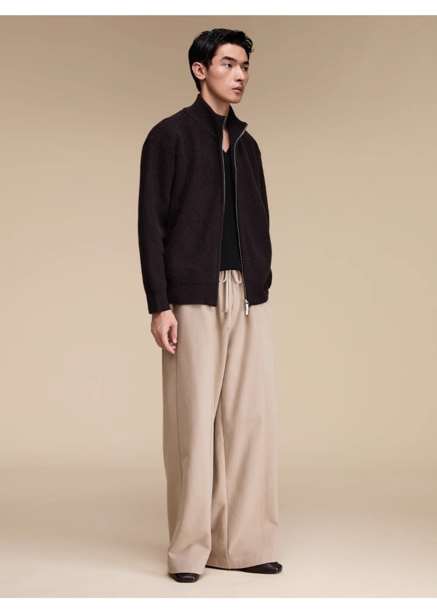 Stand collar double zipper cardigan