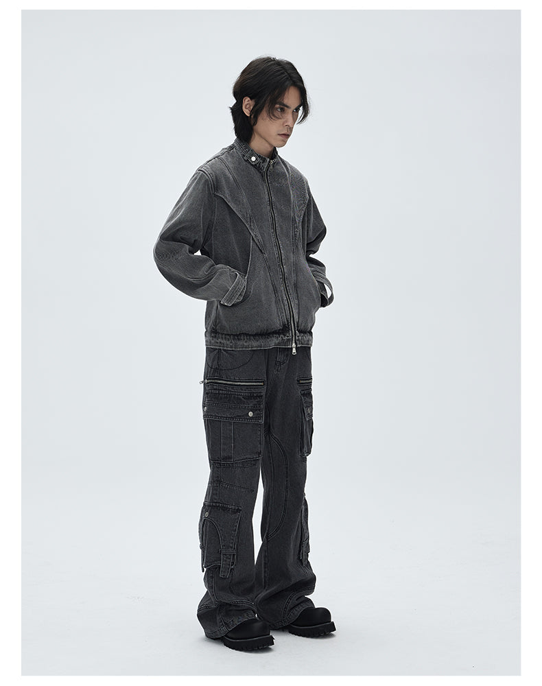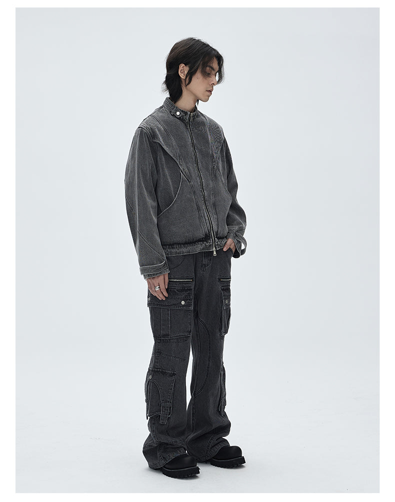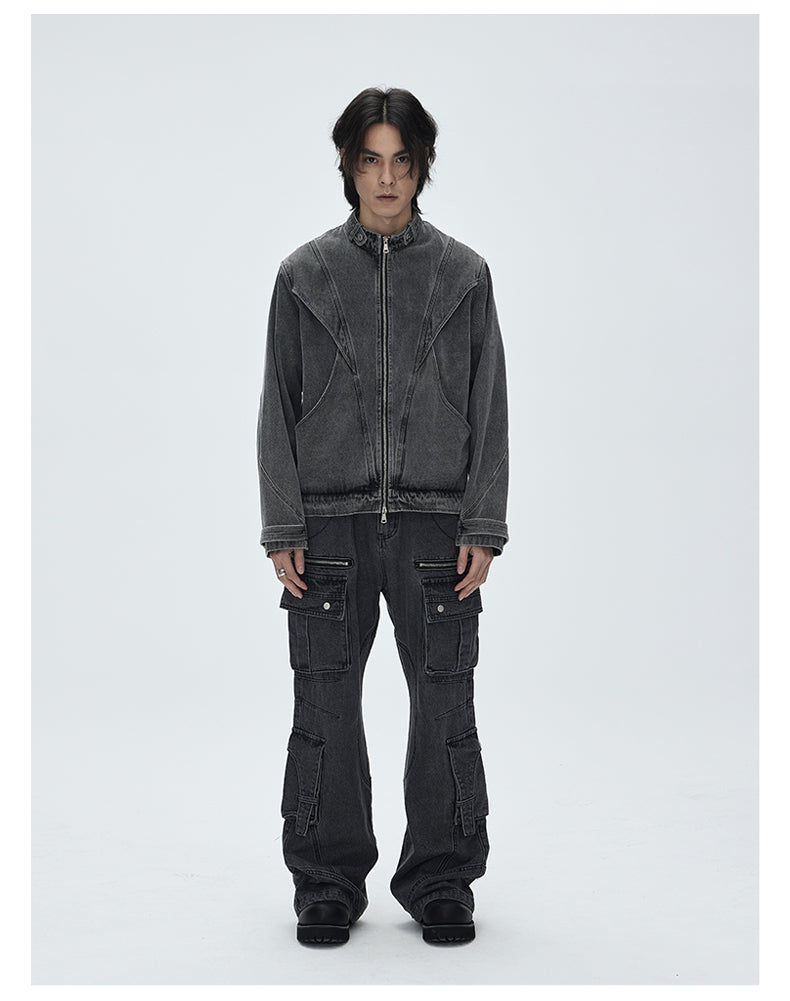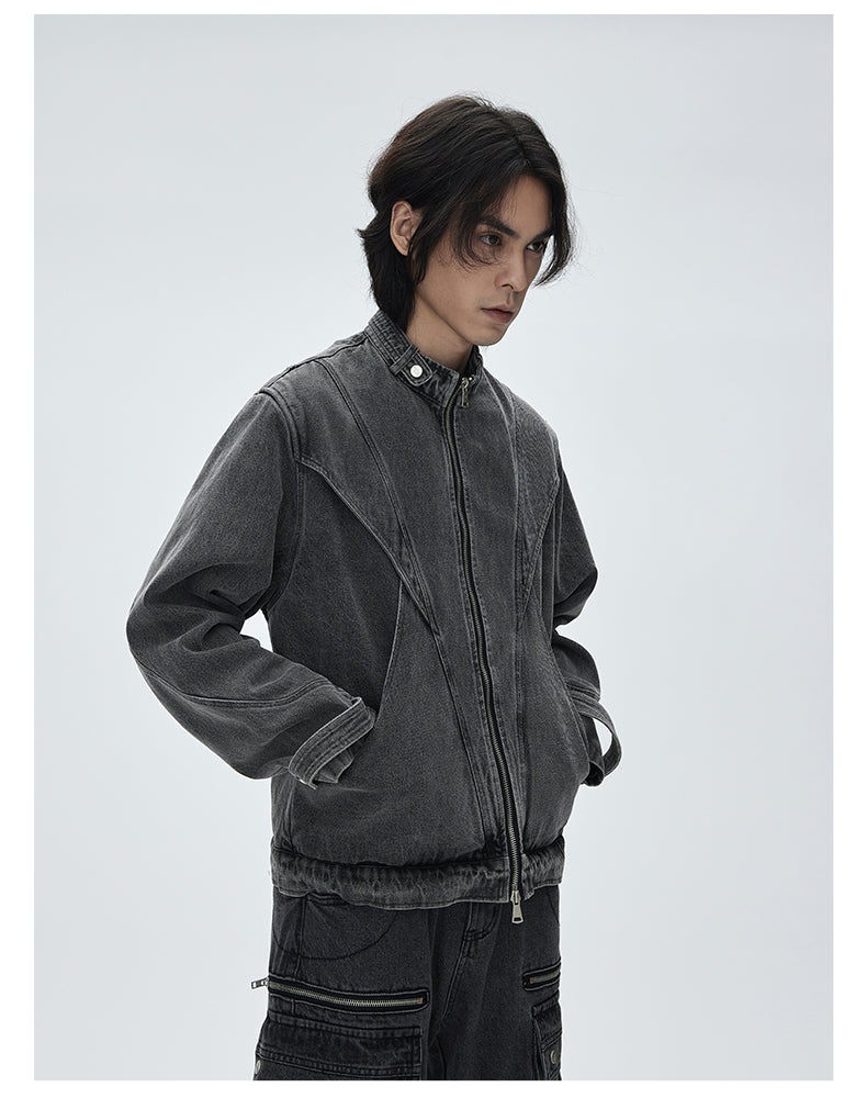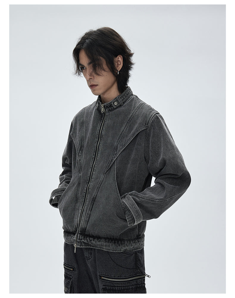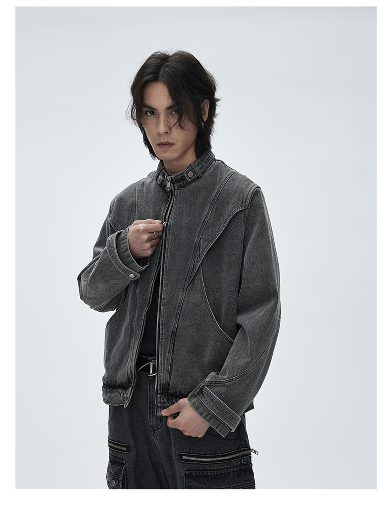 Stand collar retro denim jacket