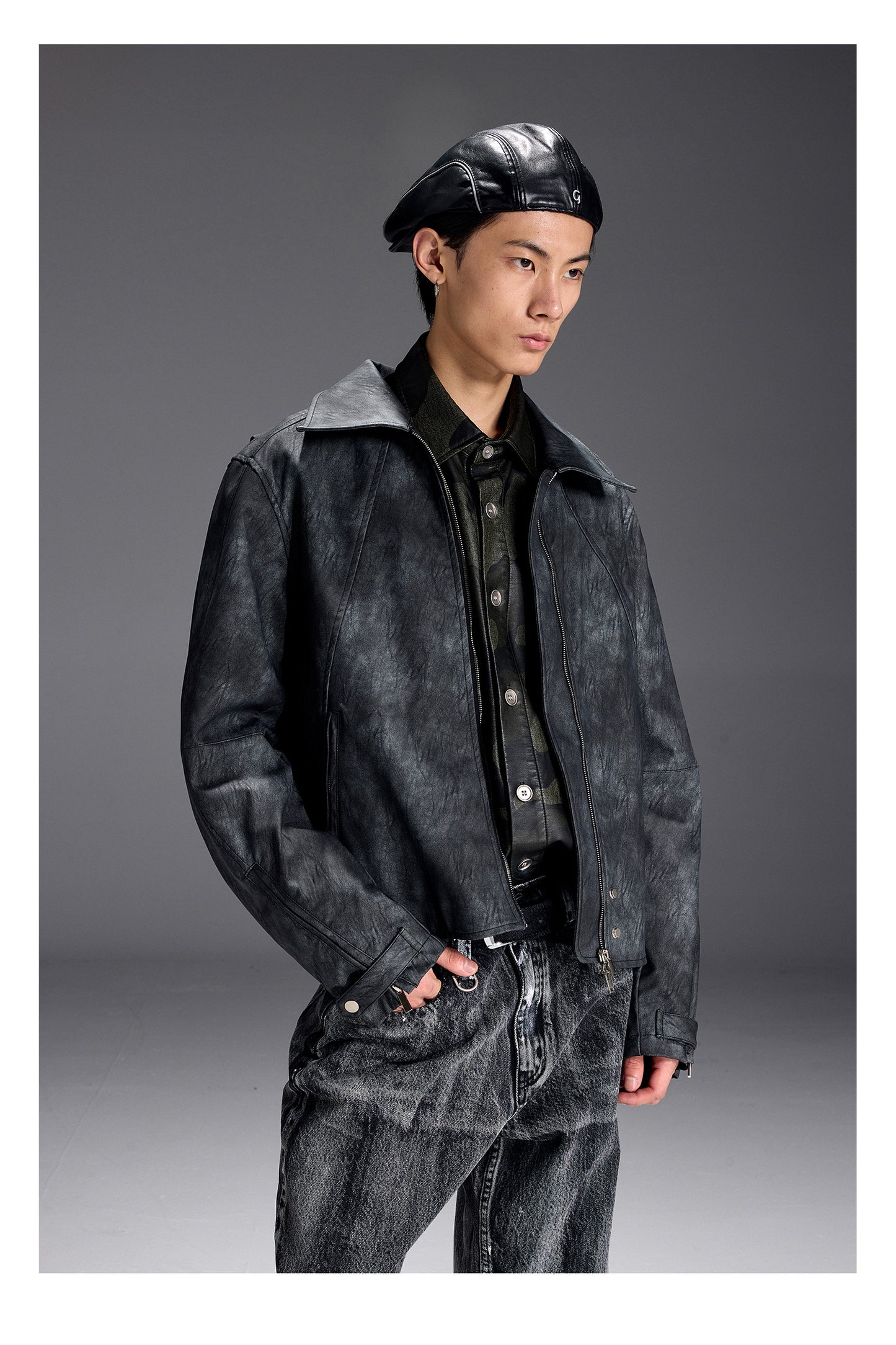 Structured textured leather jacket
