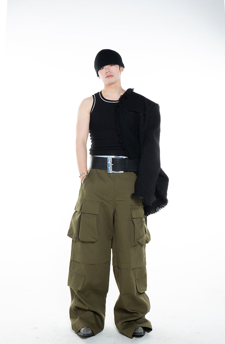 Three-dimensional pocket washed cargo pants