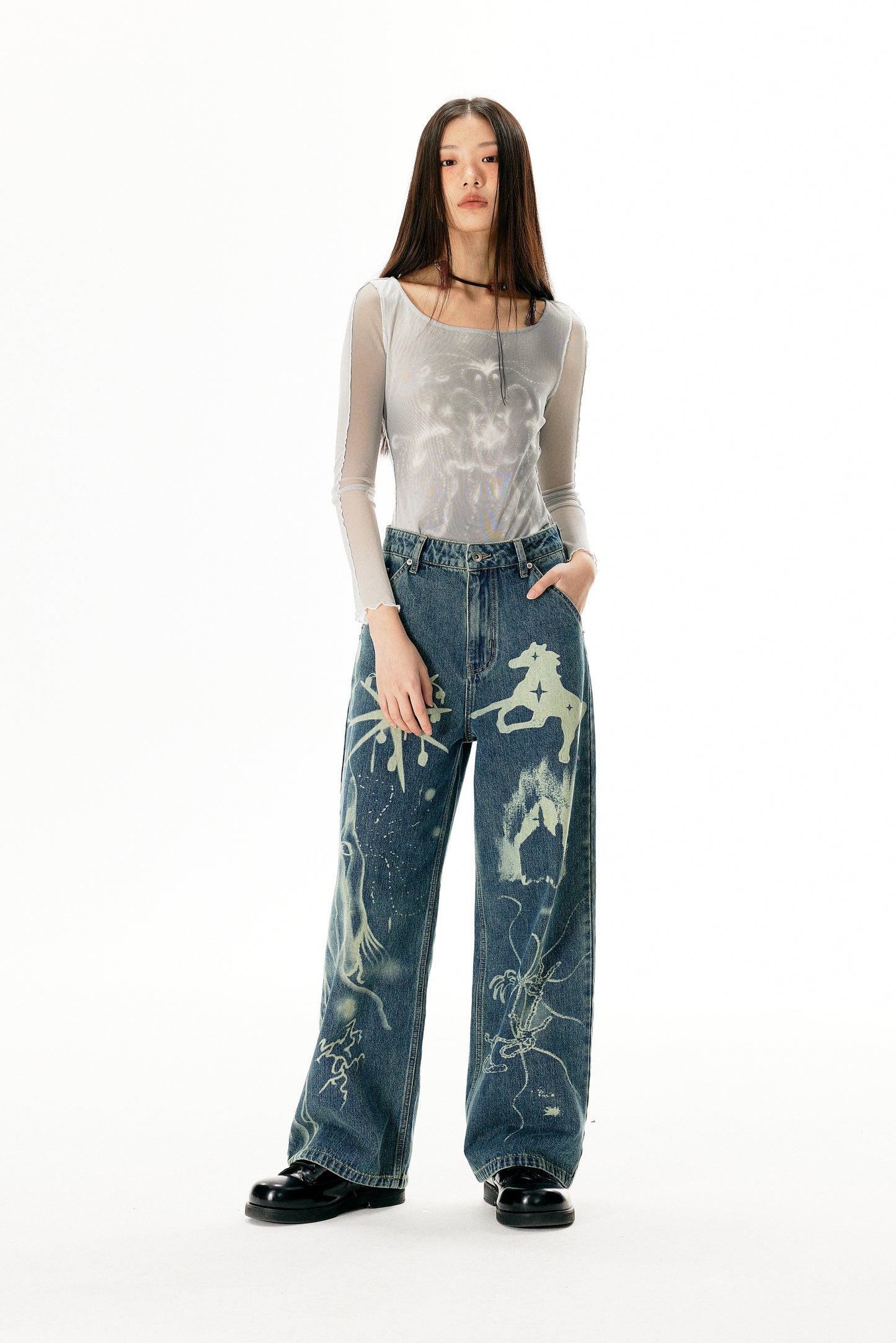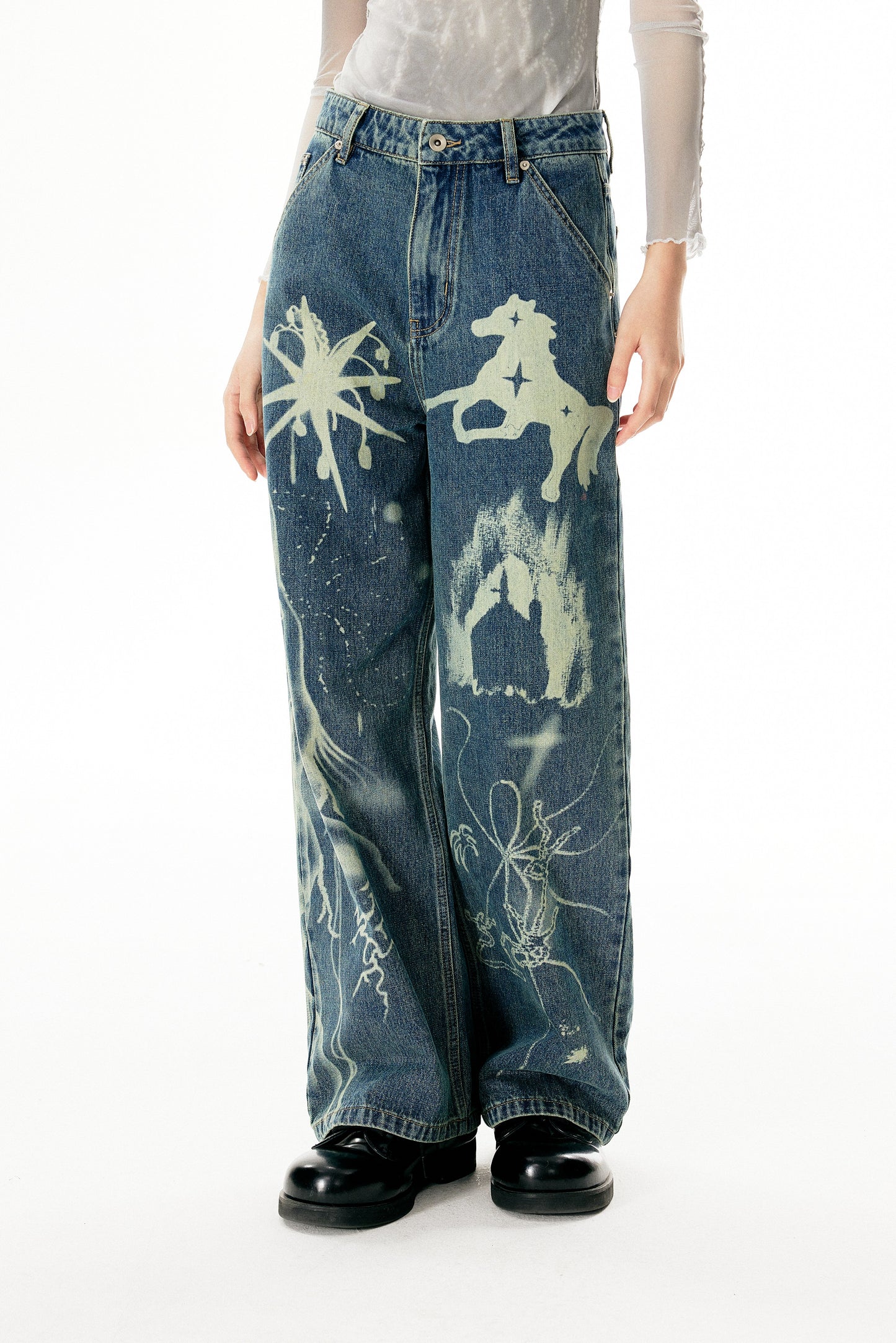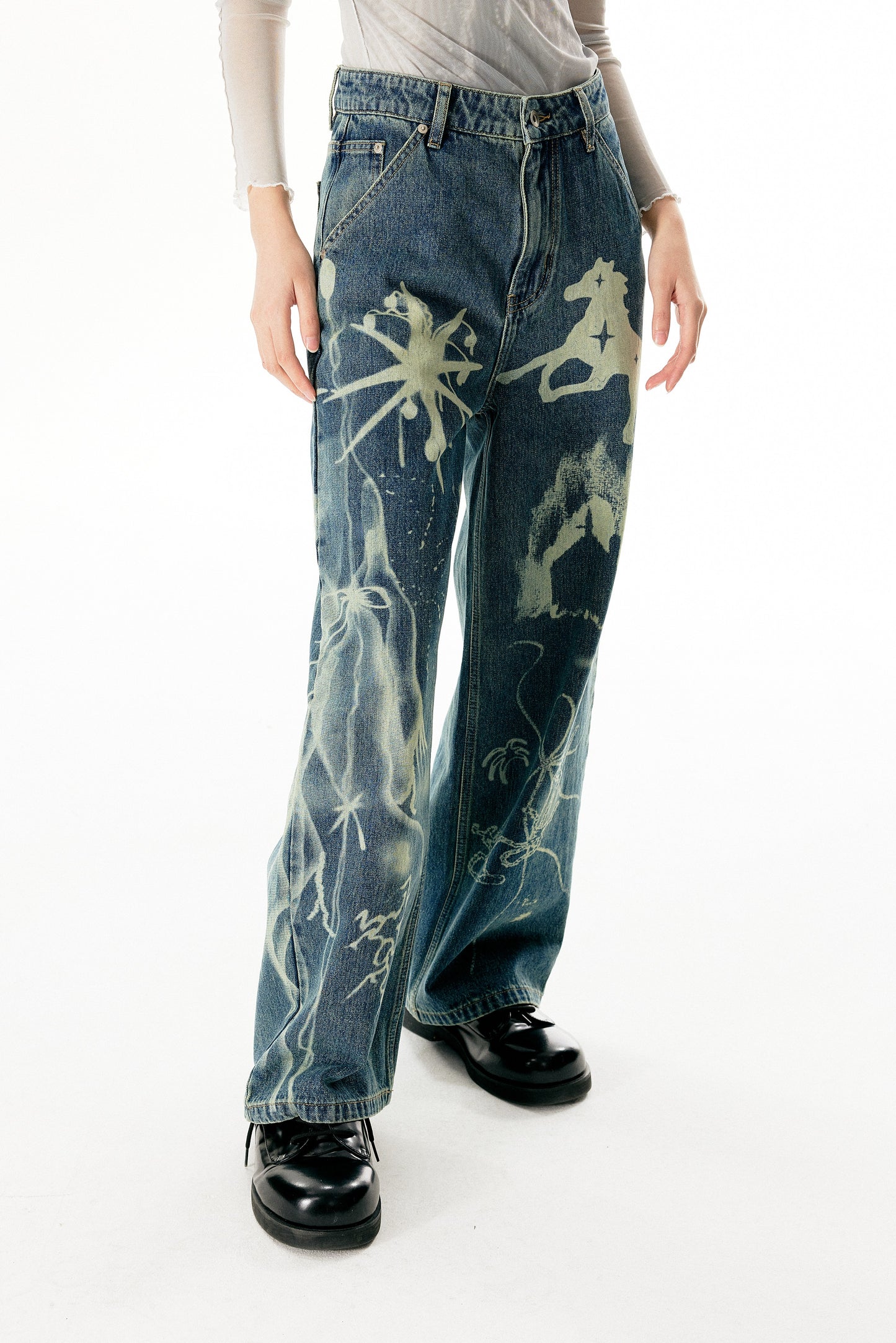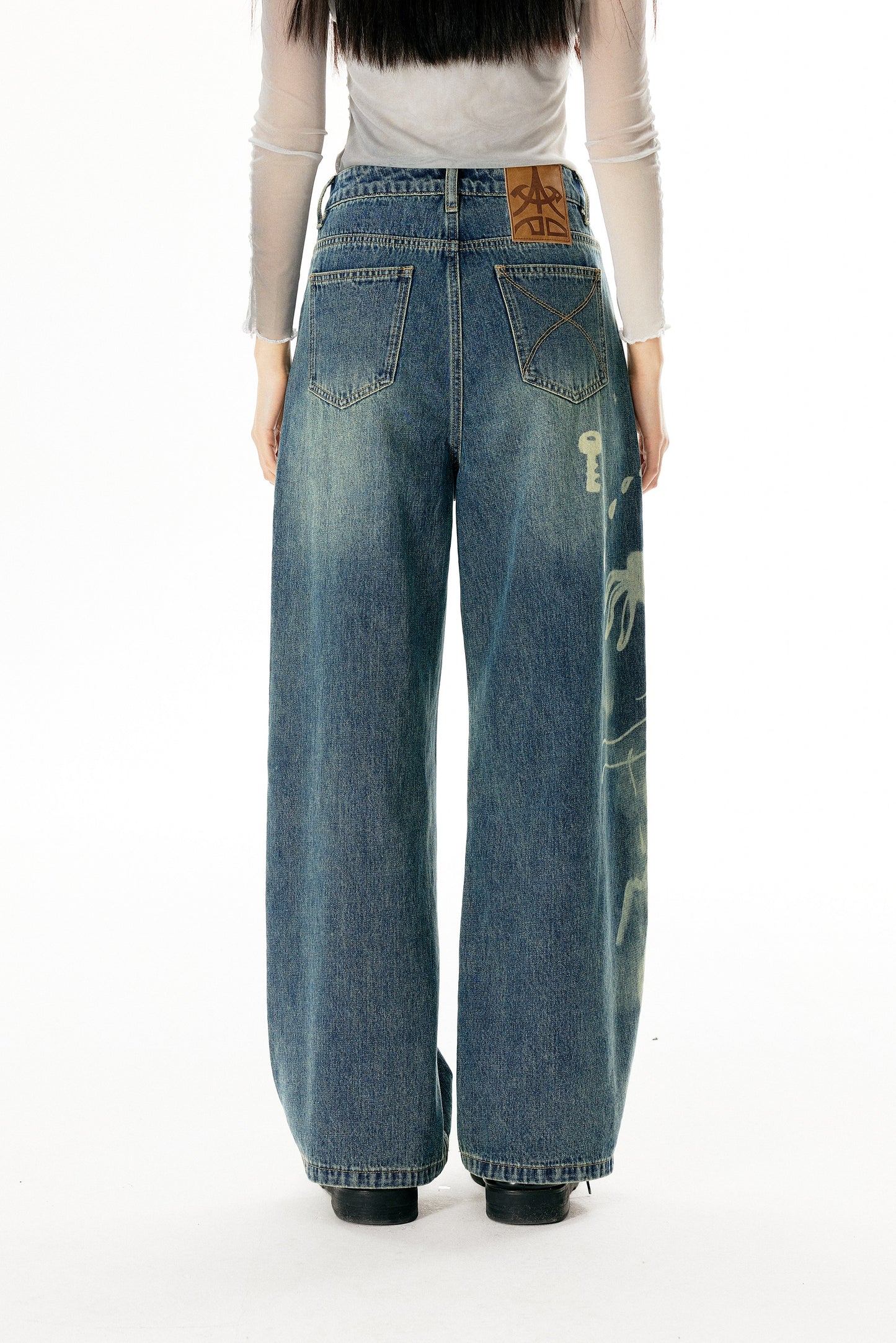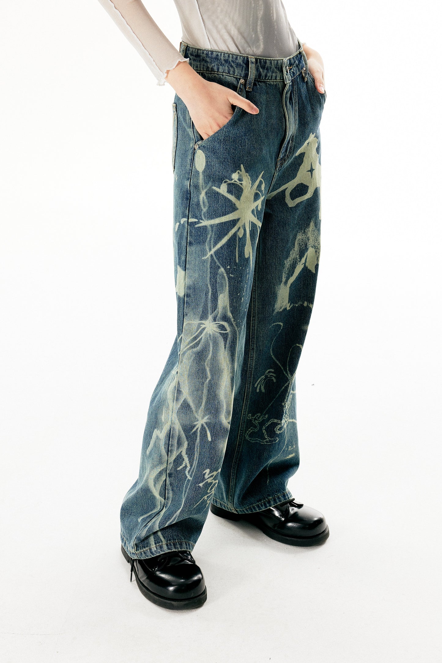 Washed Damaged Loose Straight Jeans
