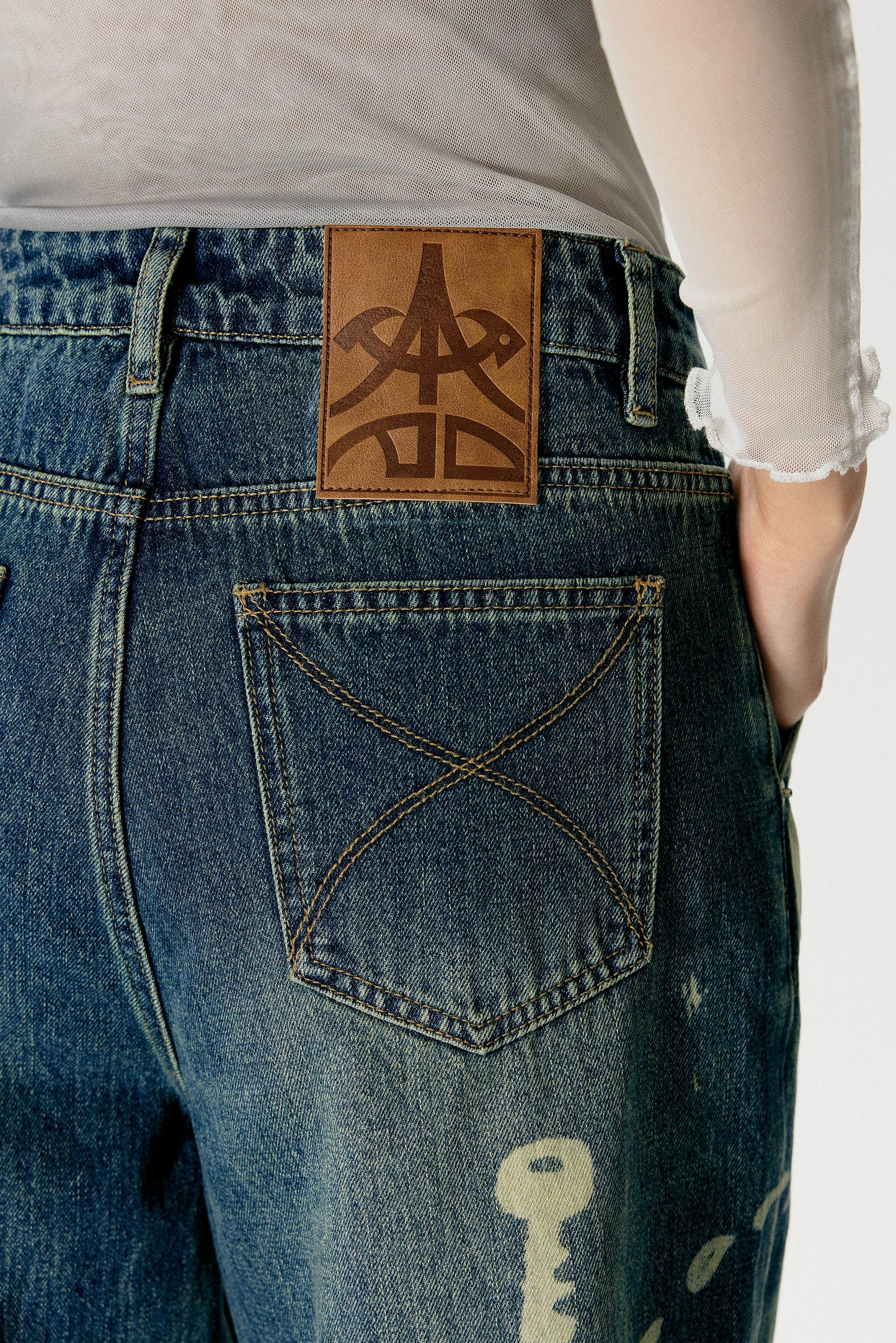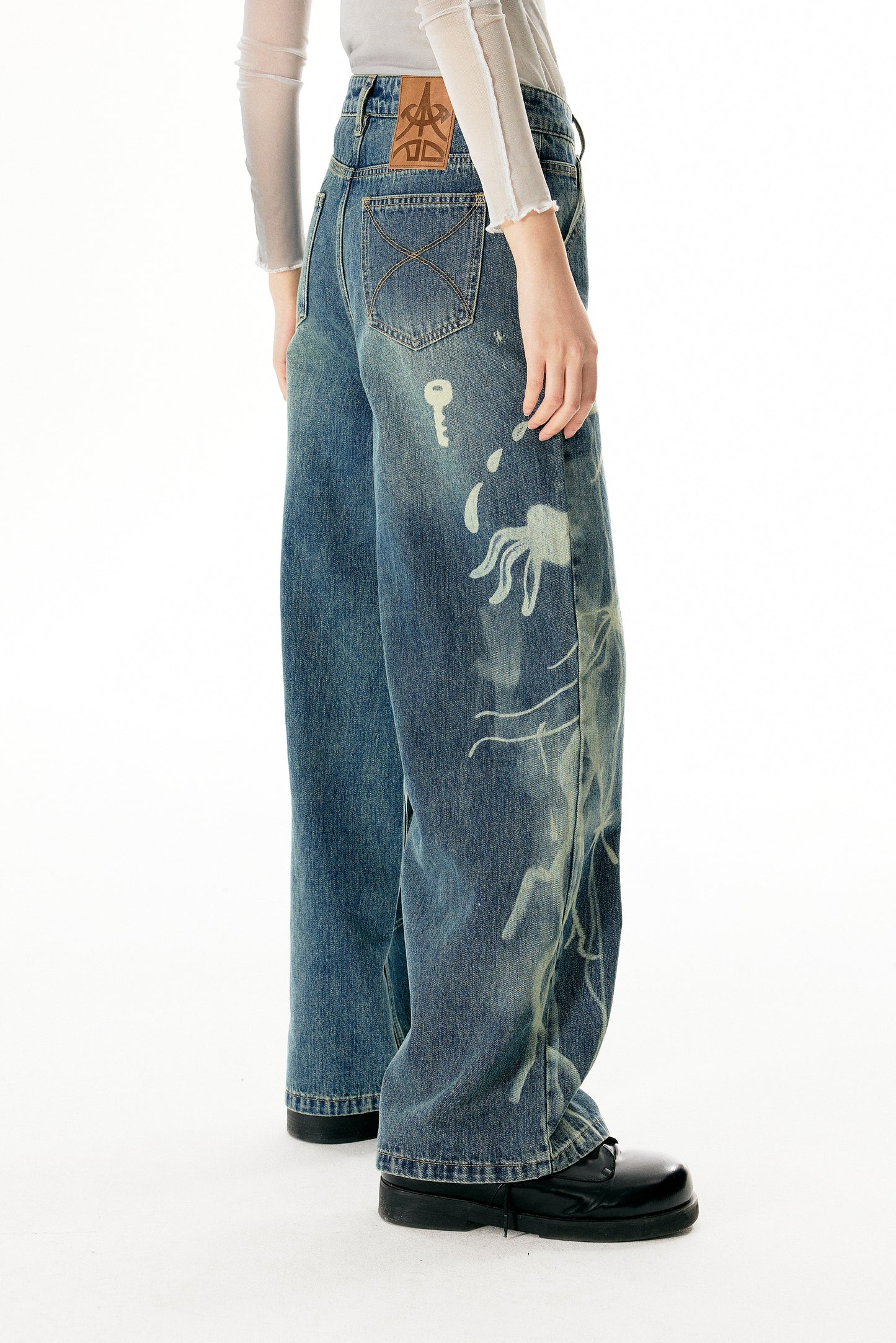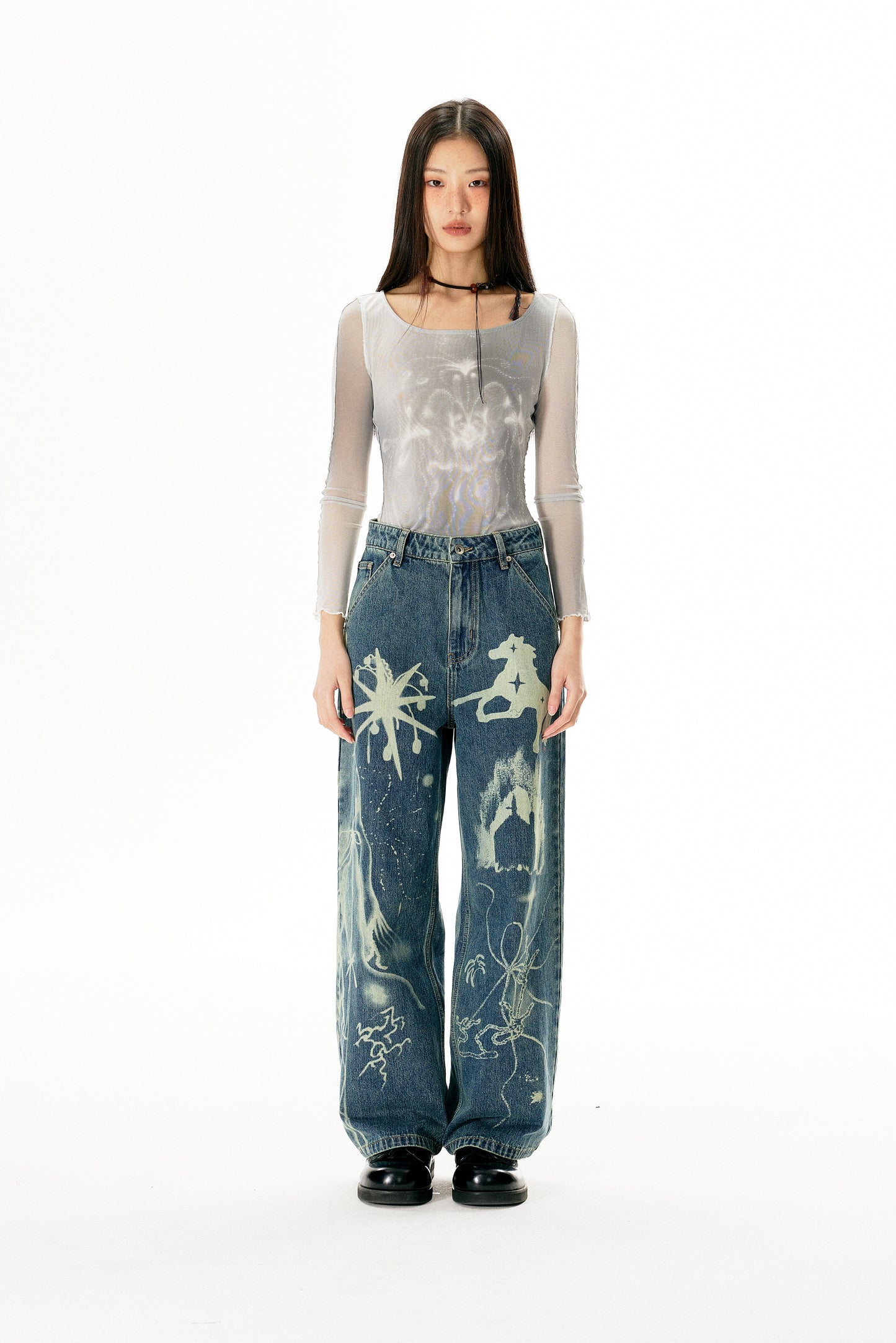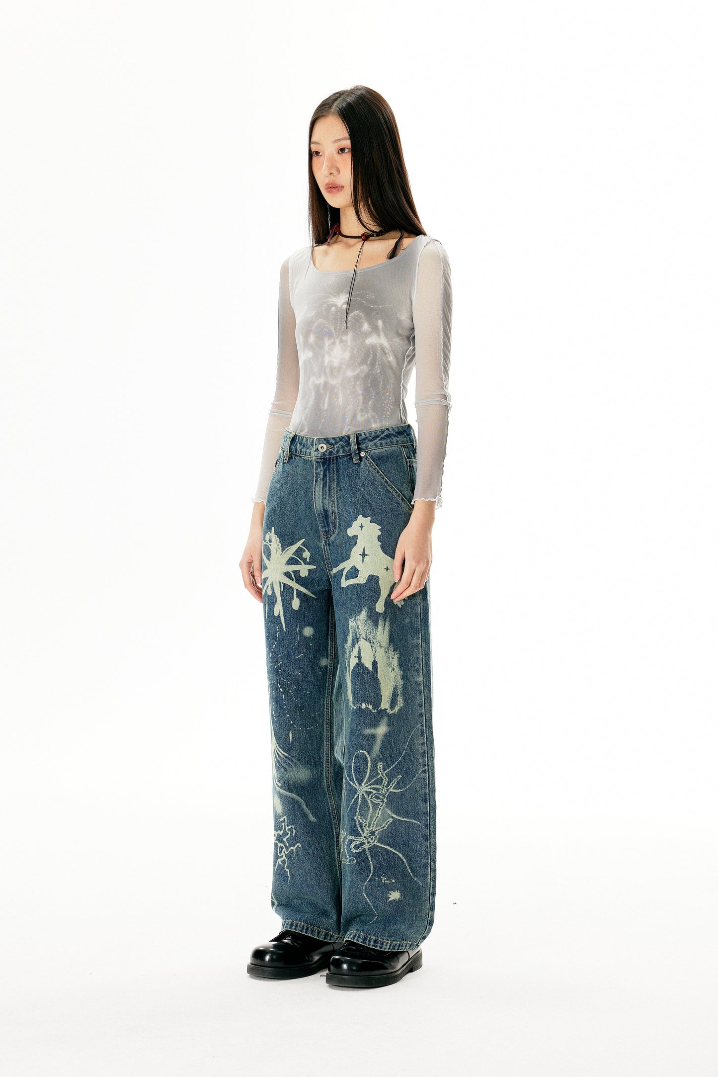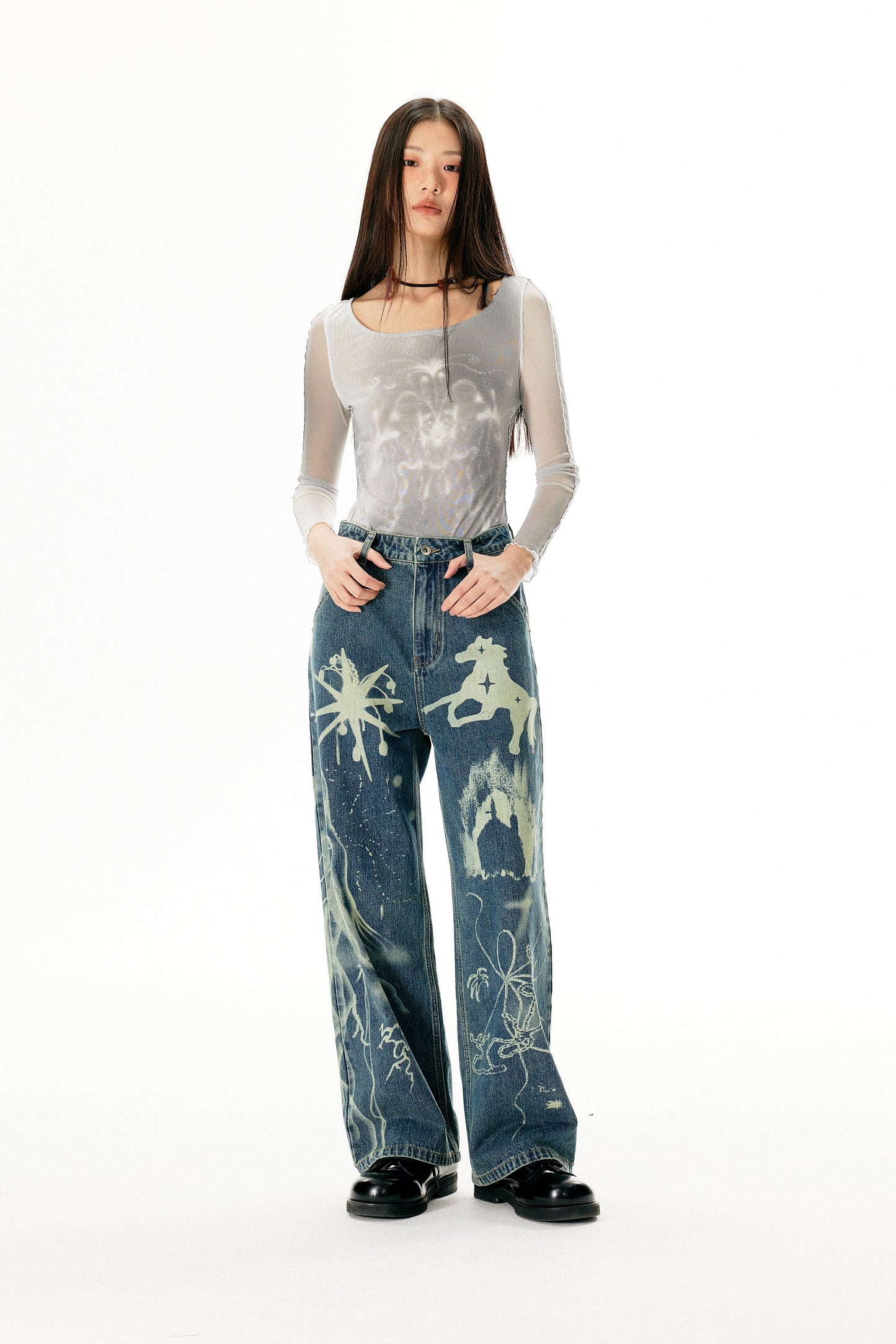 Washed Damaged Loose Straight Jeans