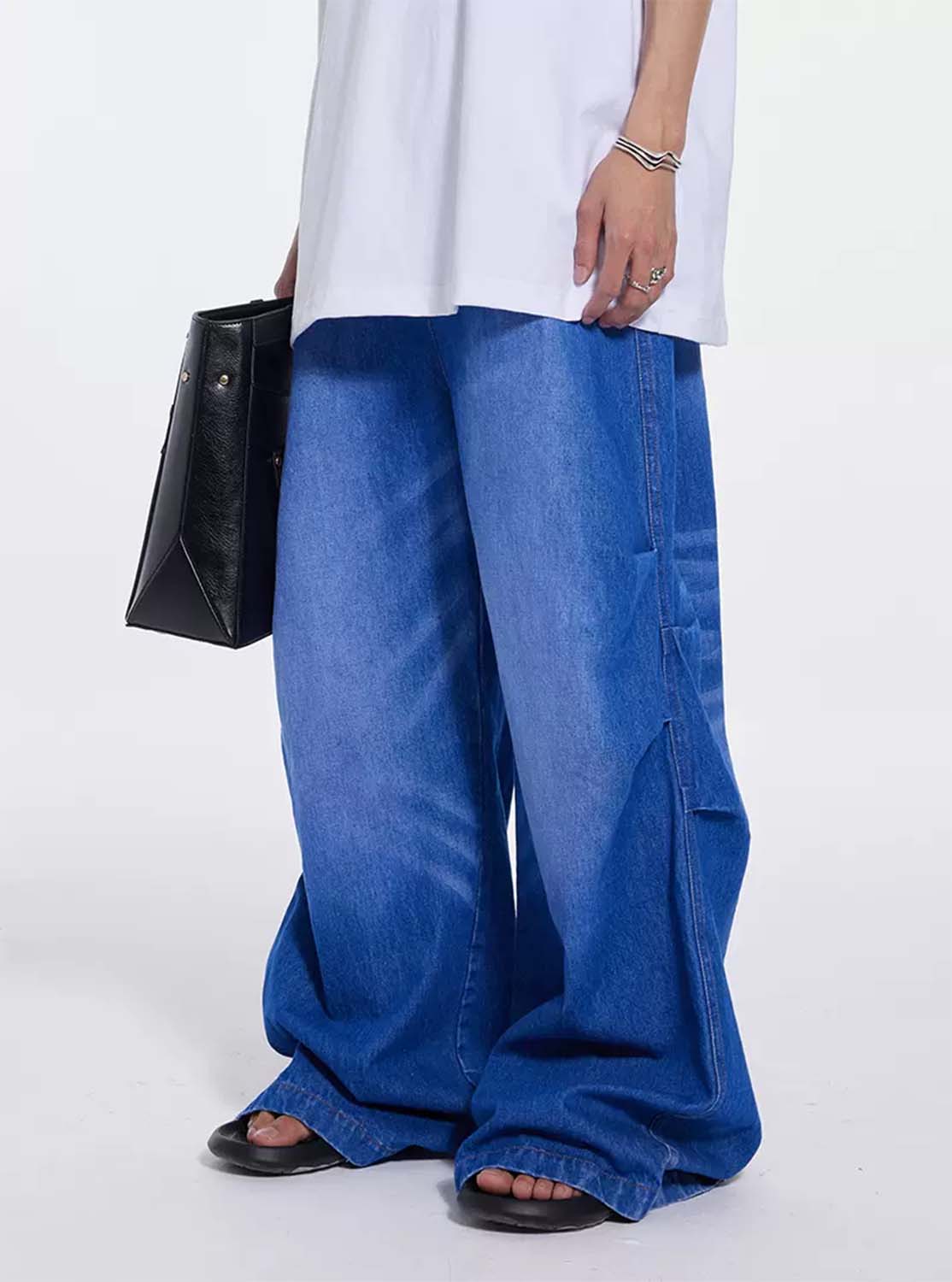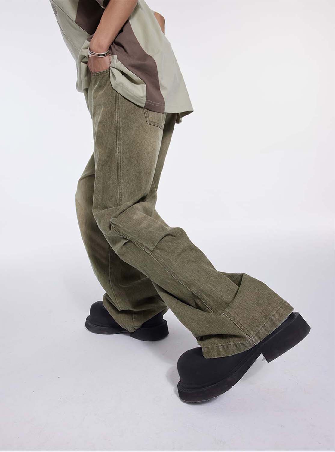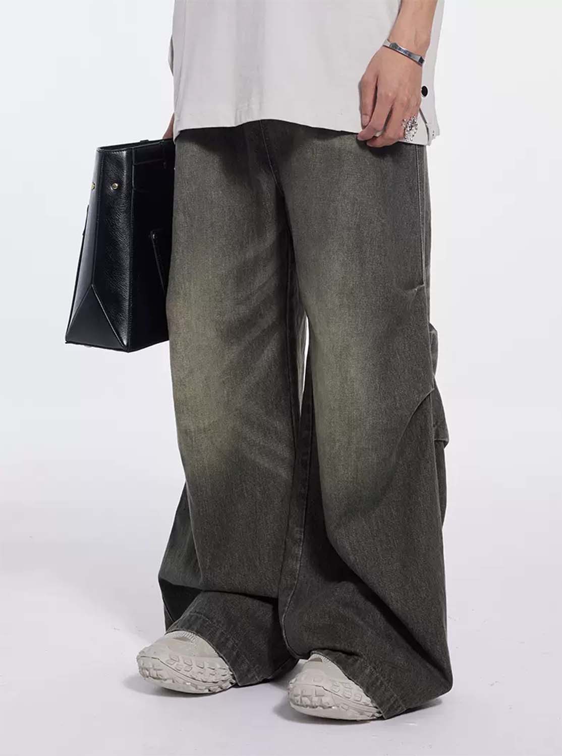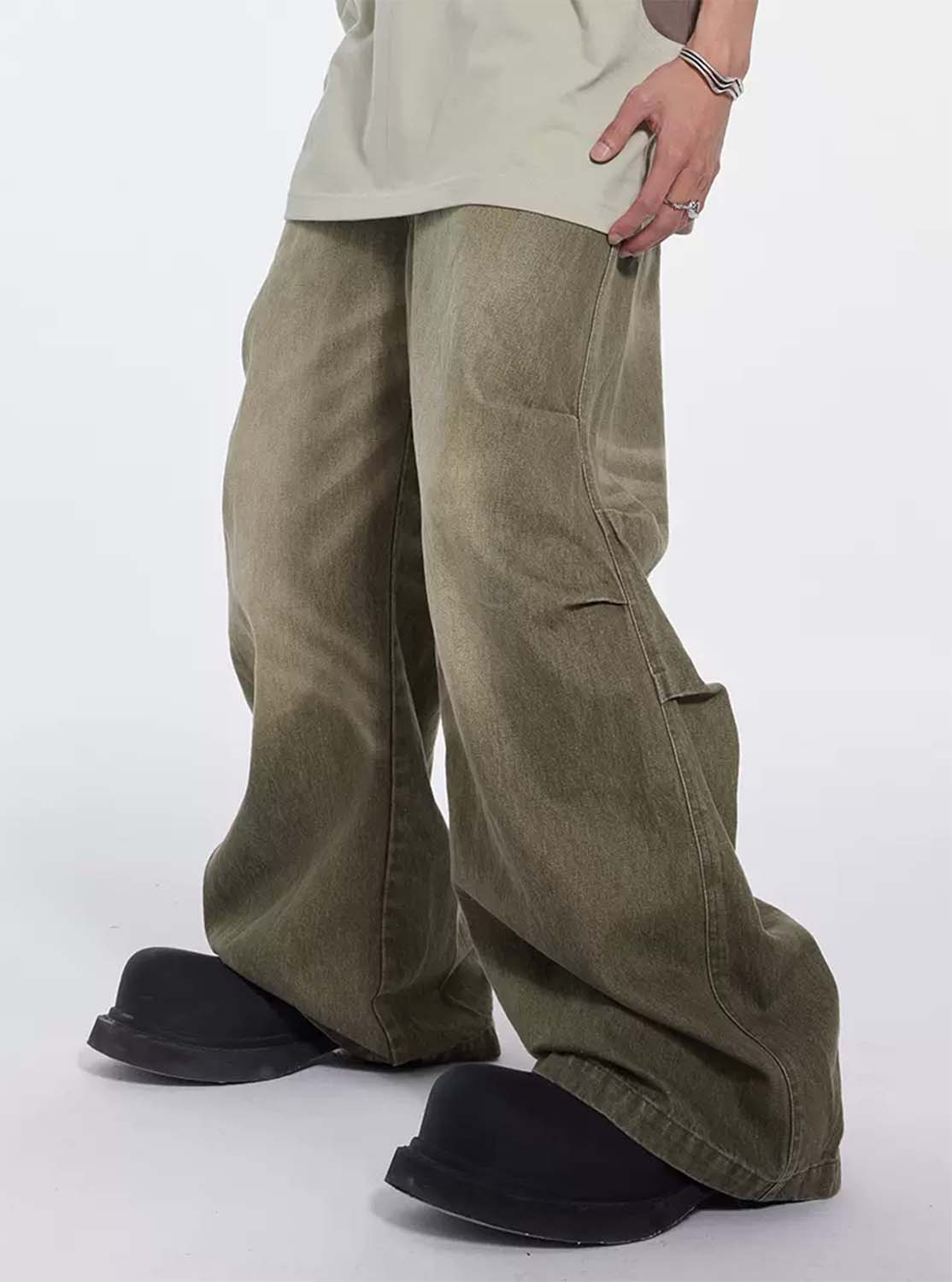 Washed Pleated Draped Denim Pants