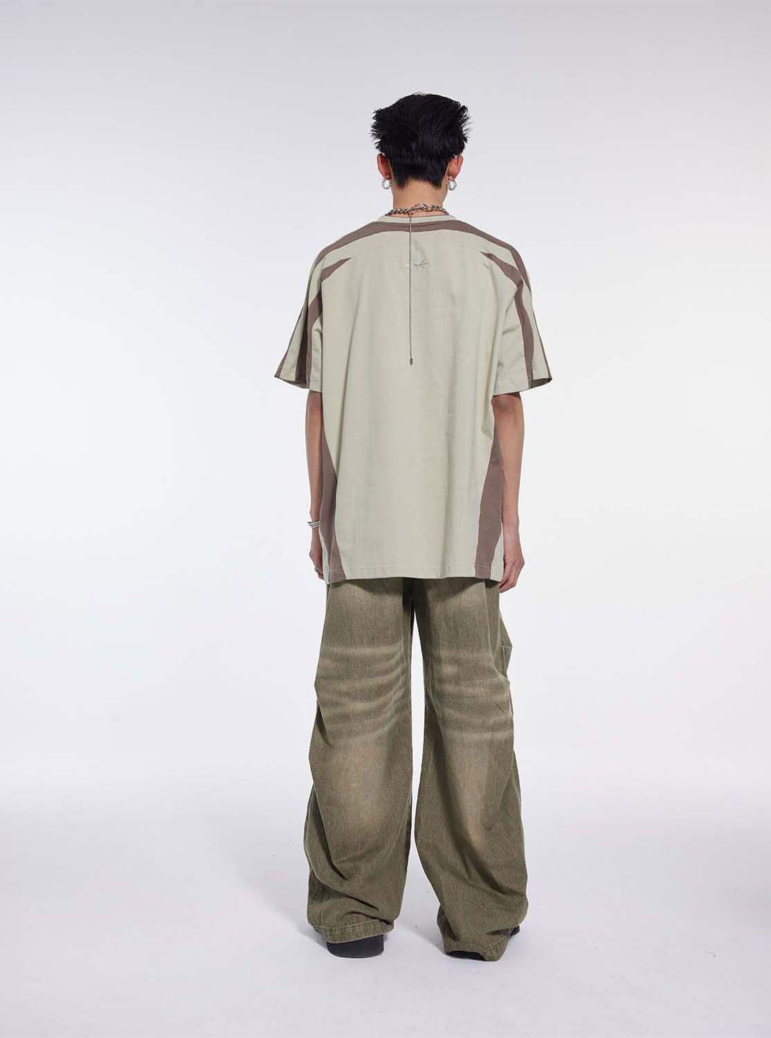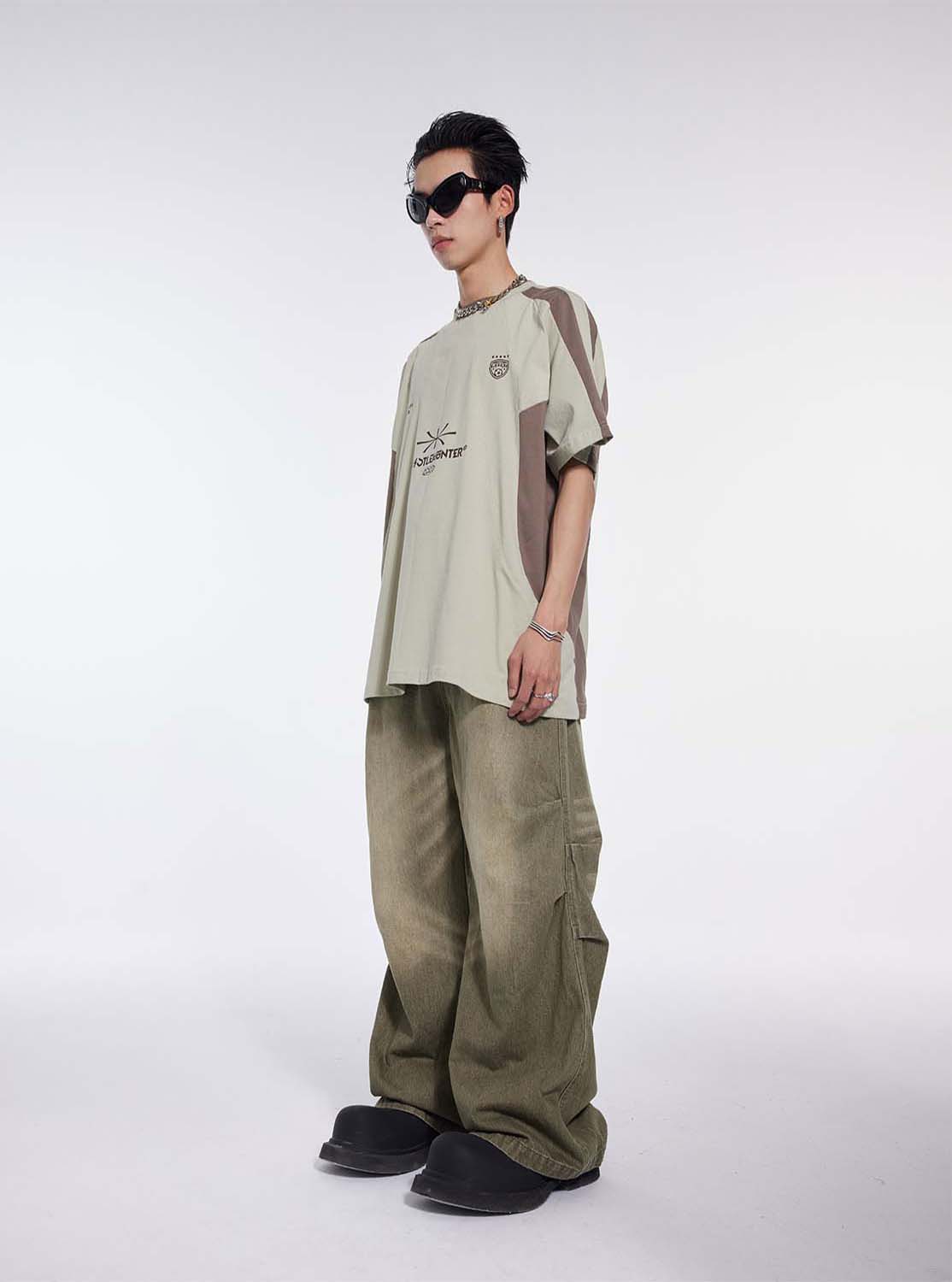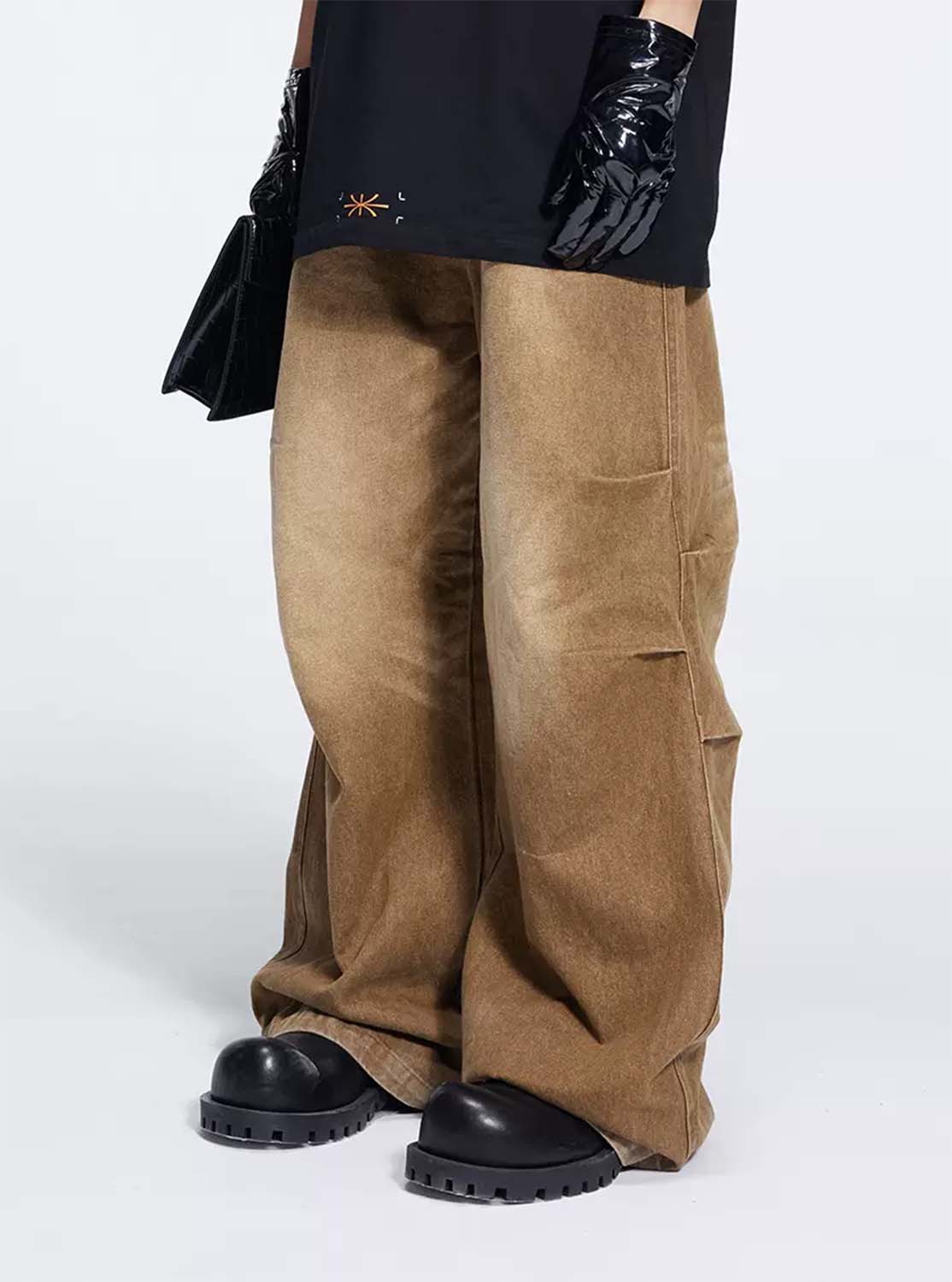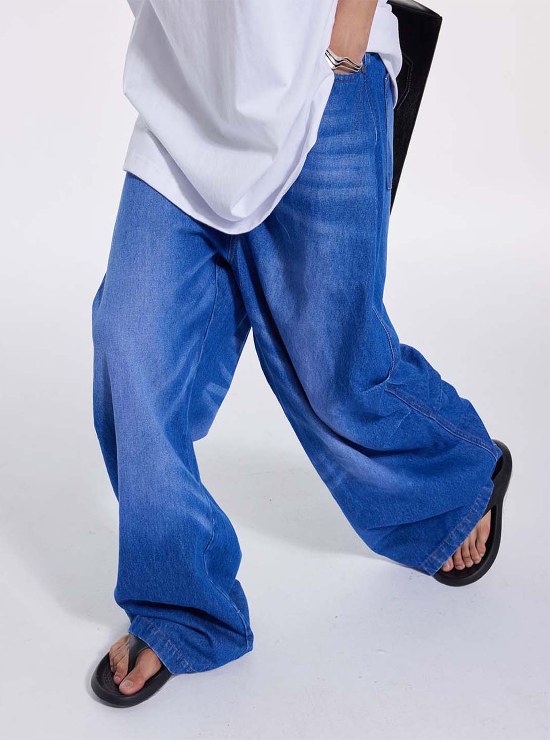 Washed Pleated Draped Denim Pants