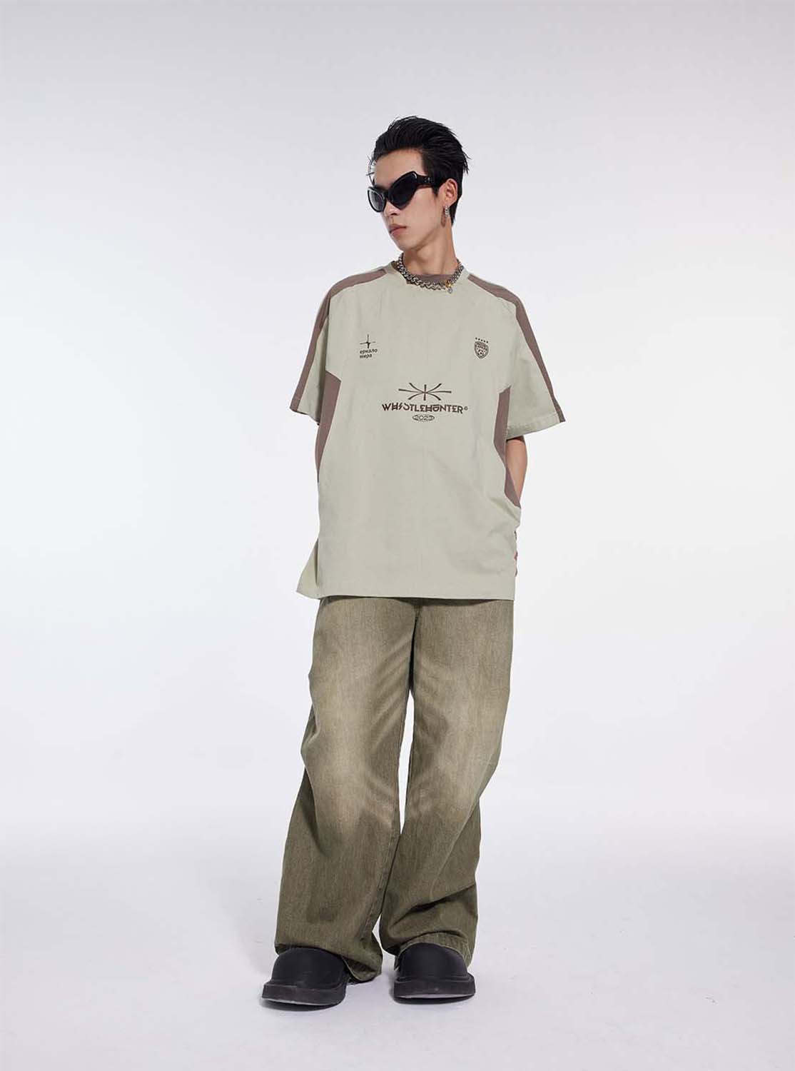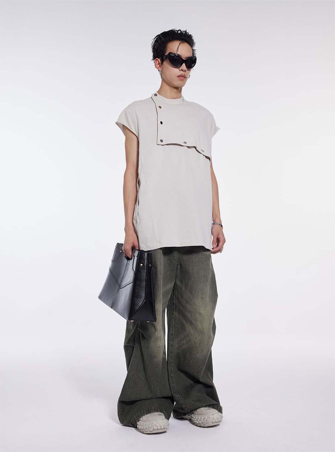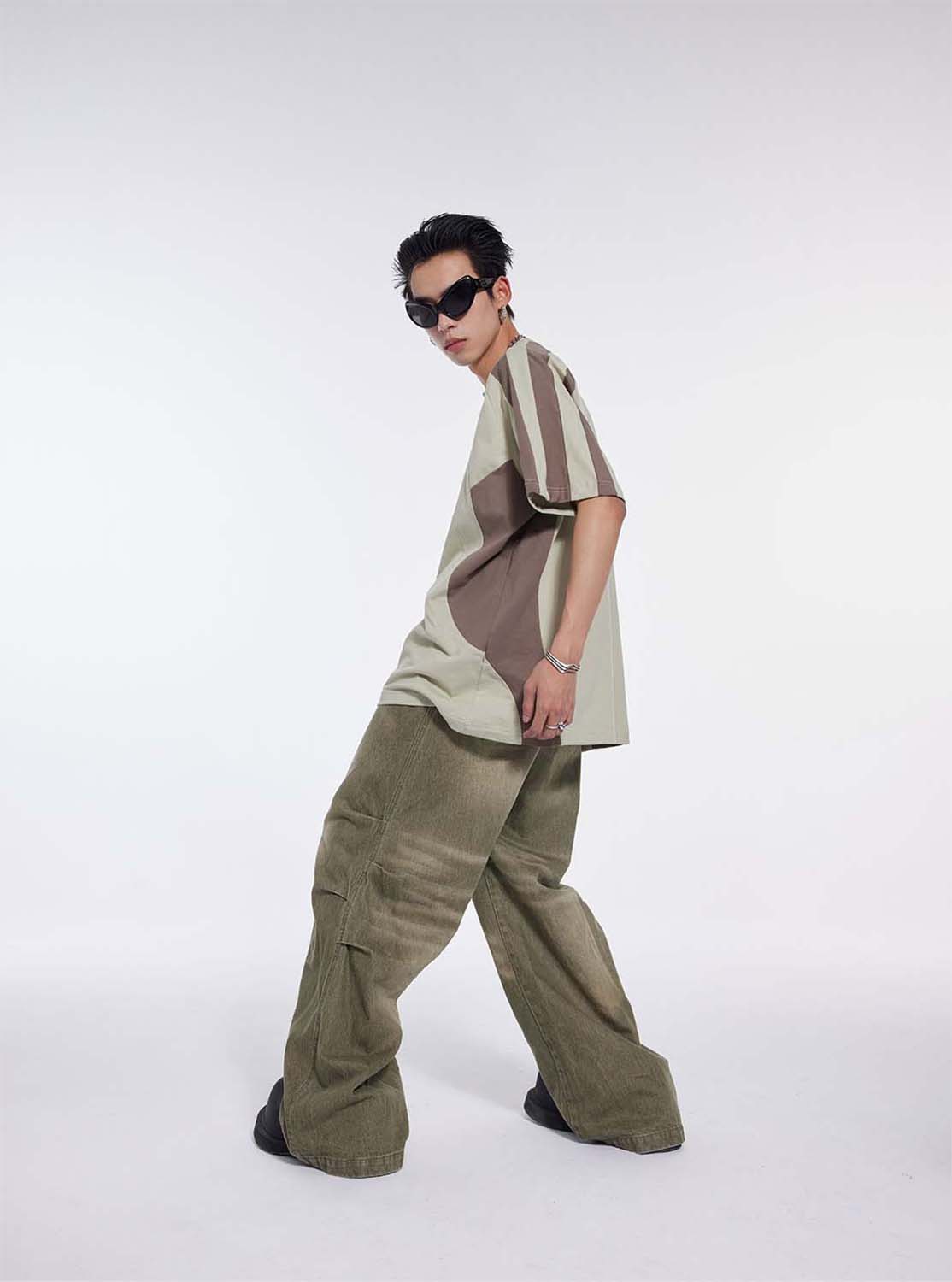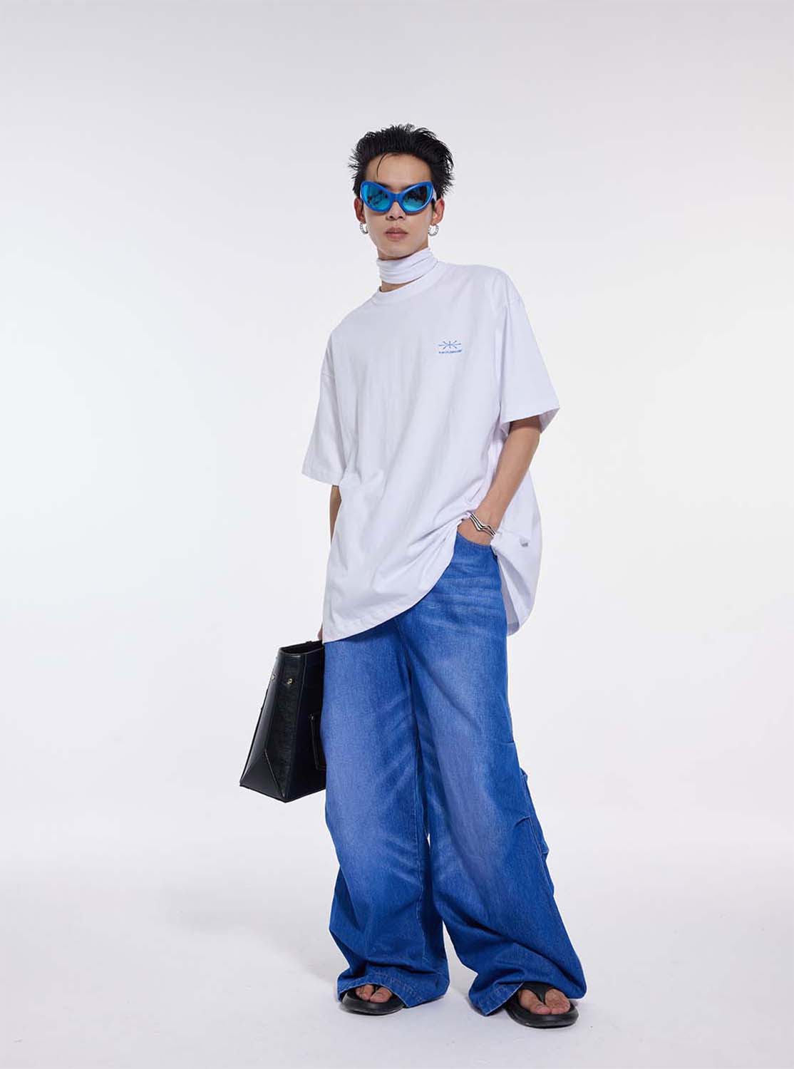 Washed Pleated Draped Denim Pants