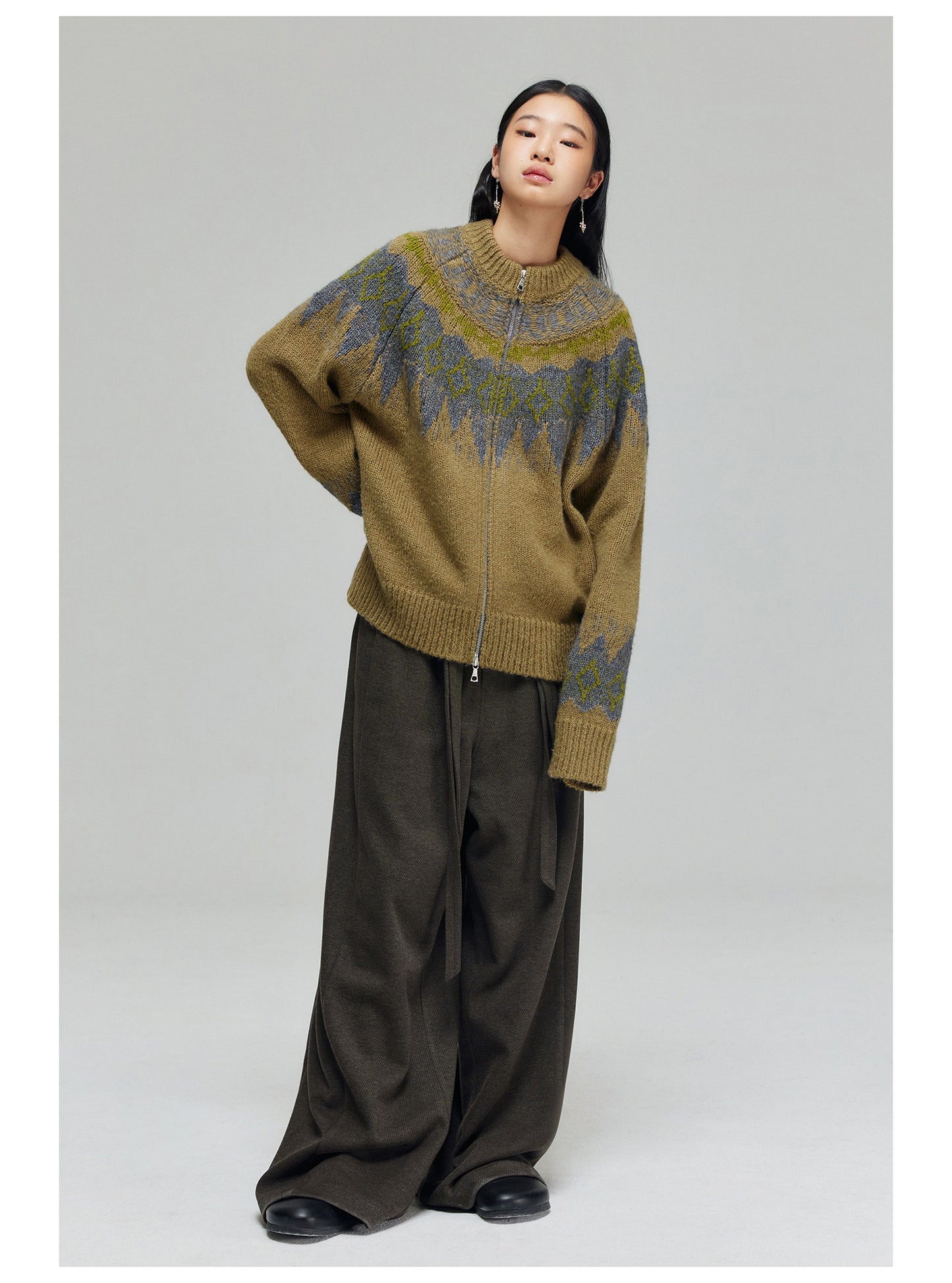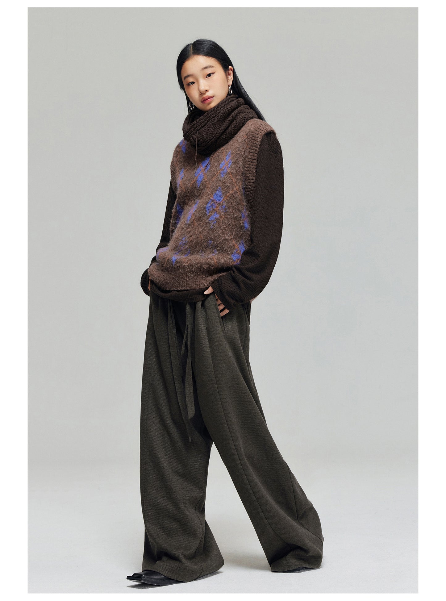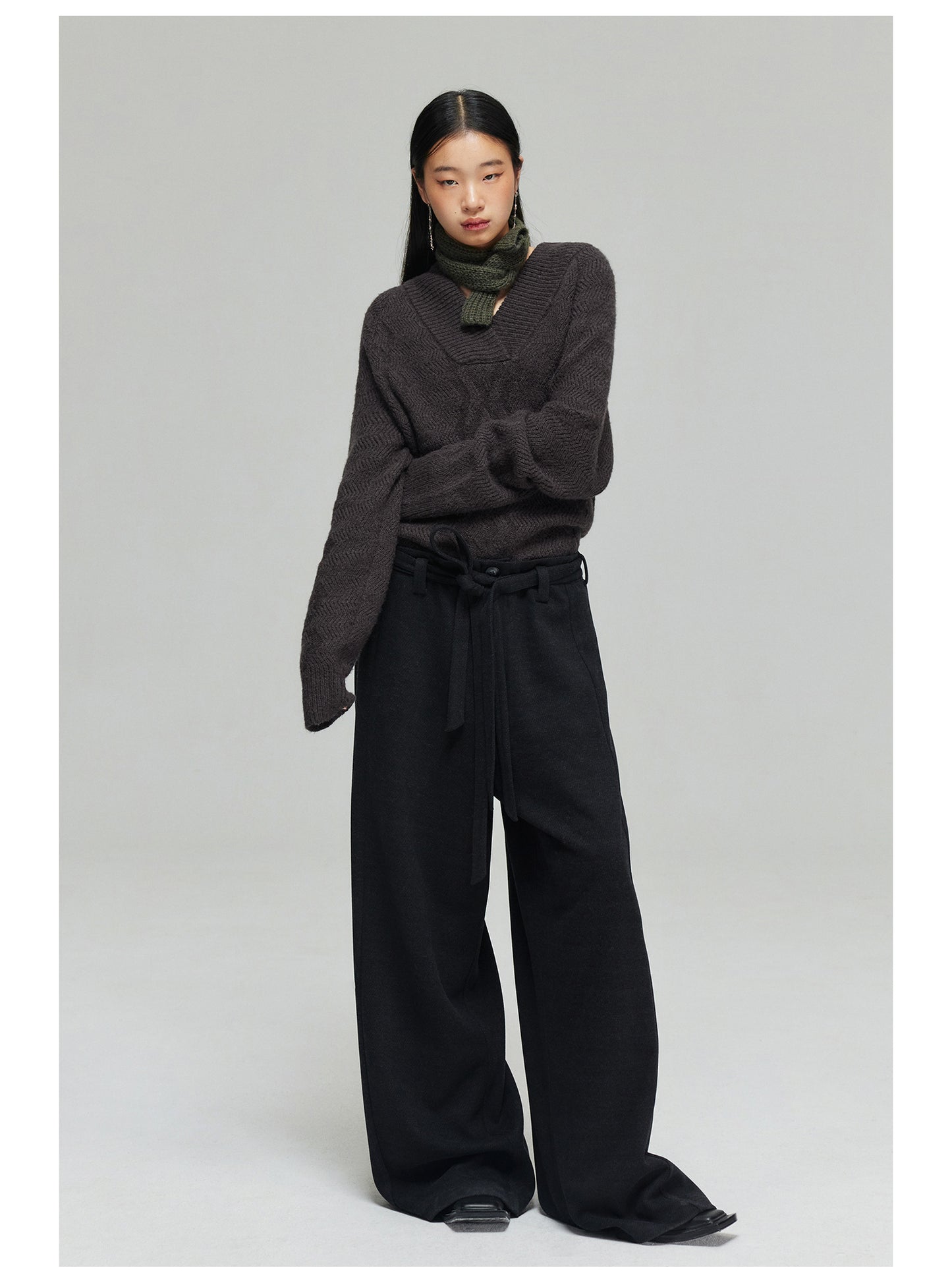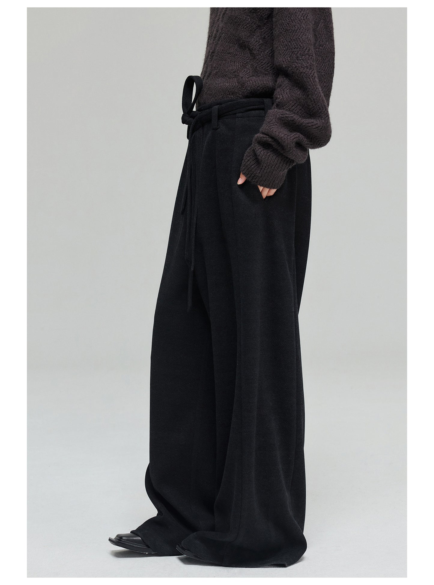 Wool blend thick wide pants