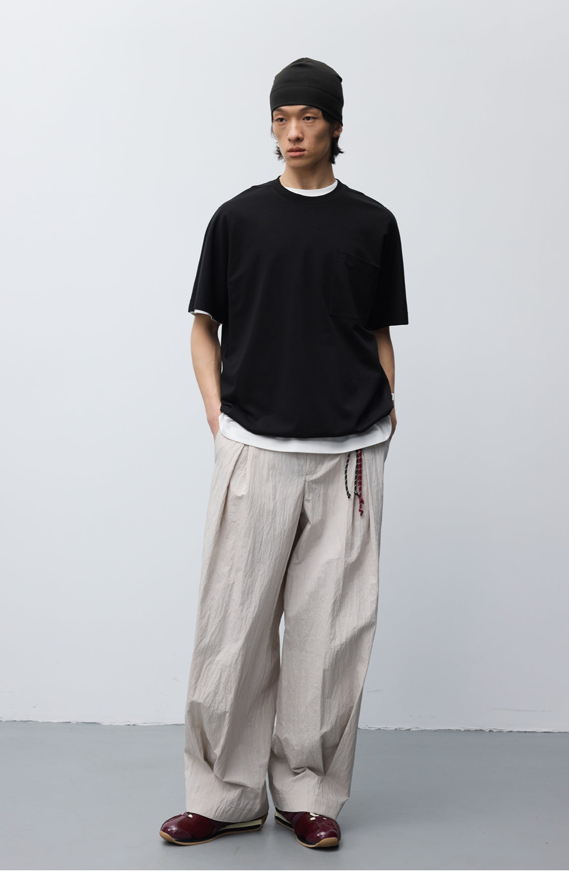 Wrinkle-finished nylon loose casual pants
