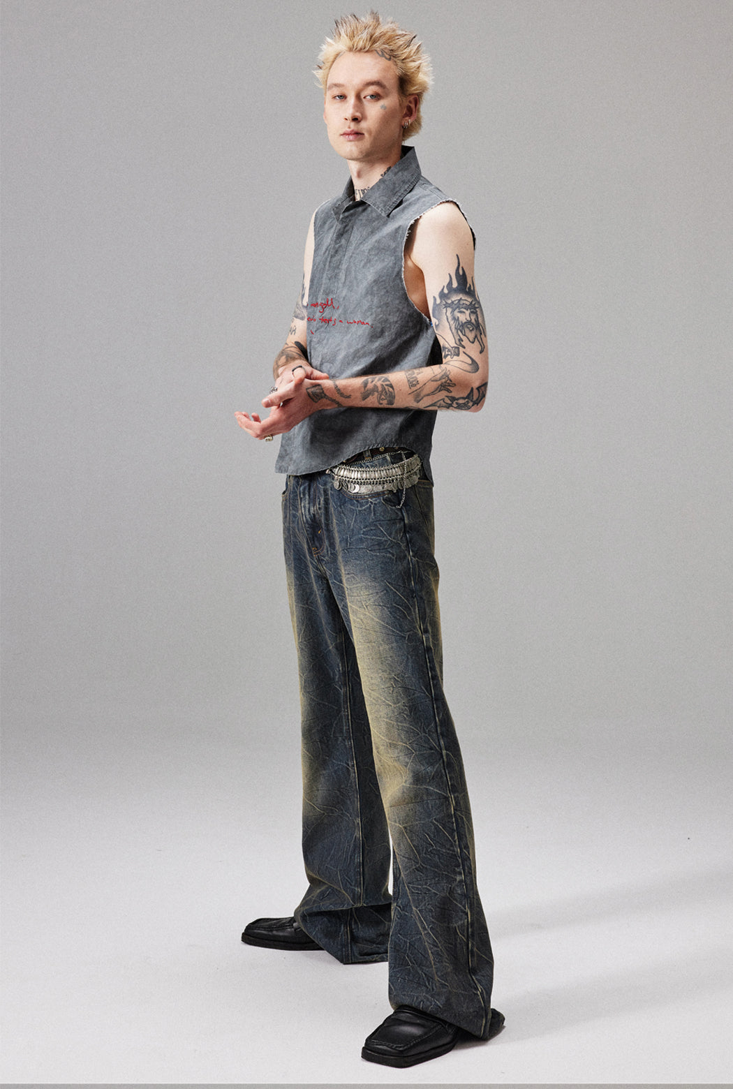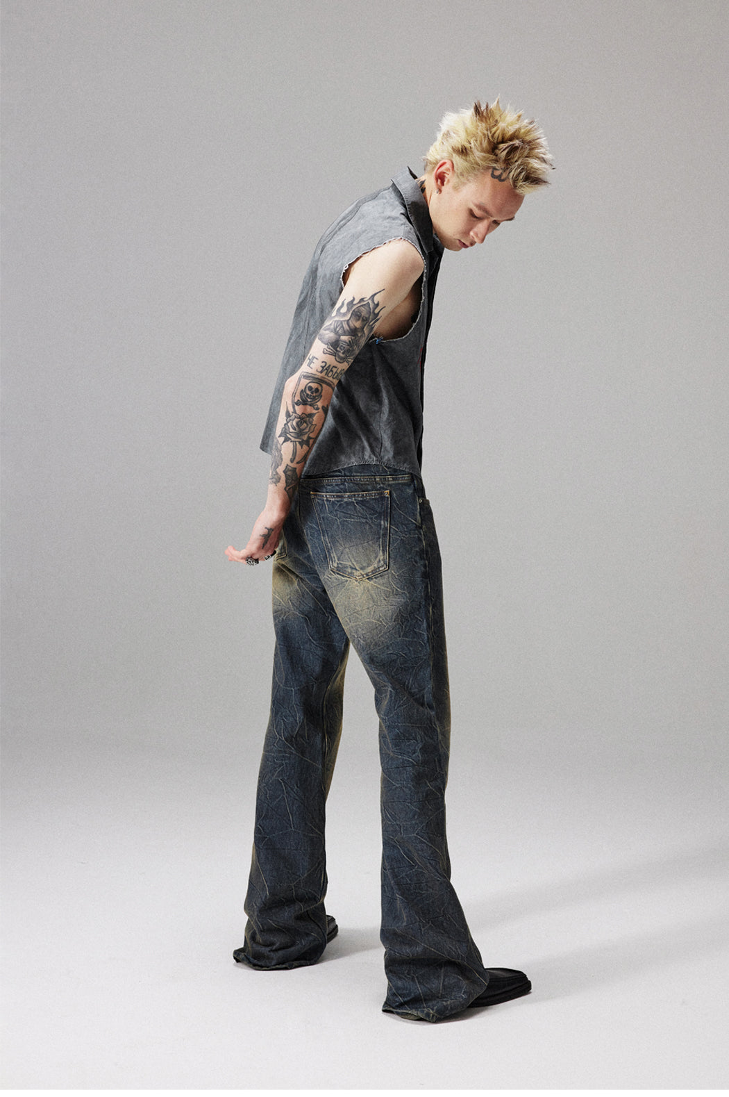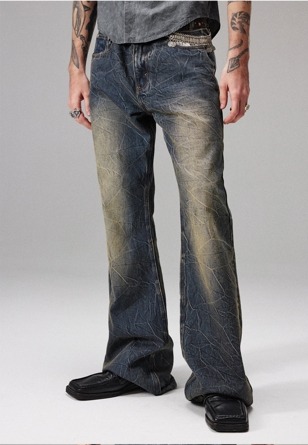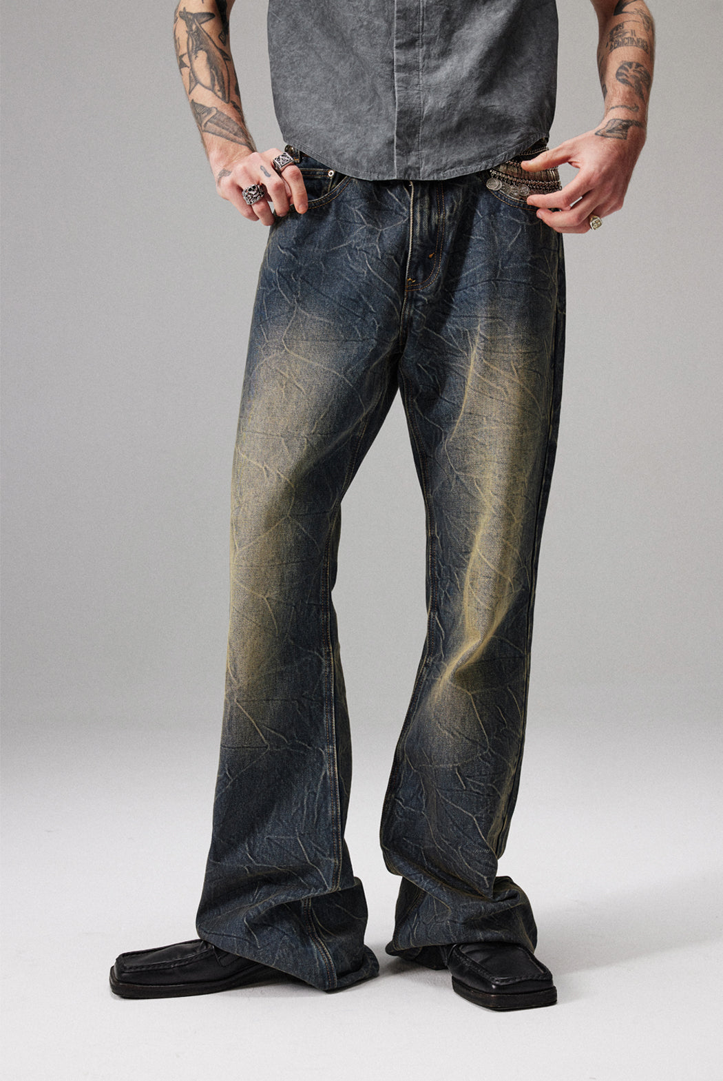 yellow mud dirty wash jeans